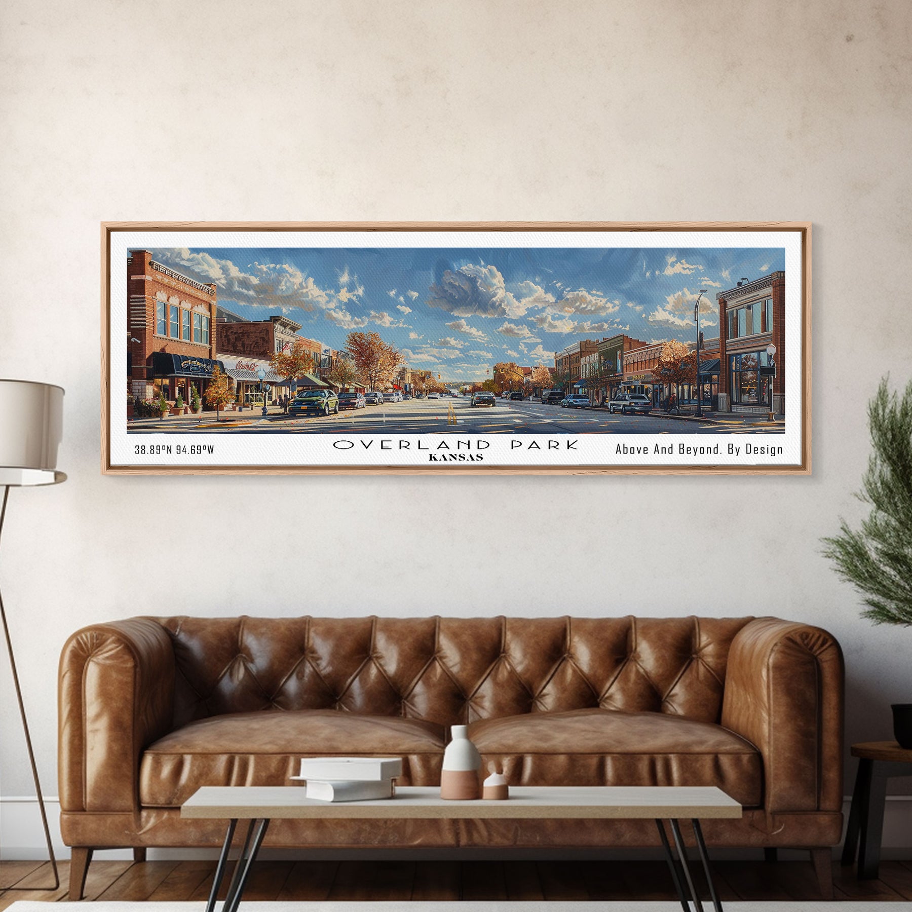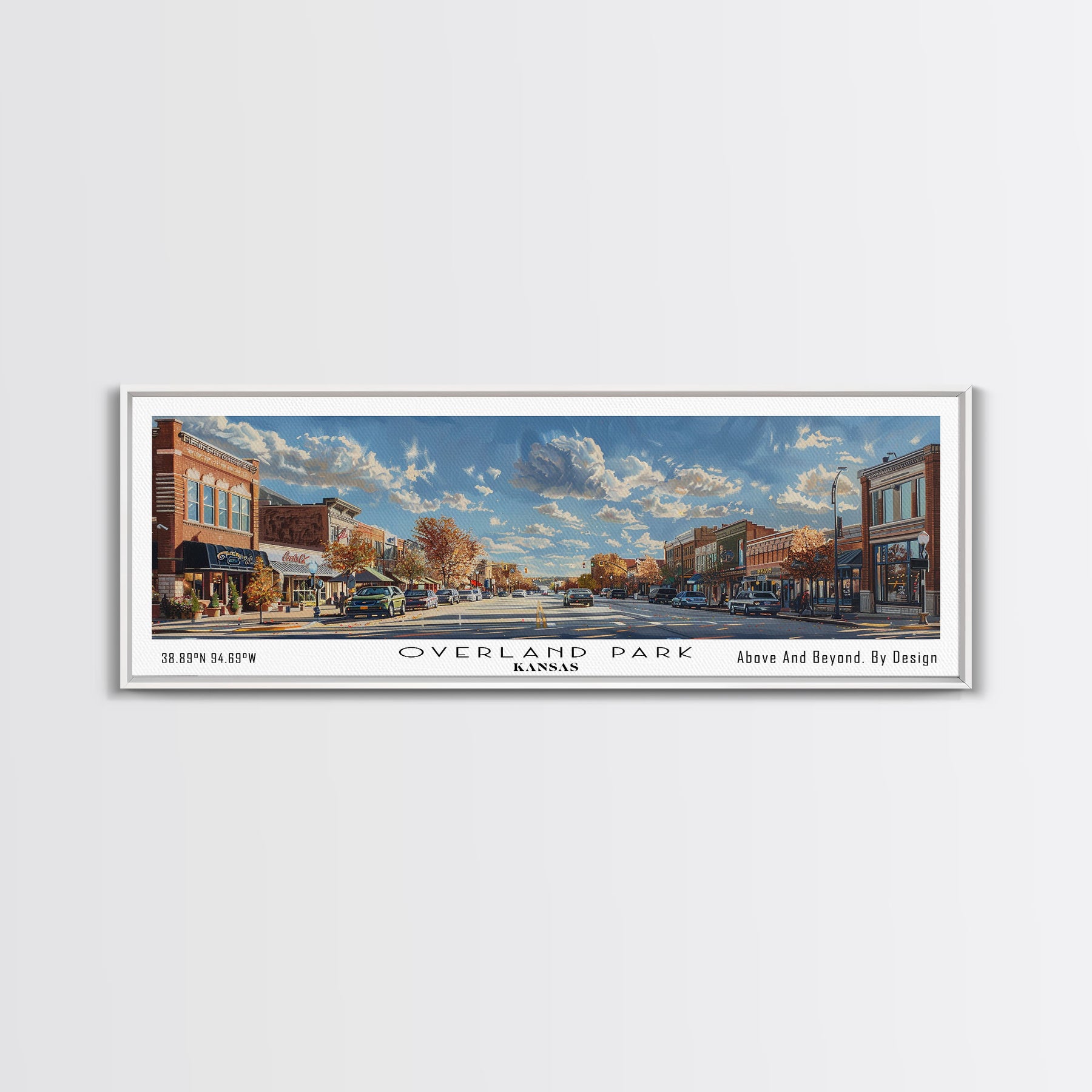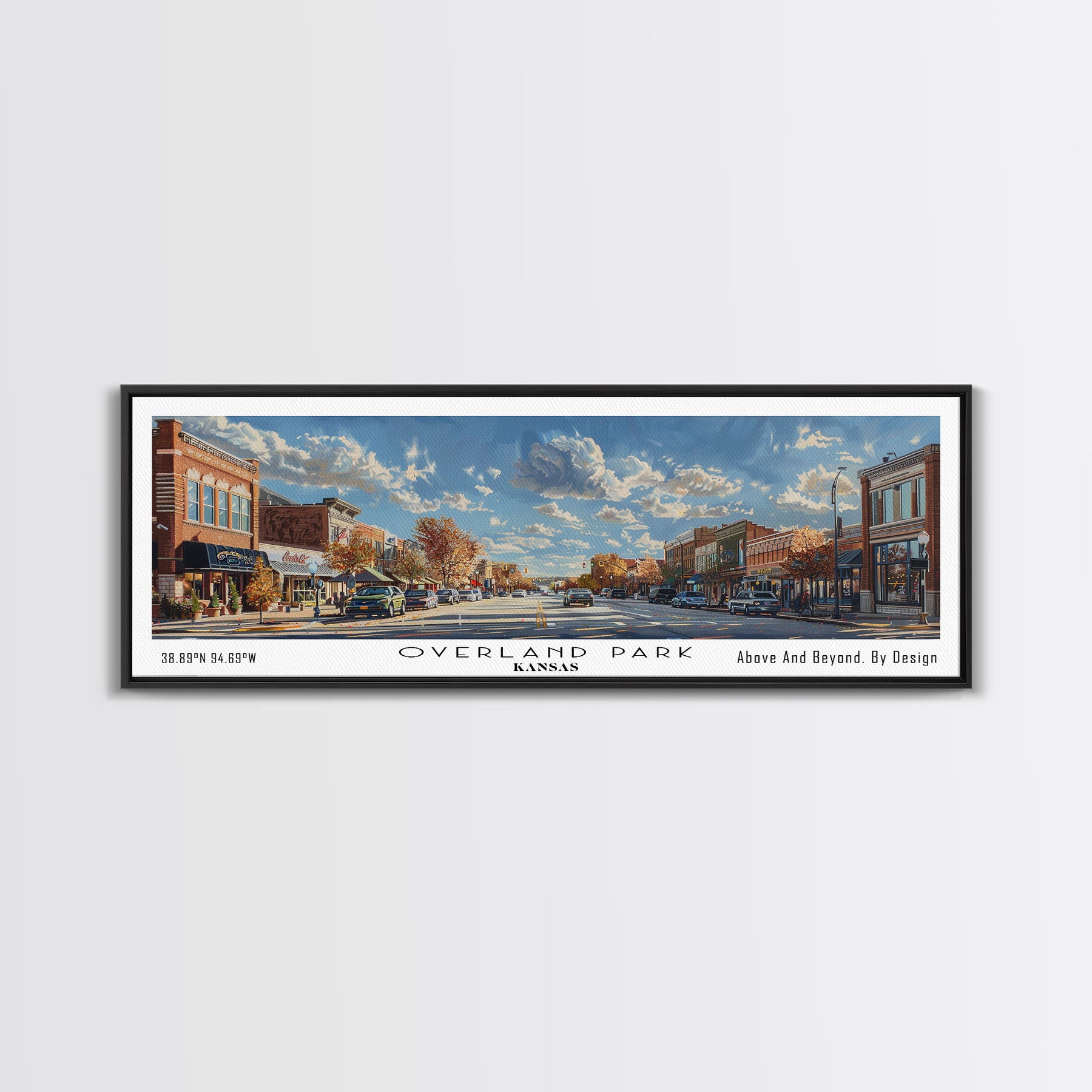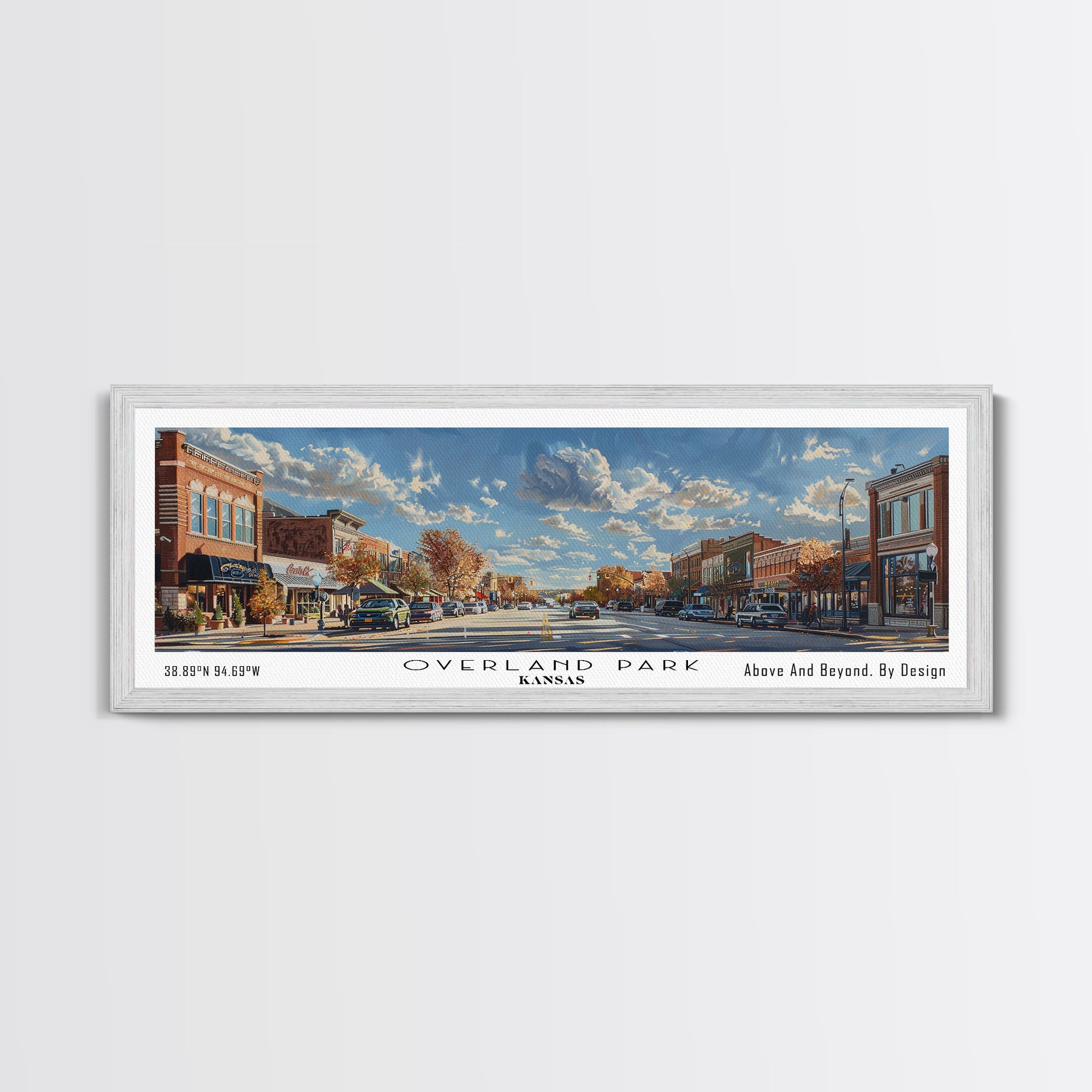 Overland Park Kansas Panoramic Framed Canvas Print, Cityscape Watercolor Painting, Travel Poster, Modern Home Decor, Urban Gift Idea