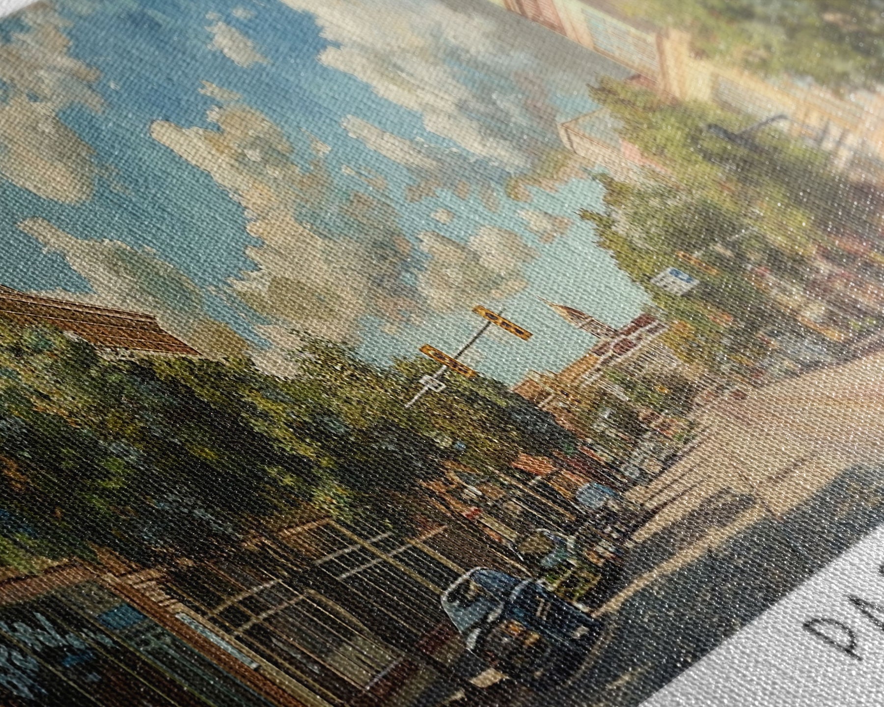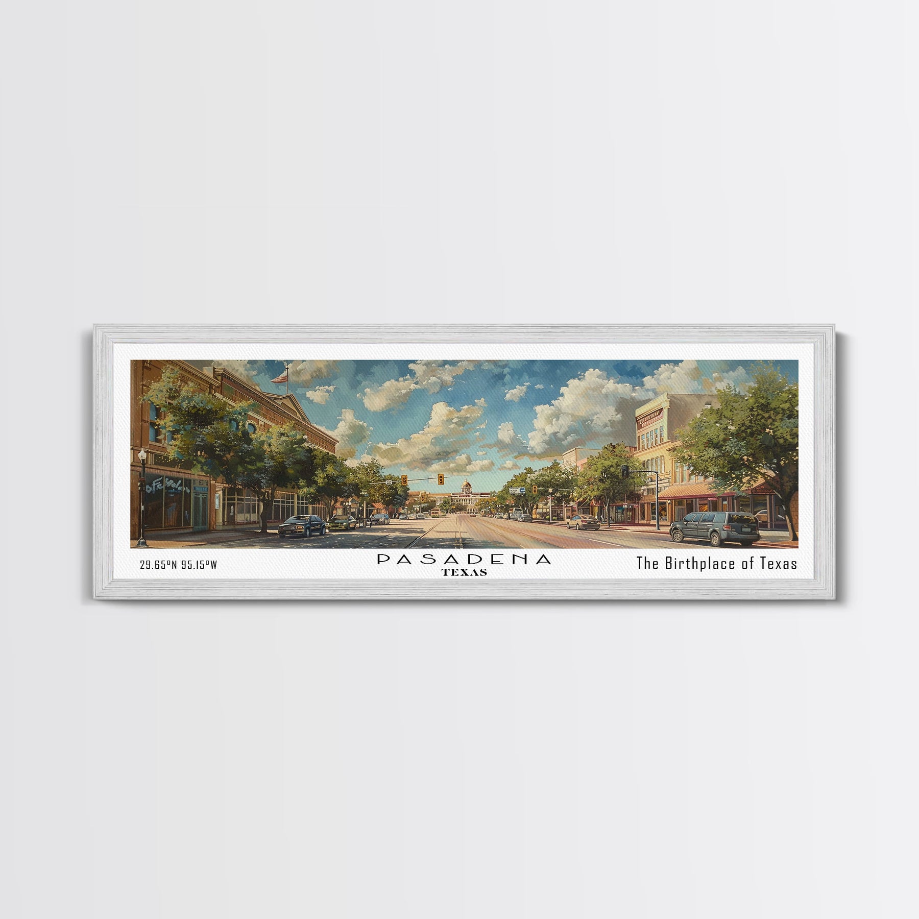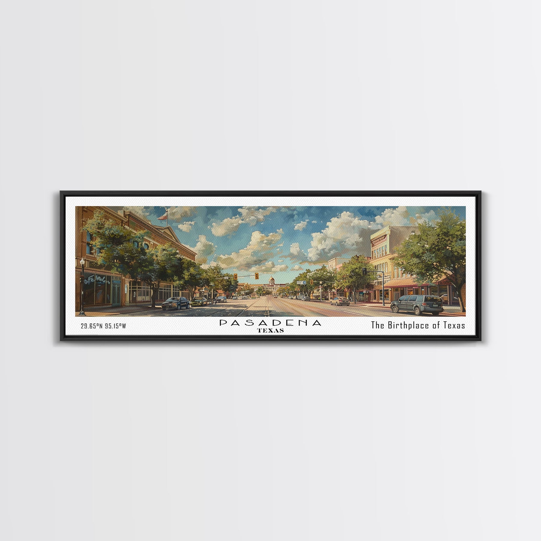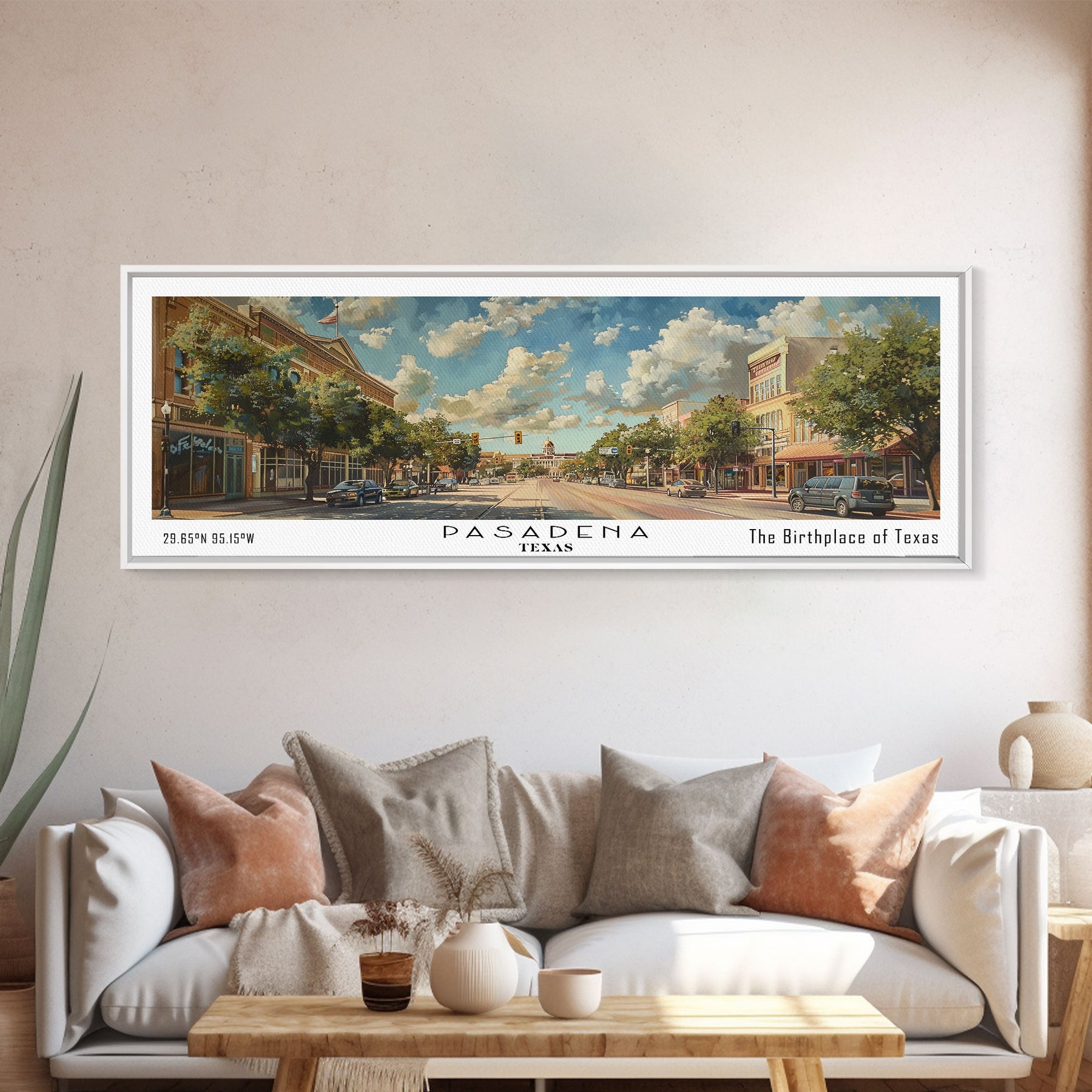 Pasadena Texas Panoramic Painting, Framed Canvas Print, Beautiful Cityscape Watercolor Art, Travel Poster for Home Decor, Unique Gift Idea