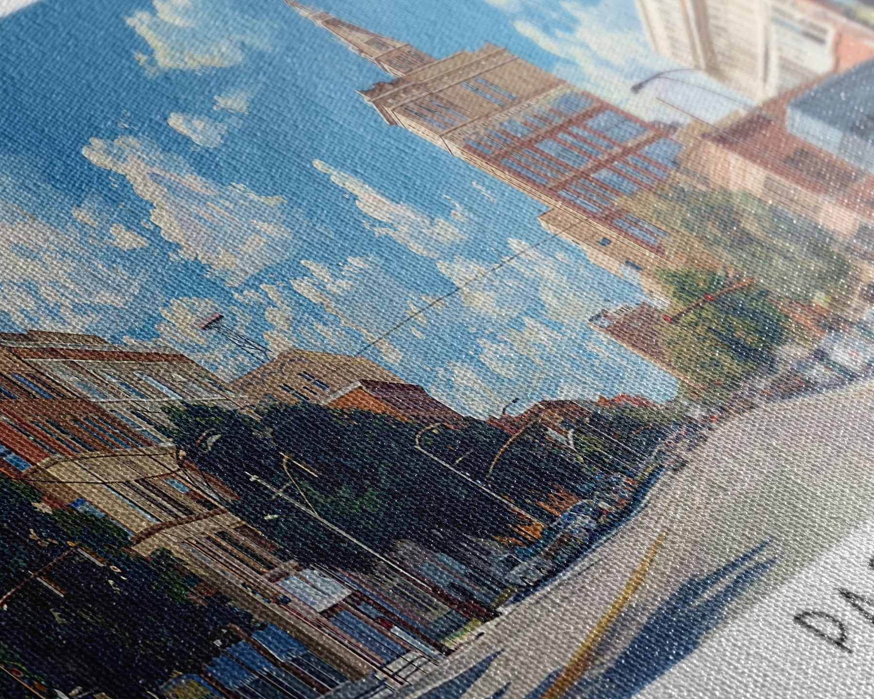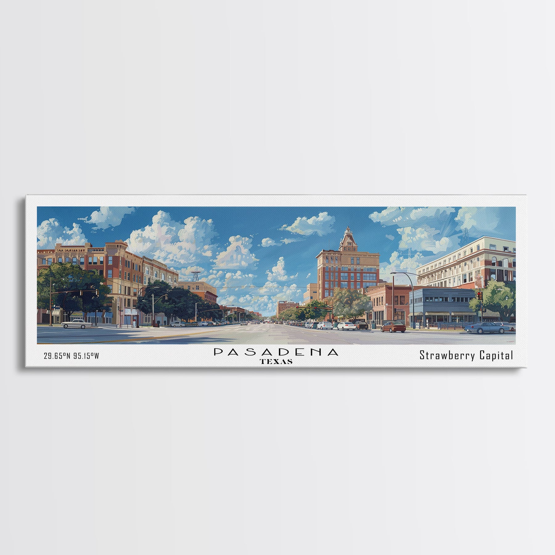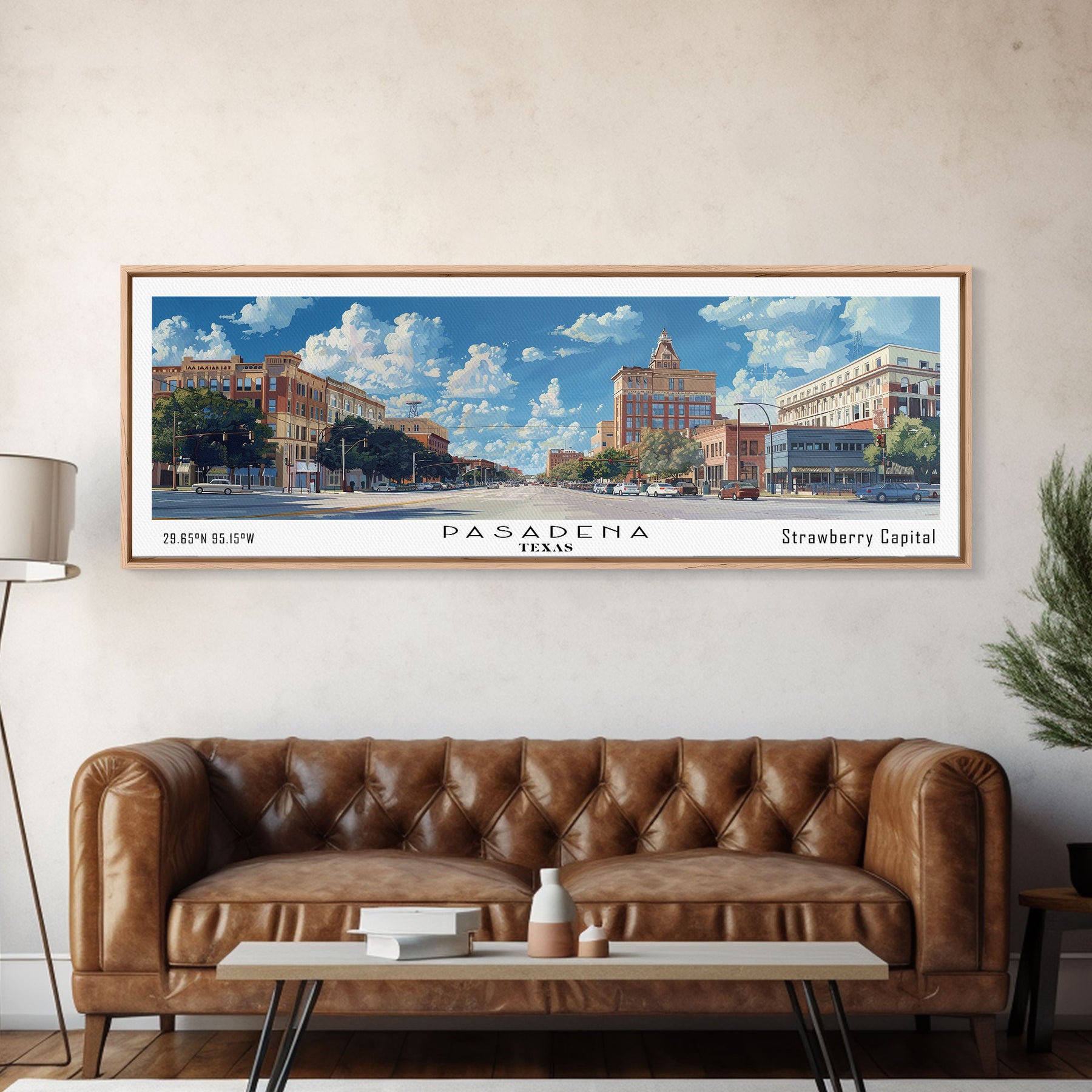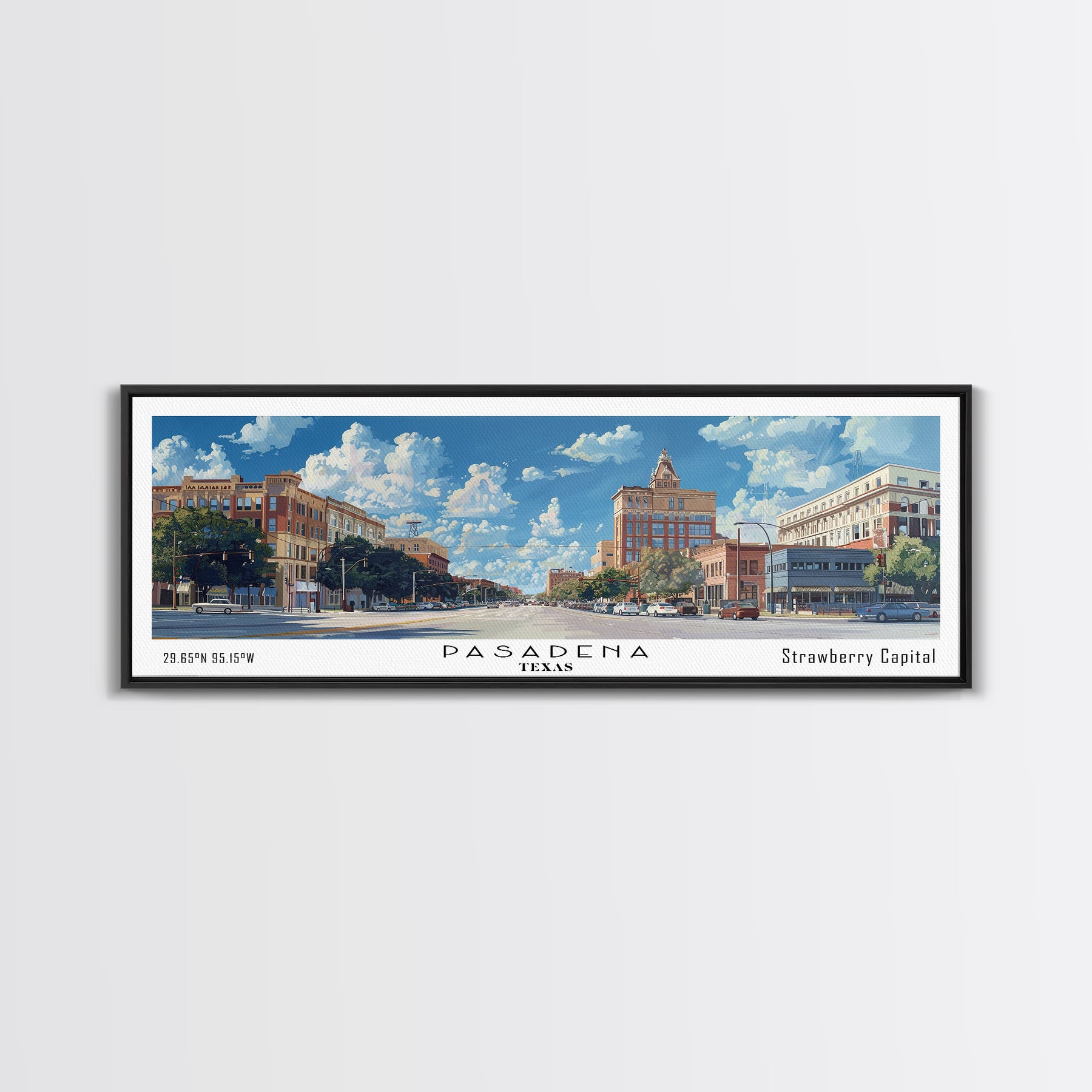 Pasadena Texas Panoramic Framed Canvas Print, Cityscape Watercolor Painting, Travel Poster, Modern Home Decor, Urban Gift Idea