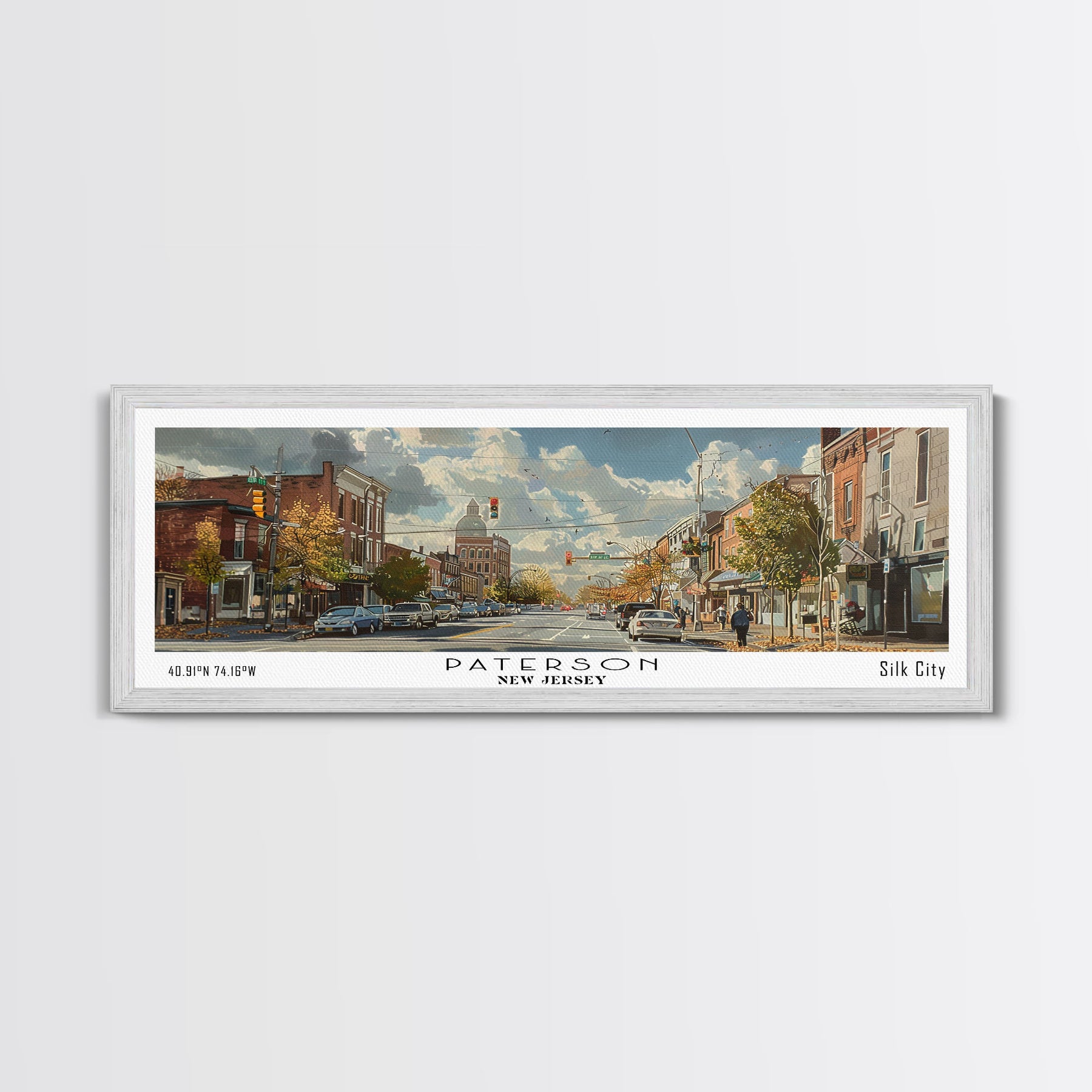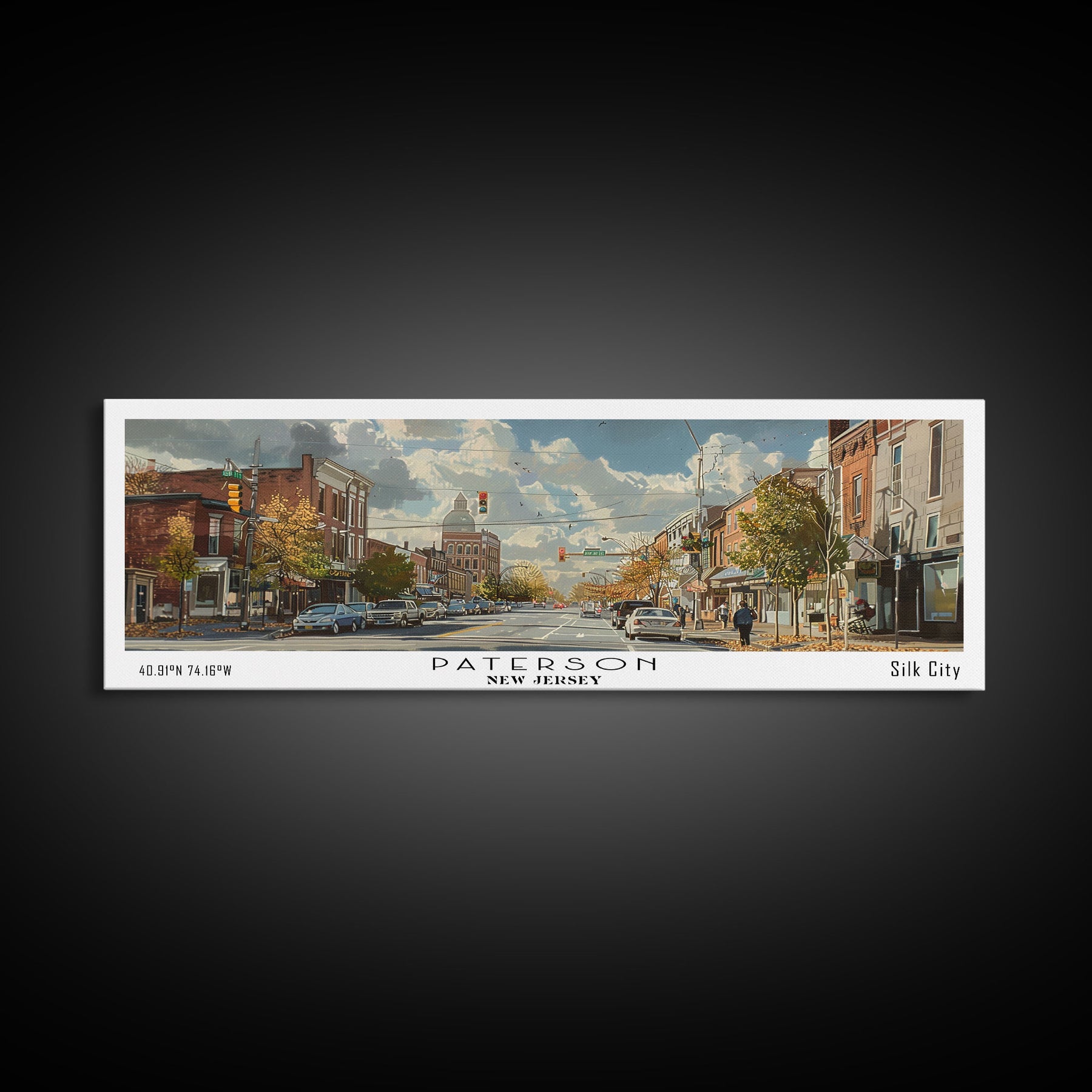 Paterson New Jersey Panoramic Painting, Framed Canvas Print, Stunning Watercolor Cityscape Art, Travel Poster for Home Decor, Unique Gift