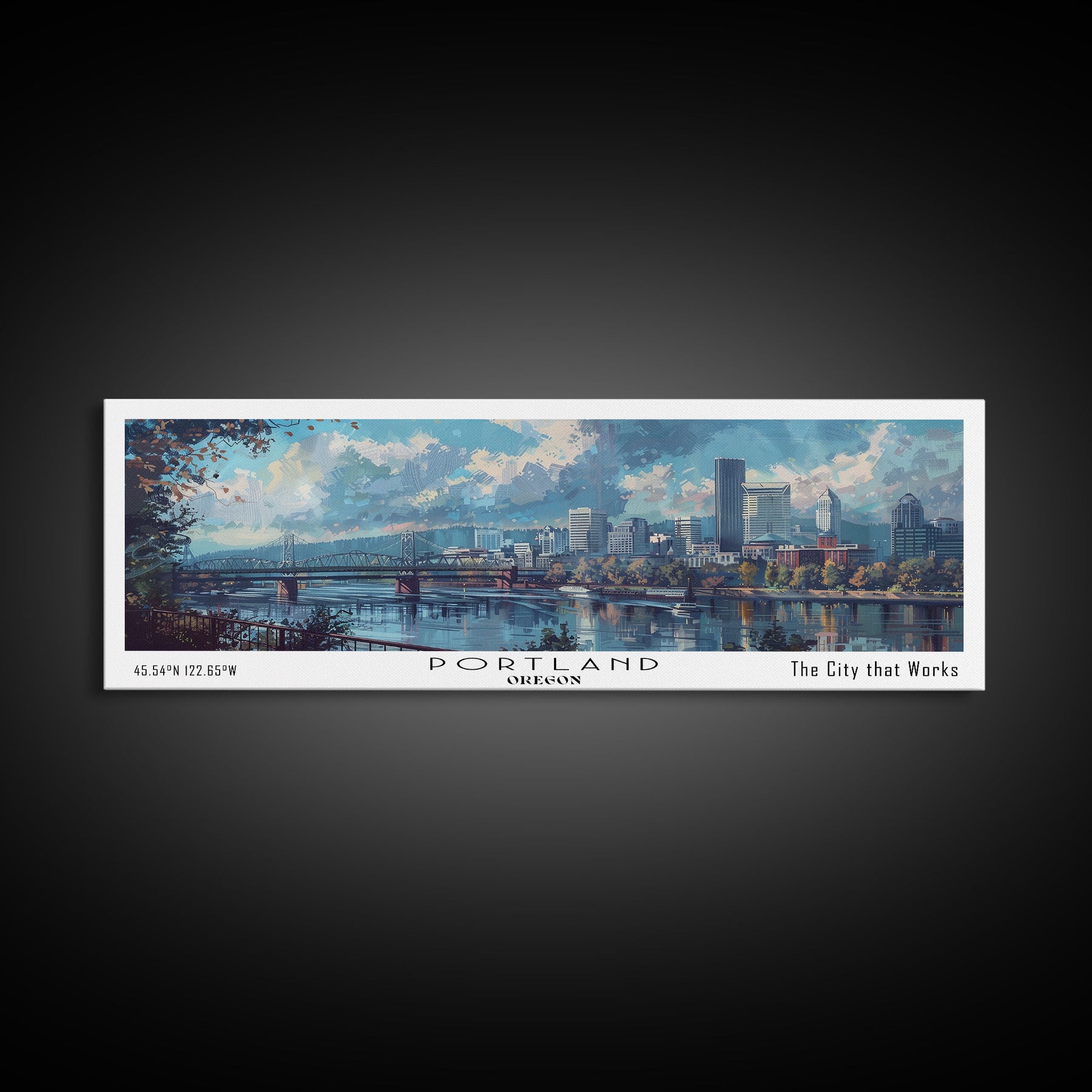 Portland Oregon Panoramic Print, Unique Framed Canvas Print, Travel Poster Art, Wall Hanging, Living Room Decor, Artistic Gift