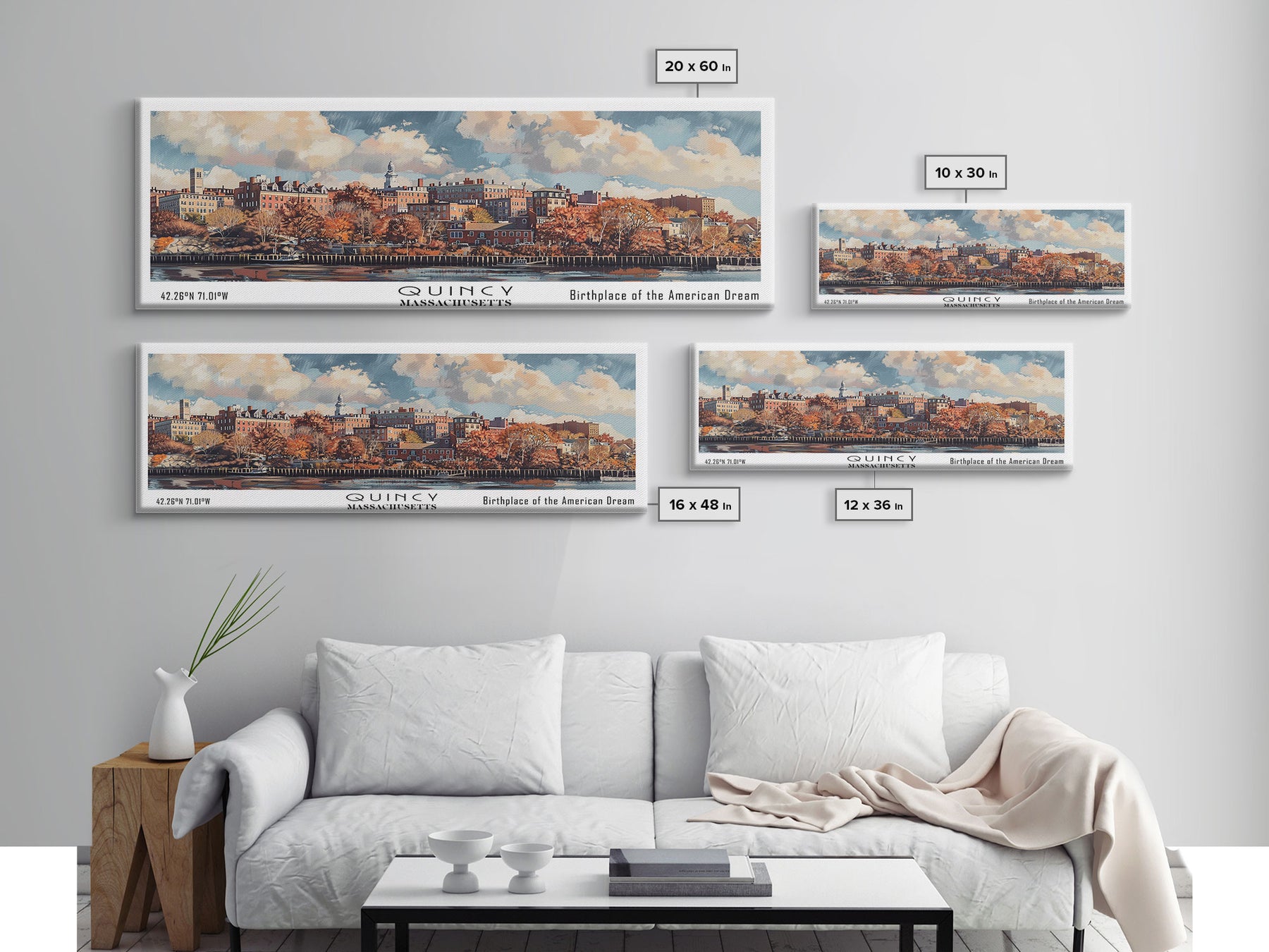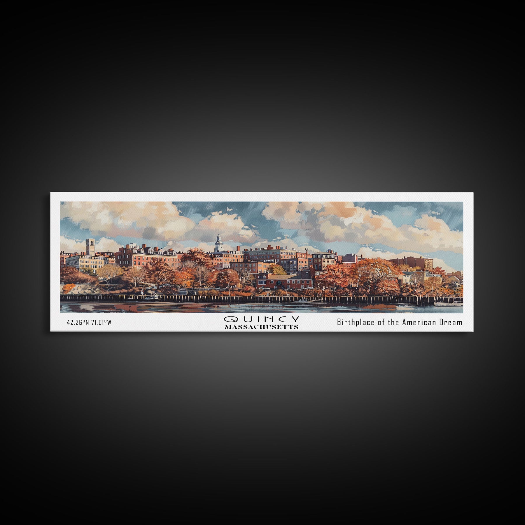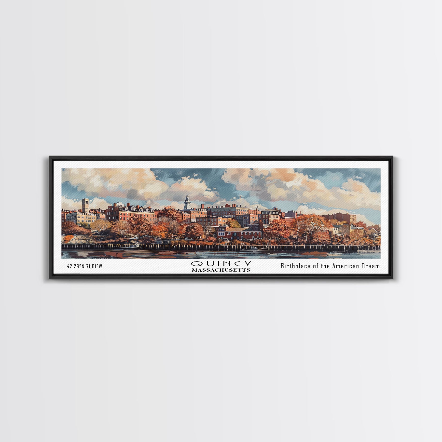 Quincy Massachusetts Panoramic Print, Creative Framed Canvas Print, City Travel Poster, Wall Art, Home Decor, Unique Gift