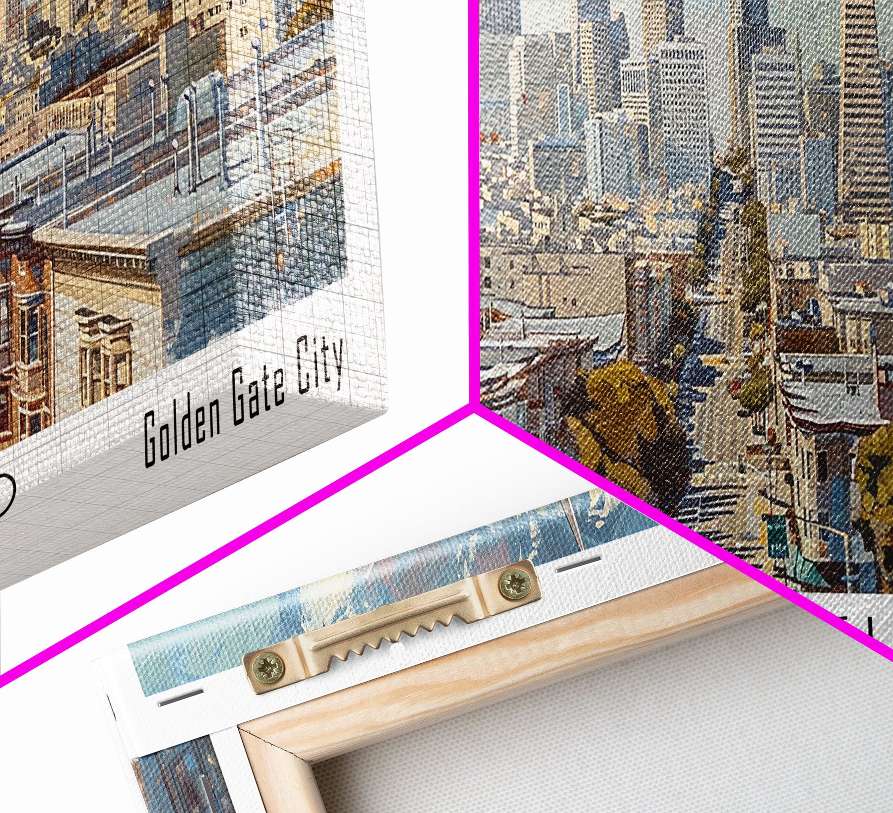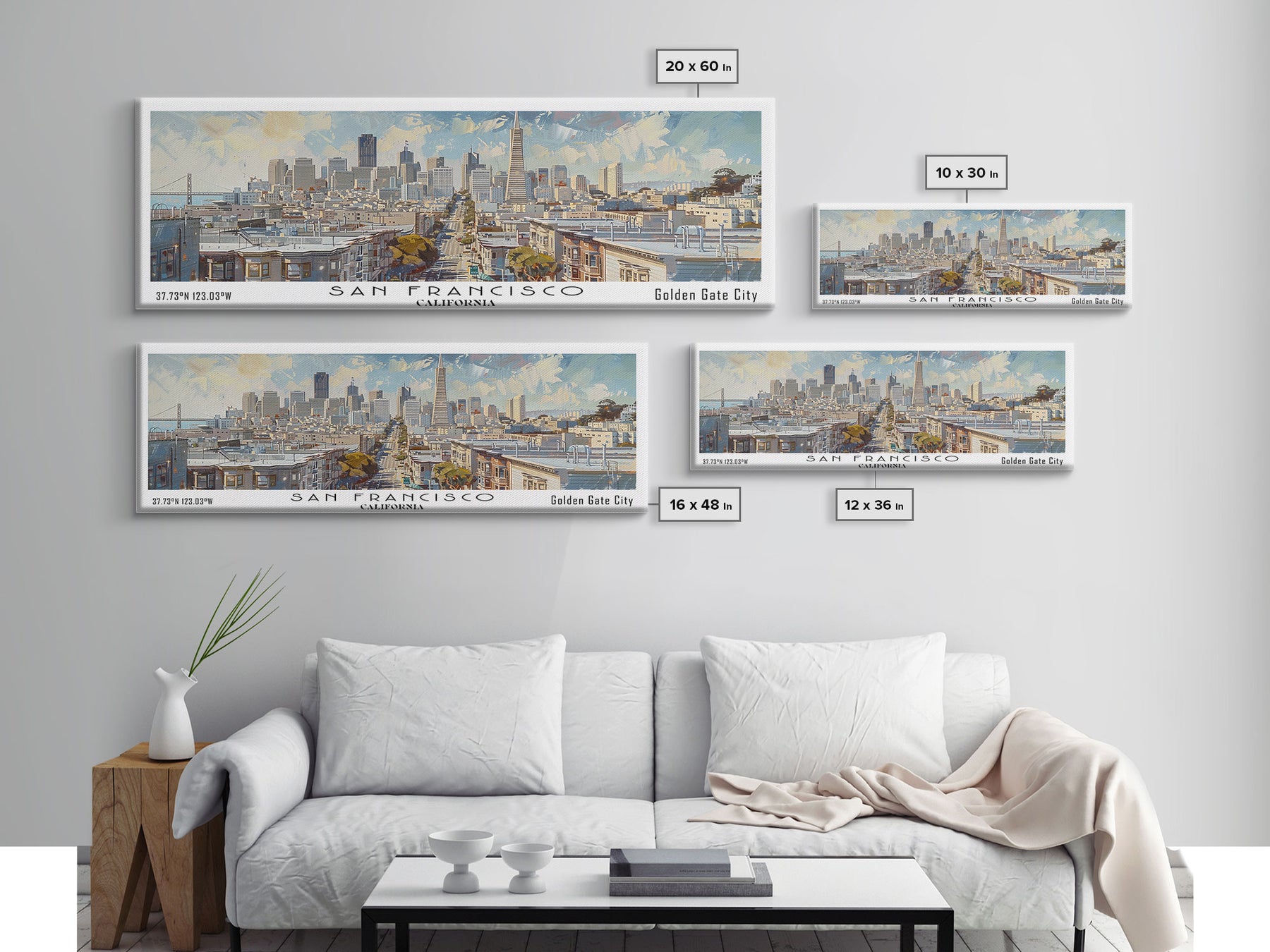 San Francisco California Panoramic Print, Beautiful Framed Canvas Print, Travel Poster Art, Home Decor, Living Room Wall Art