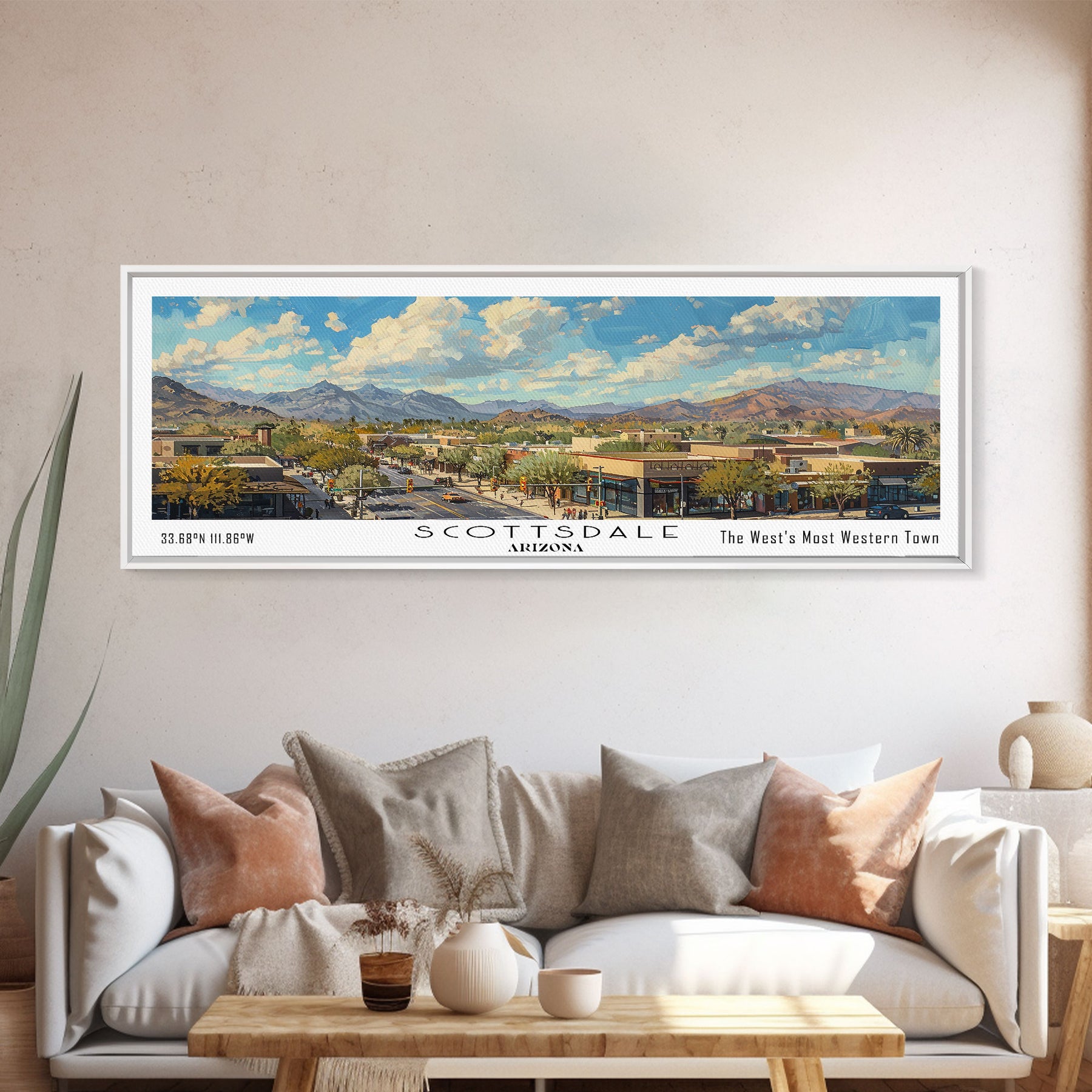 Scottsdale Arizona Travel Poster, Framed Canvas Print, Wall Art, Home Decor, Travel Gift, Living Room Art, Retro Style Art, Office Decor