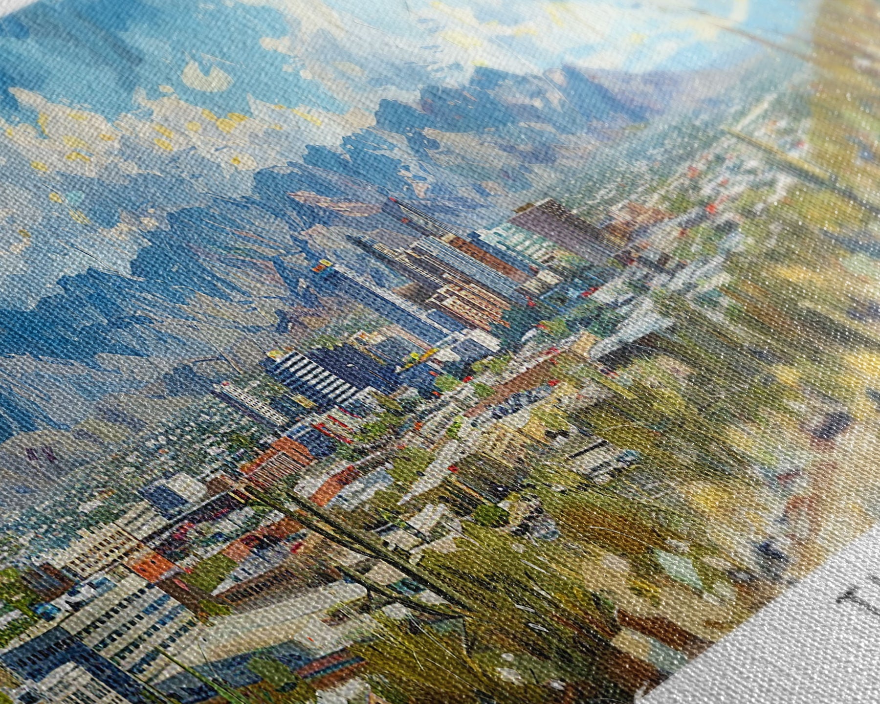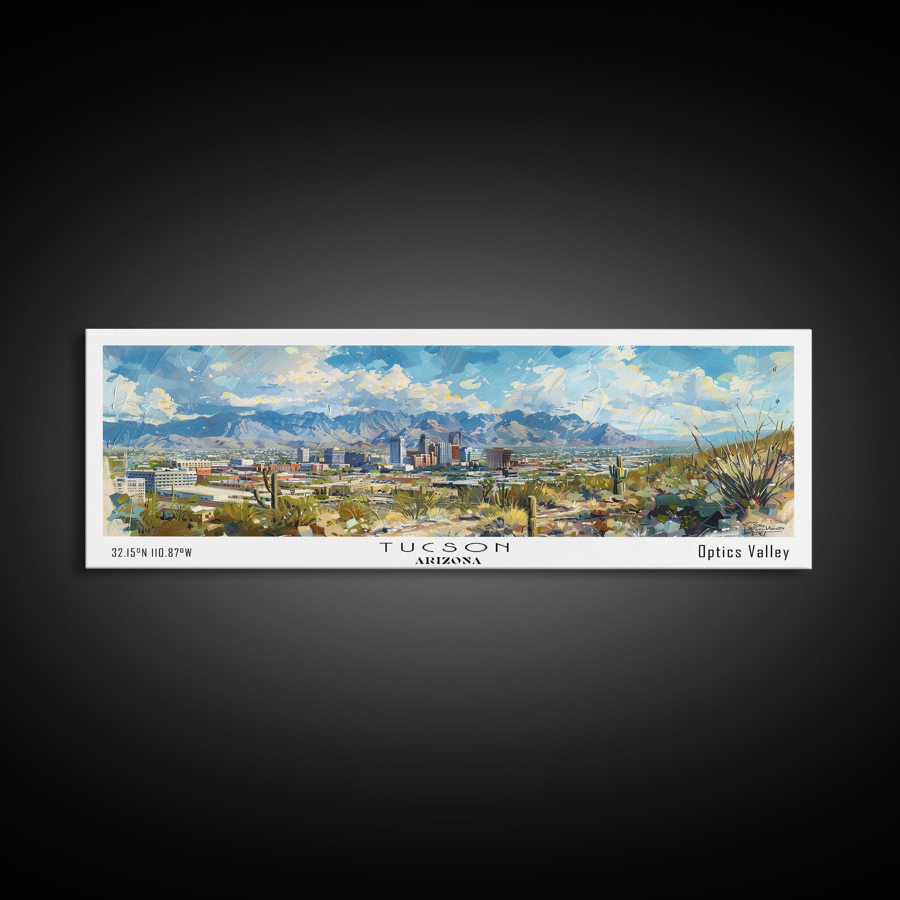 Tucson Arizona Panoramic Painting, Framed Canvas Print, Retro Travel Poster, Artistic Wall Art, Unique Living Room Decor, Office Gift Idea