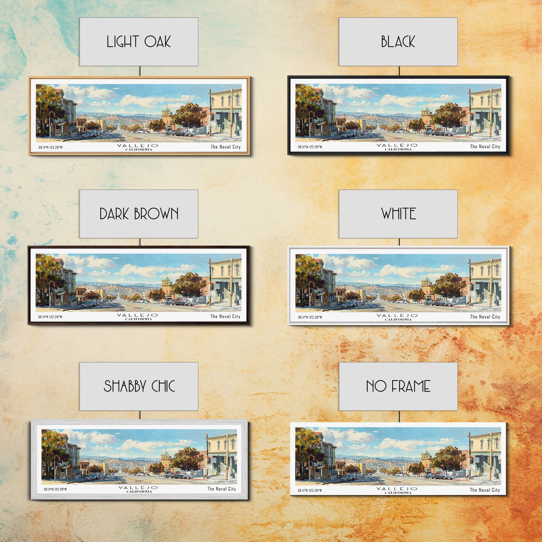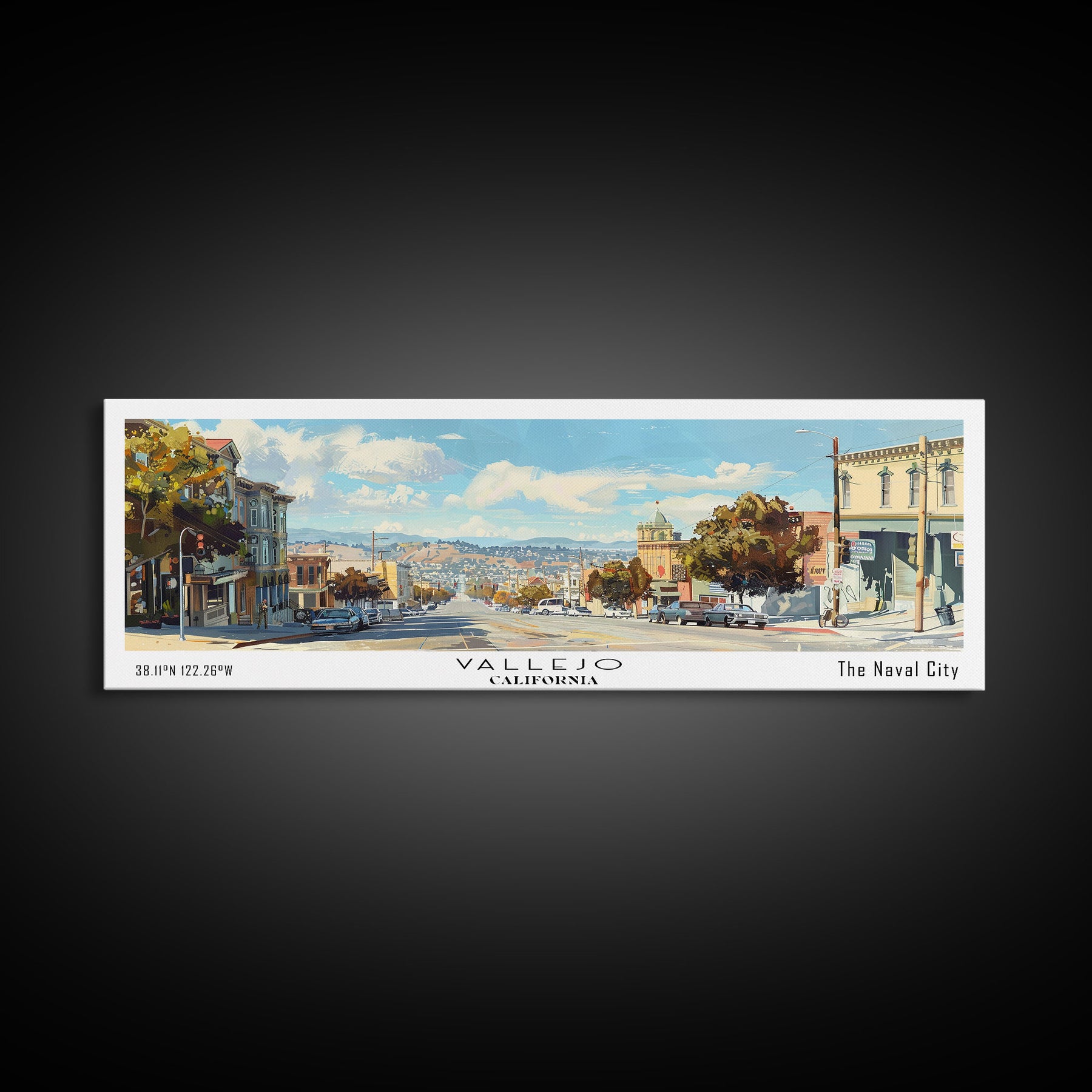 Vallejo California Panoramic Framed Canvas Print, Retro Travel Poster, Unique Wall Art, Artistic Living Room Decor, Office Gift, Home Decoration