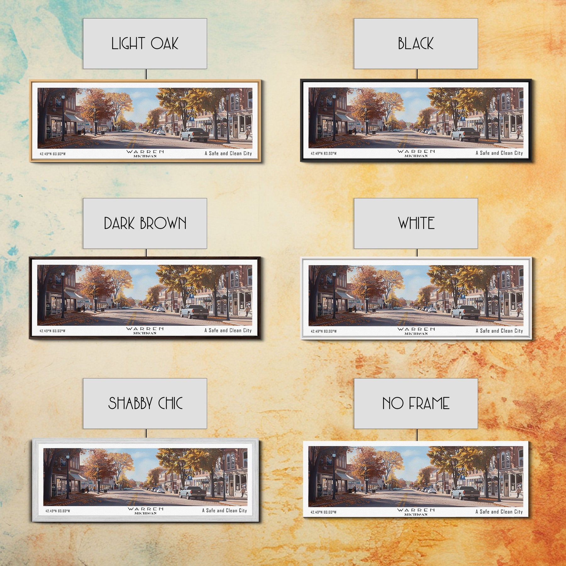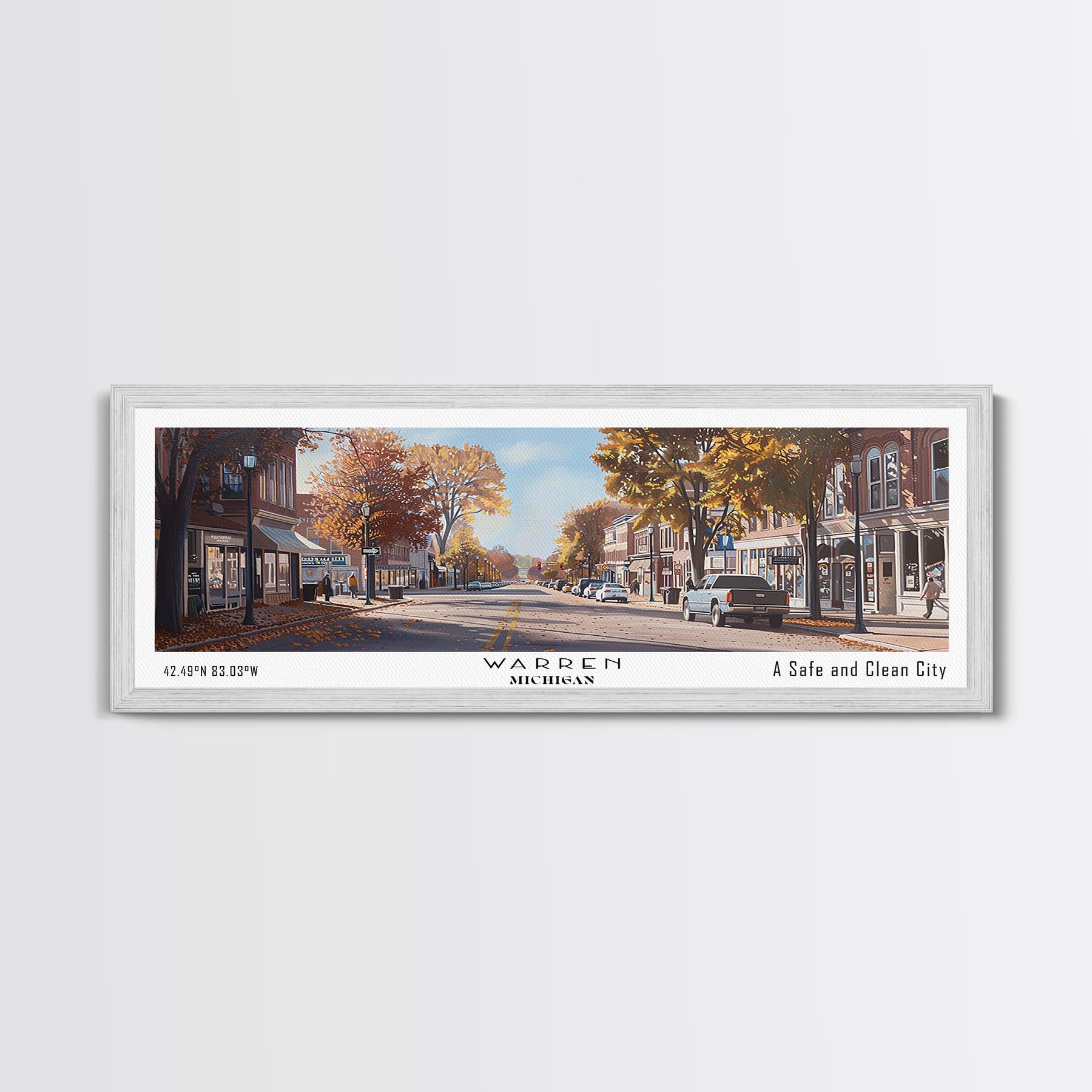 Warren Michigan Panoramic Painting, Framed Canvas Print, Retro Travel Poster, Artistic Wall Art, Unique Living Room Decor, Office Gift