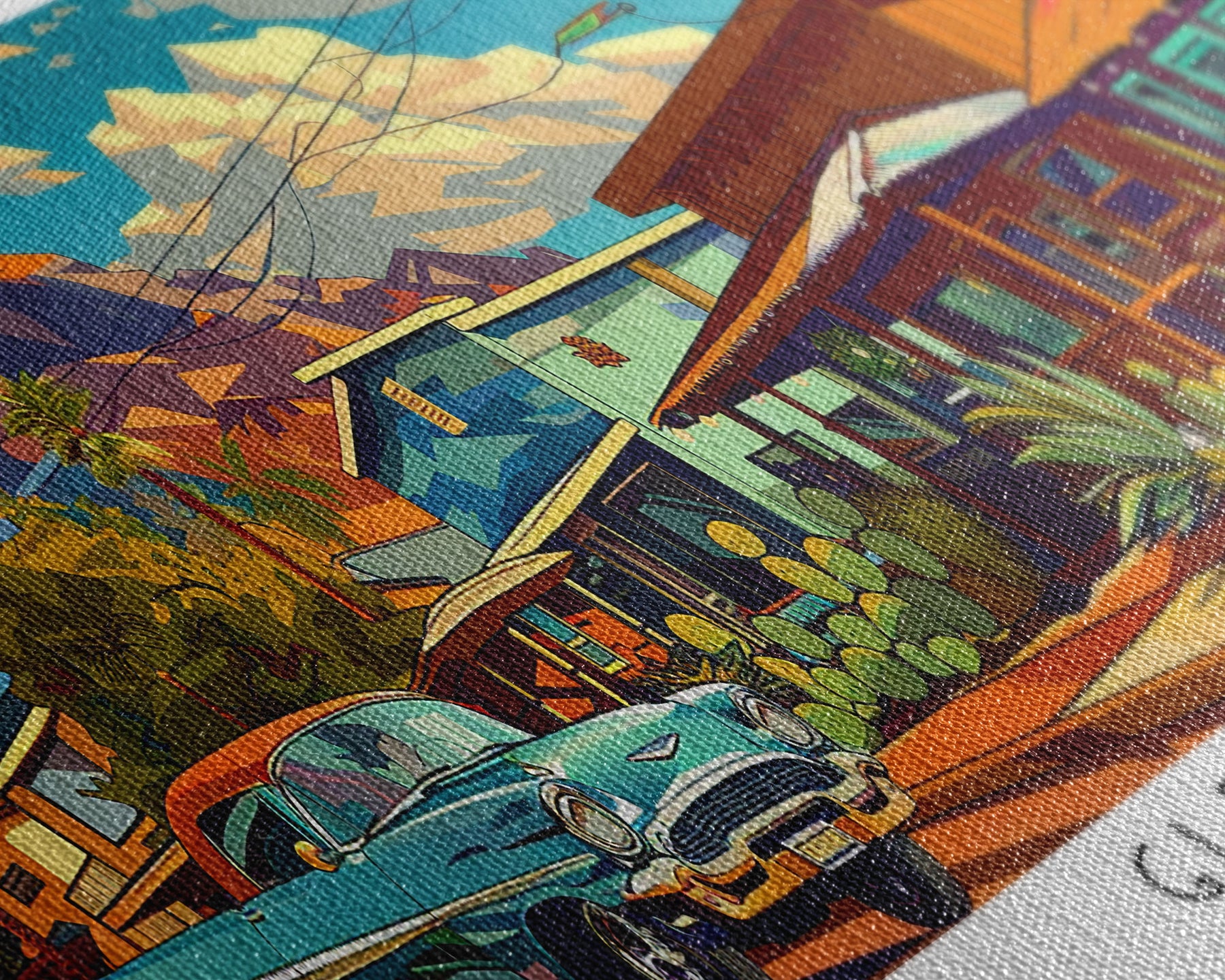 Glendale Arizona Panoramic Painting Framed Canvas Print, Mid Century Modern Art, Pop Art Style, Travel Poster, Wall Art Decor