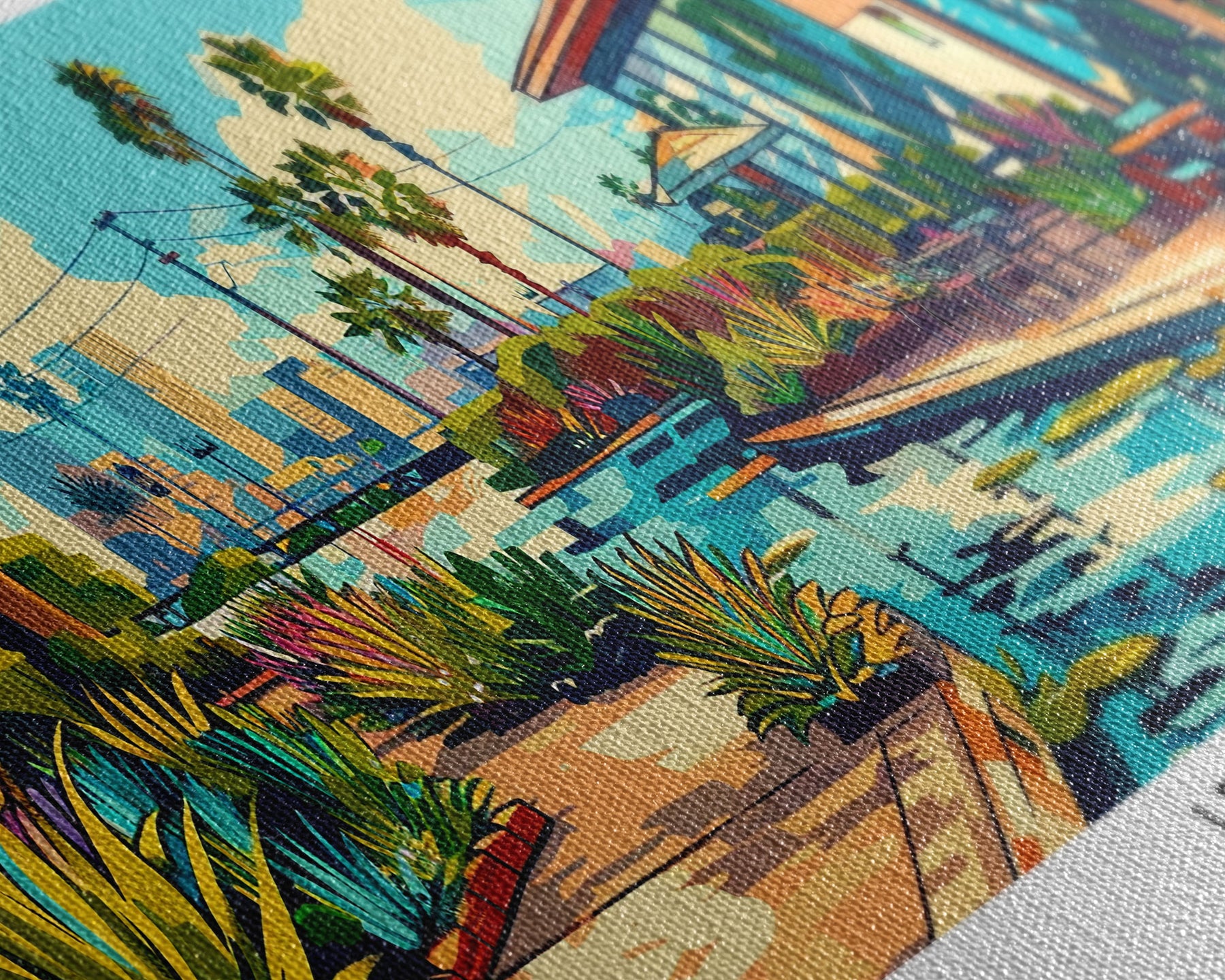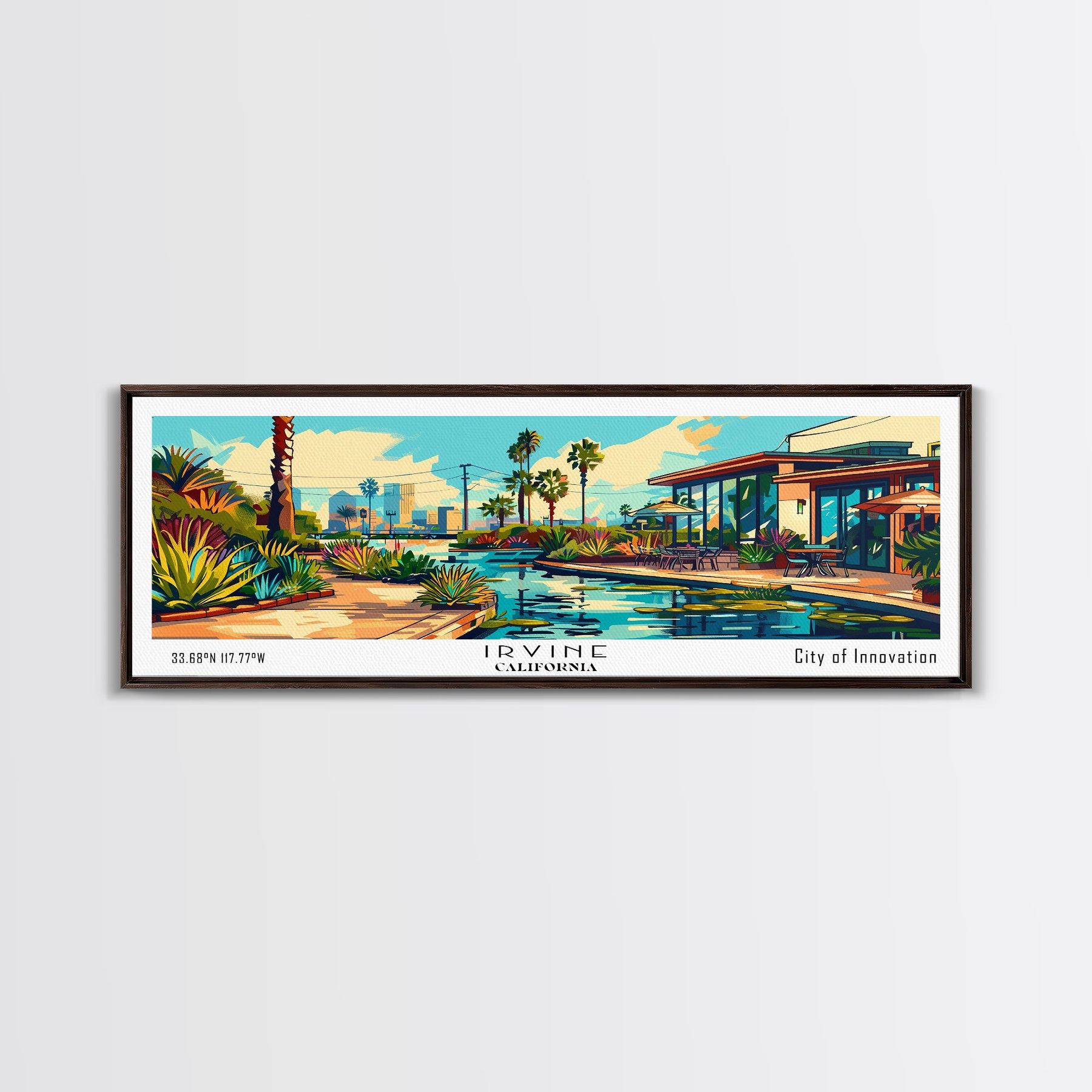 Irvine California Panoramic Travel Poster Framed Canvas Print, Mid Century Modern Art, Pop Art Style, Wall Art Decor, Home Decoration