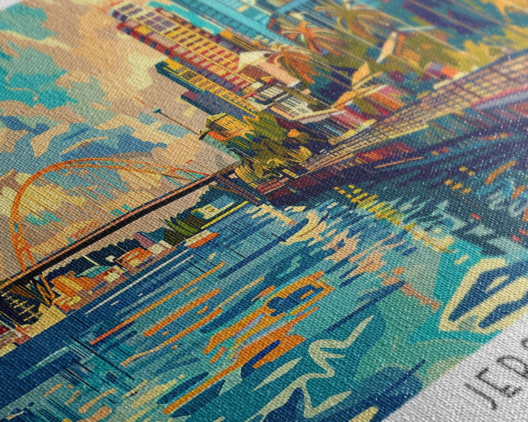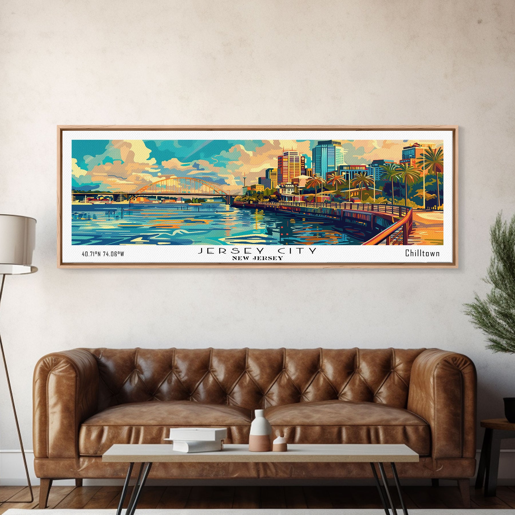 Jersey City New Jersey Panoramic Framed Canvas Print, Retro Style Wall Art, Mid Century Modern Home Decor, Pop Art Travel Poster