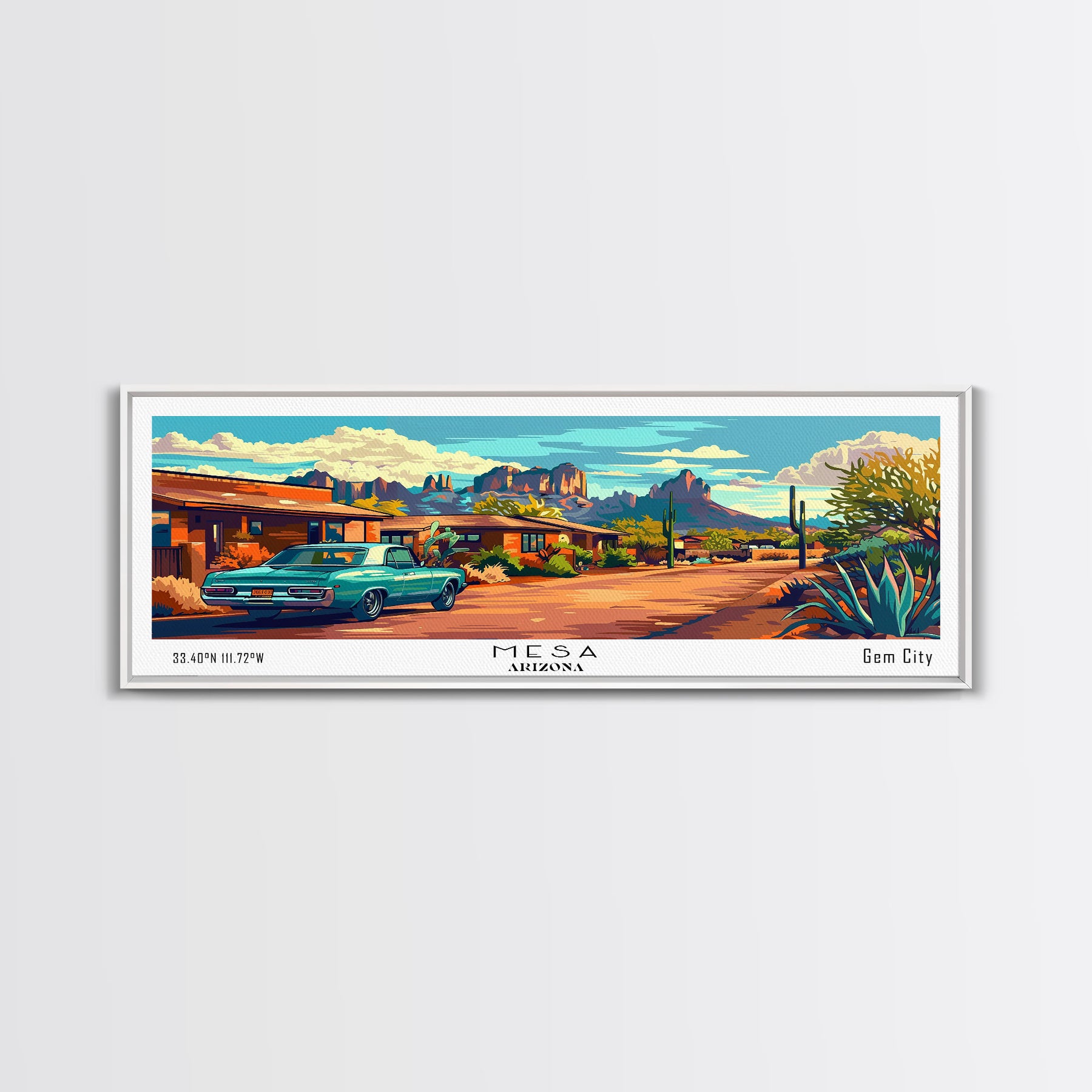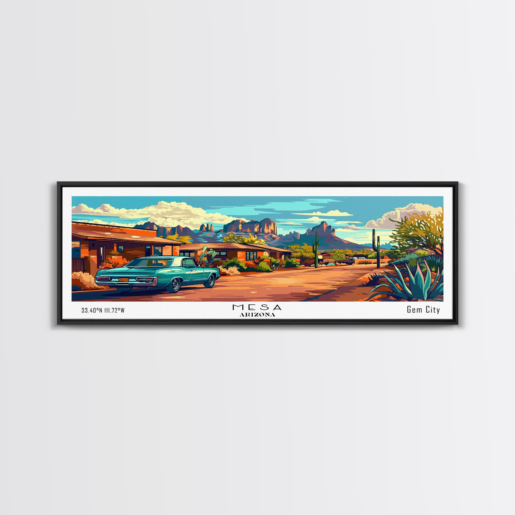 Mesa Arizona Panoramic Painting, Mid Century Modern Framed Canvas Print, Retro Style Wall Art, Pop Art Travel Poster
