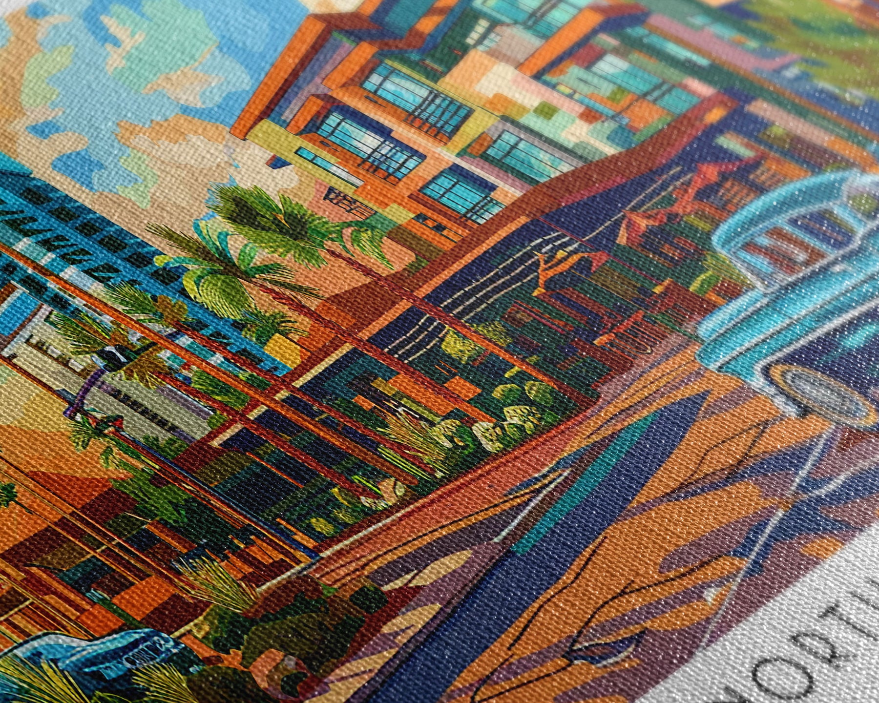 Hello and thank you for taking the time to view our modern high quality giclée artwork! We offer both posters and stretched canvas prints. Our posters are printed on Ultra Matte 60 lb / 230 GSM high quality photo paper, with a thickness of 10 mil. Our canvases are printed on museum grade 350 GSM canvas material with ECO friendly archival grade ink, then hand stretched and stapled over premium, FSC certified and shrink resistant frames. Designed and built to last a lifetime.
