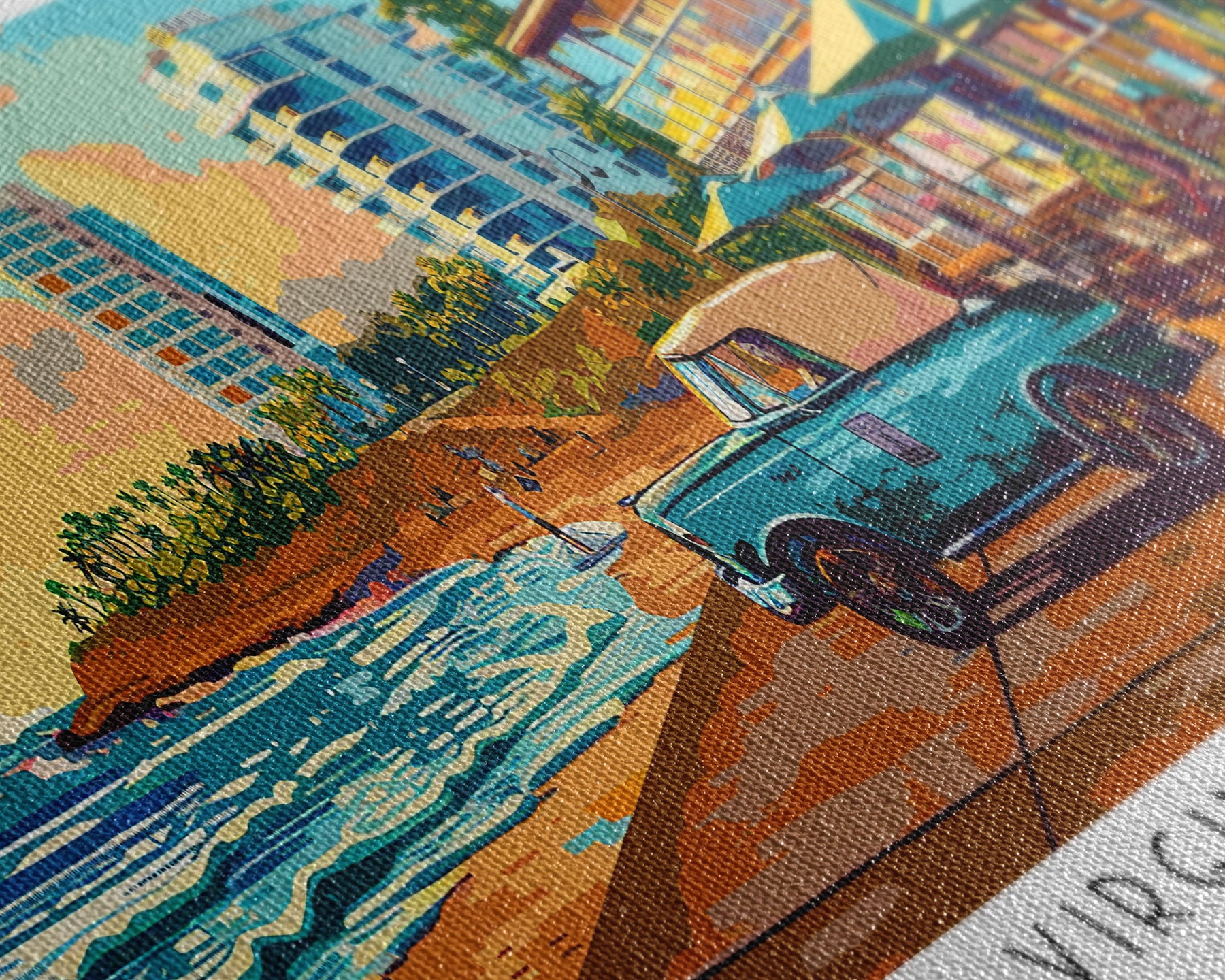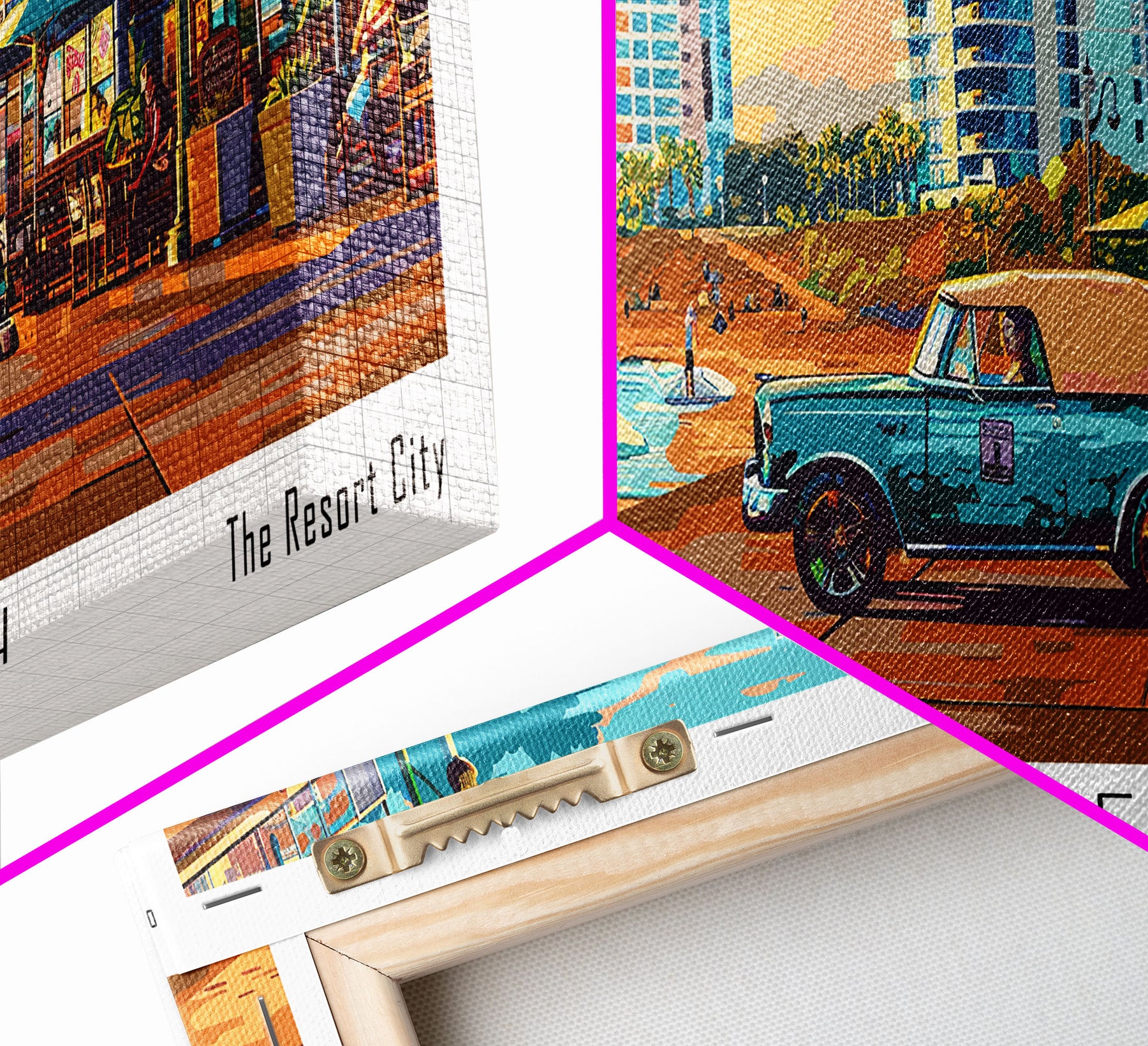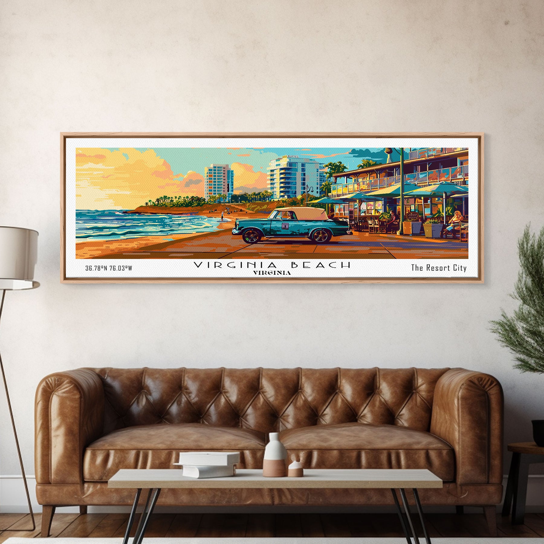 Virginia Beach Virginia Panoramic Wall Art, Mid Century Modern Framed Canvas Print, Retro Pop Art Travel Poster, Living Room Decor