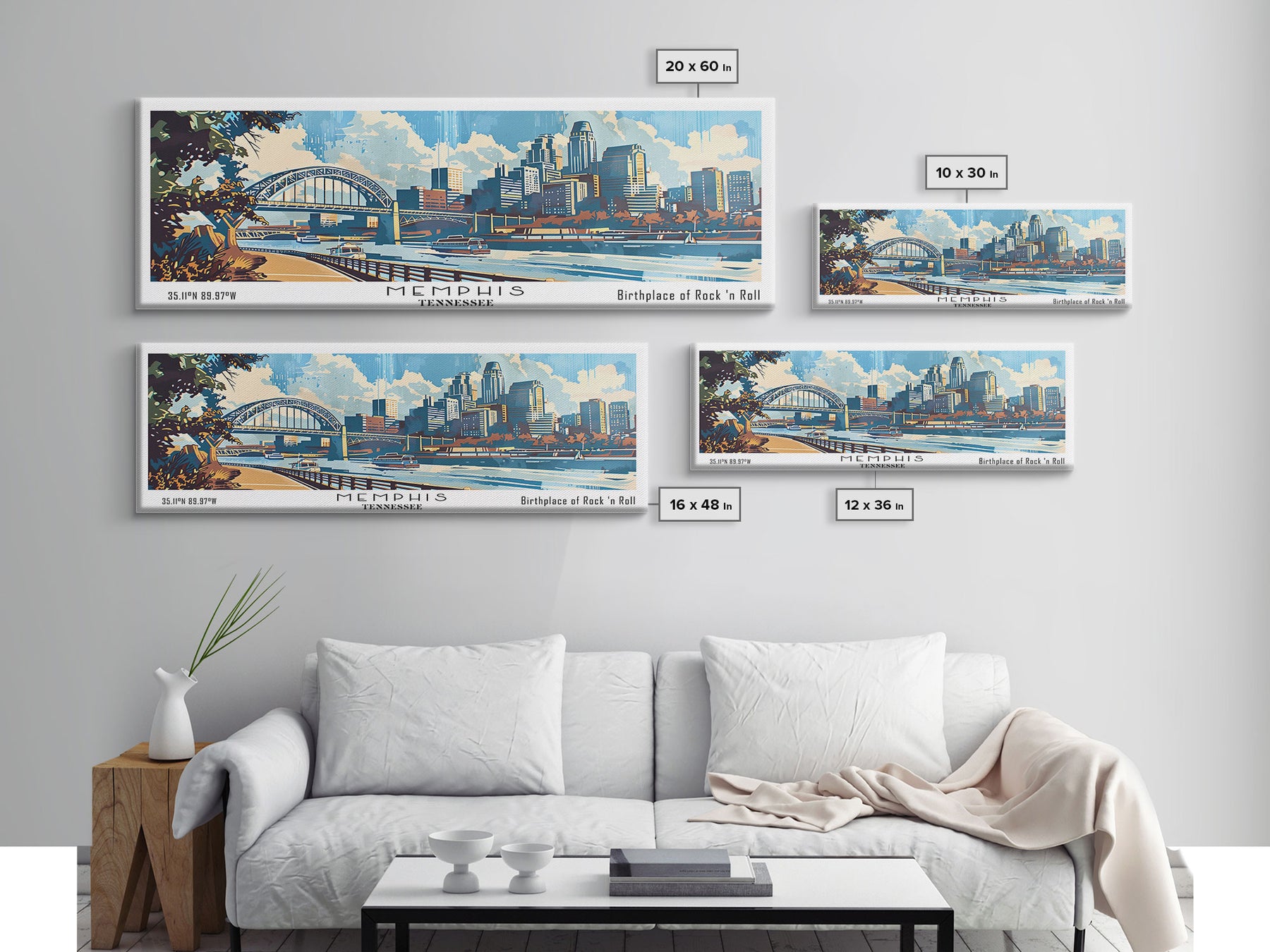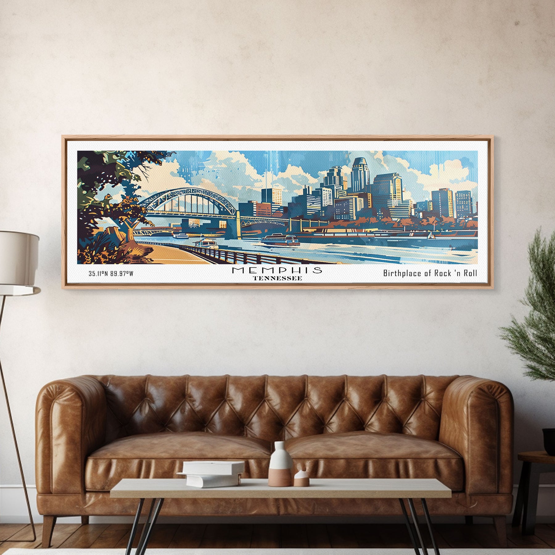 Memphis Tennessee Panoramic Wall Art, Mid Century Modern Framed Canvas Print, Retro Pop Art Travel Poster, Home Decor, Office Art, Gift Idea, Living Room Wall Hanging