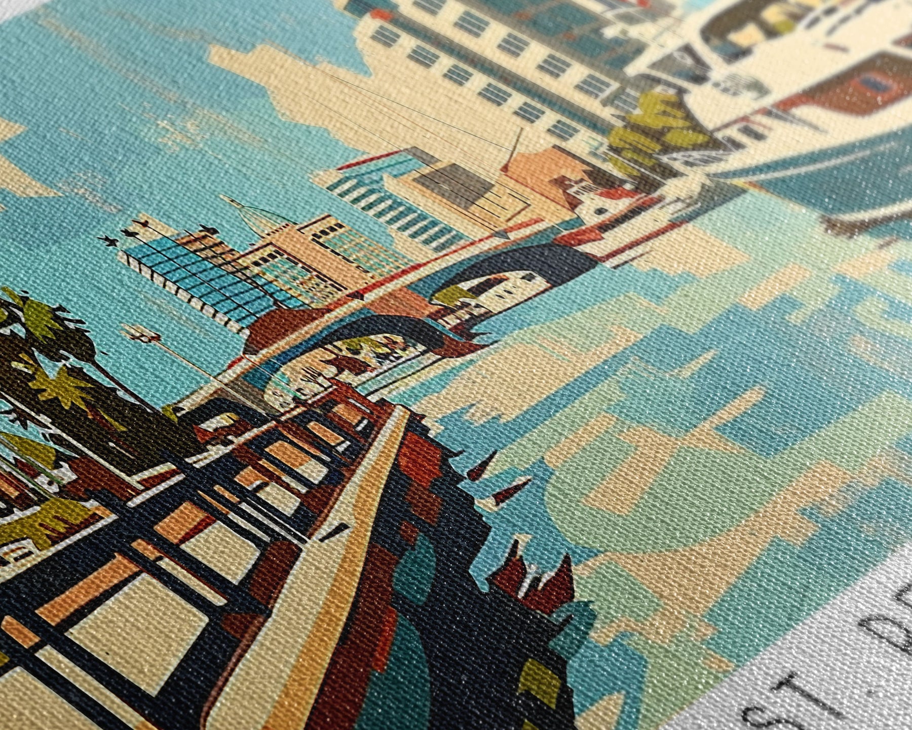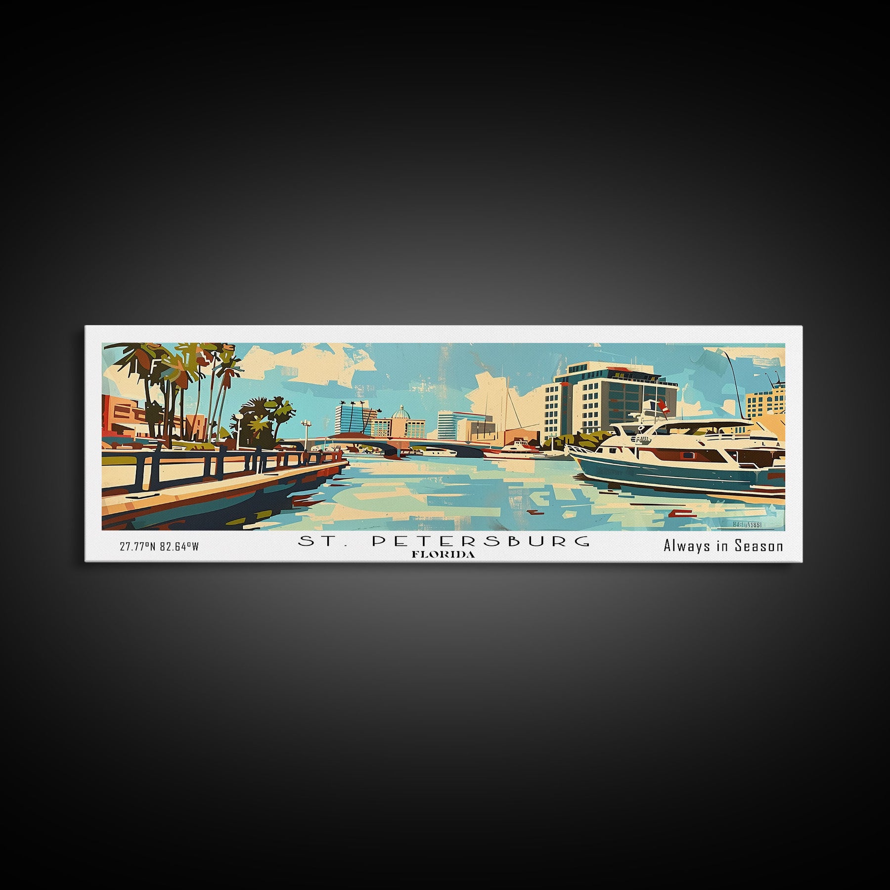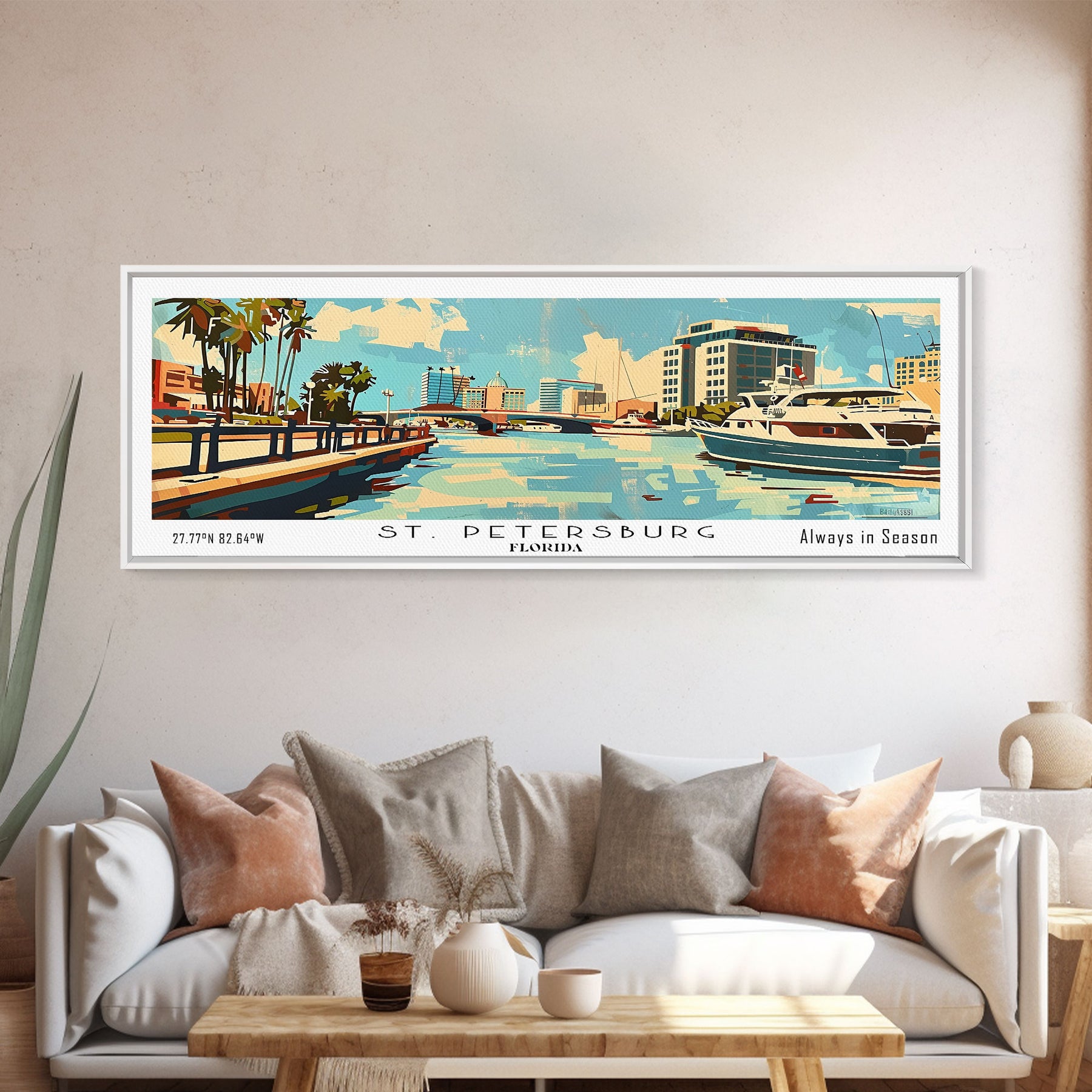 St. Petersburg Florida Panoramic Wall Art, Mid Century Modern Framed Canvas Print, Retro Pop Art Travel Poster, Living Room and Office Wall Art