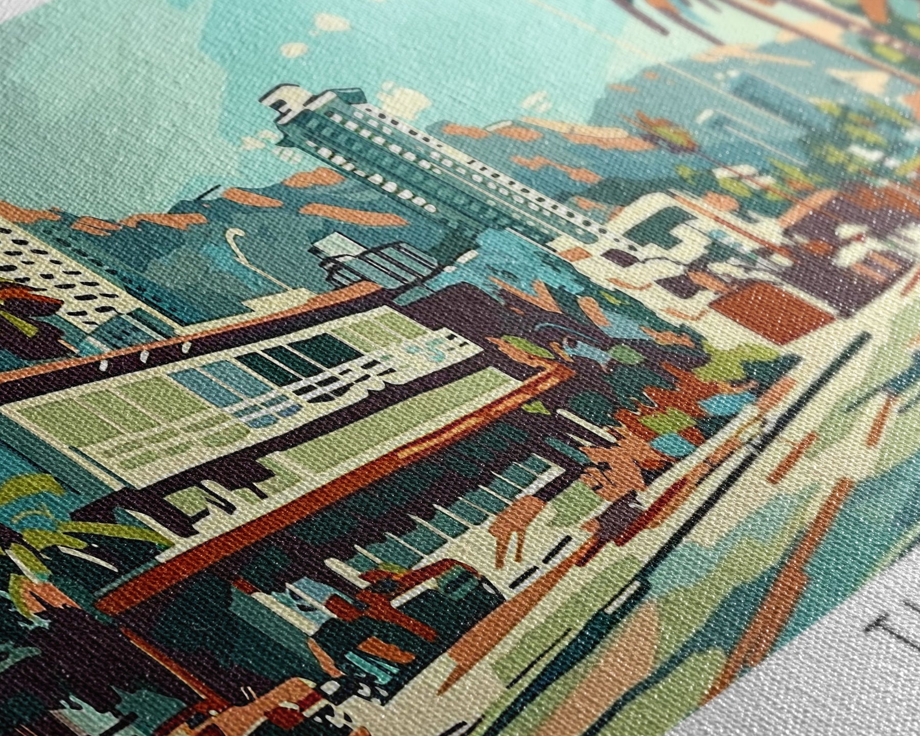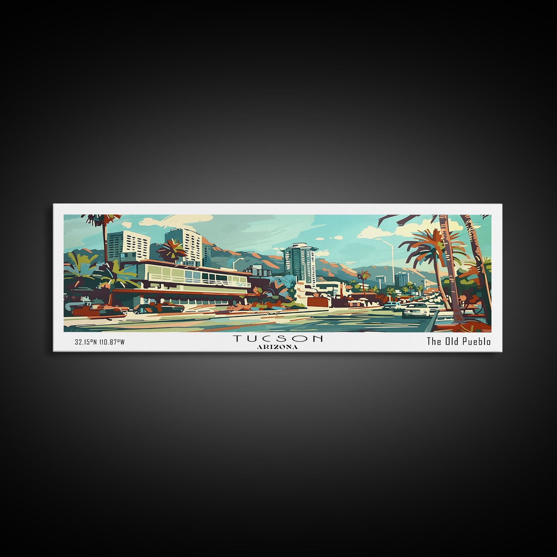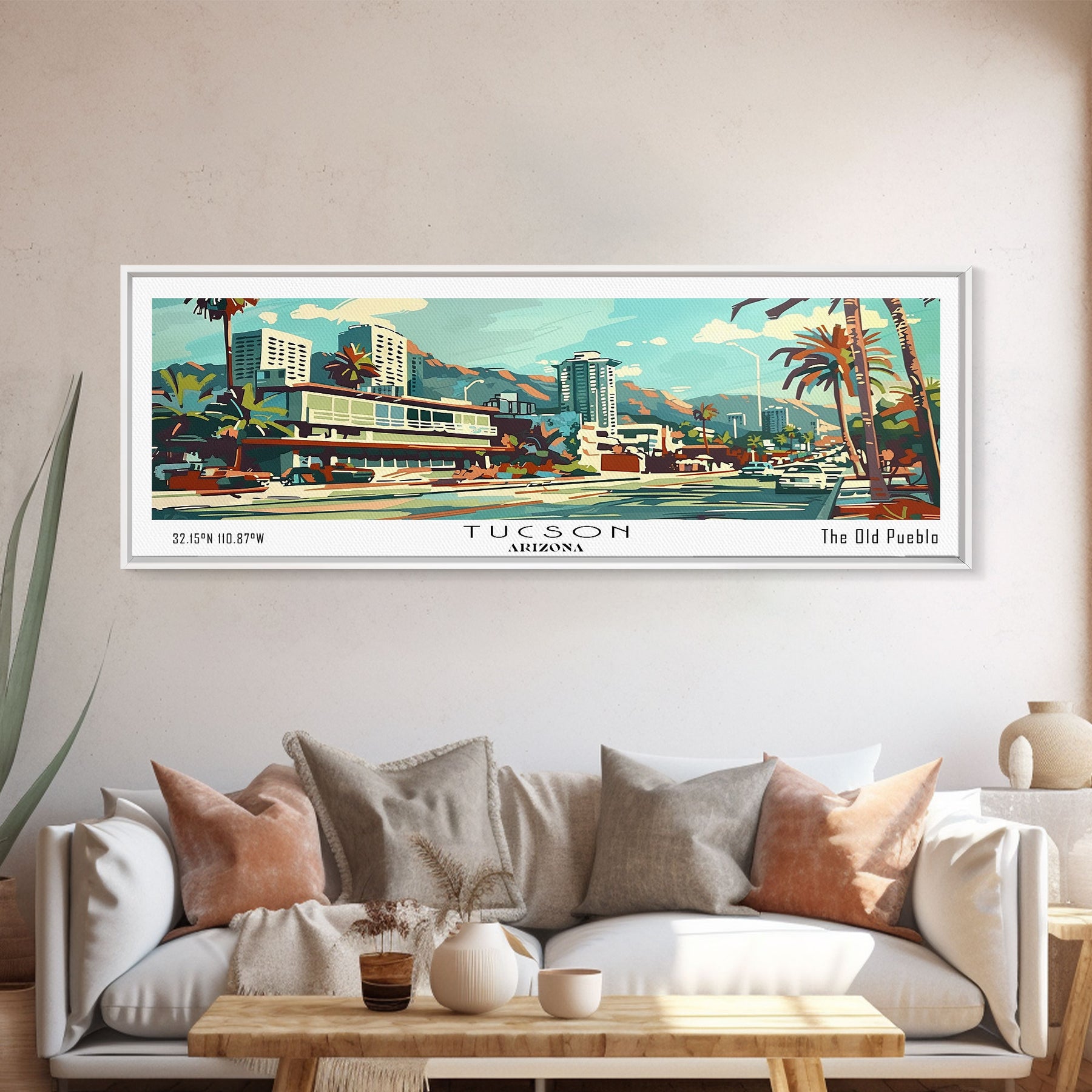 Tucson Arizona Panoramic Wall Art, Mid Century Modern Framed Canvas Print, Retro Pop Art Travel Poster, Living Room and Office Decor