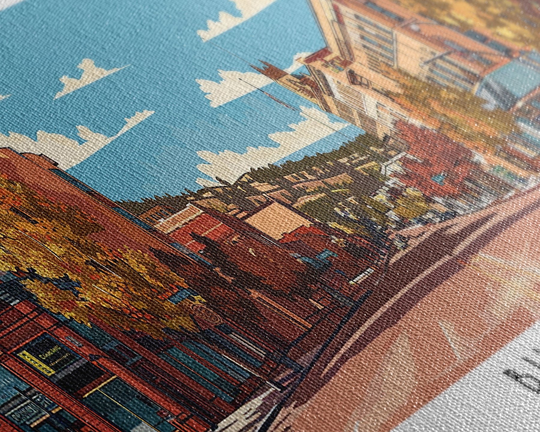 Most of our canvases are made in the USA, with the exception of canvases ordered with the light oak unstained frames, and any large canvases (24x48, 30x60, 16x48 and 20x60) ordered WITH a frame. These are temporarily made in and shipped from Europe, while we try to find a more consistent supplier in the USA.