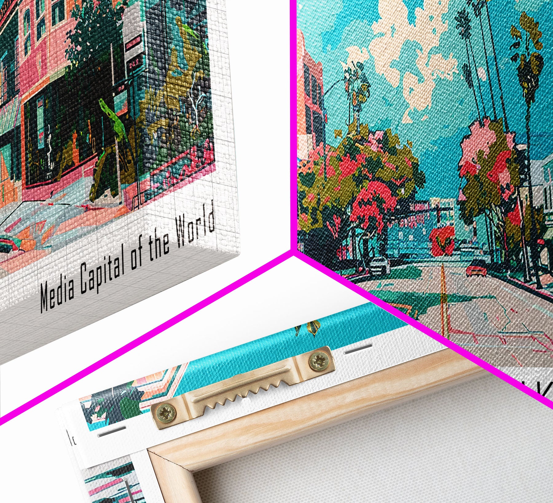 Burbank California Panoramic Painting, Mid Century Modern Framed Canvas Print, Retro Pop Art Travel Poster, Living Room Wall Art, City Art