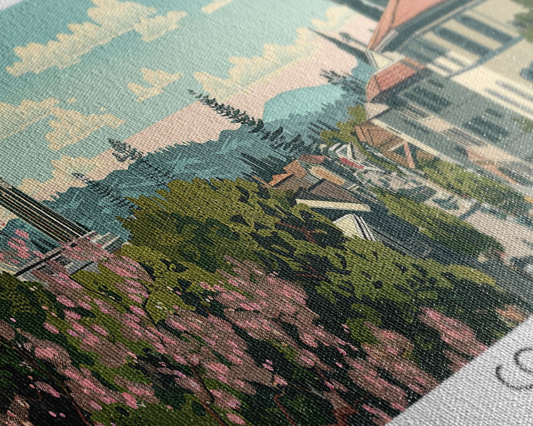 Concord California Panoramic Painting, Mid Century Modern Framed Canvas Print, Retro Pop Art Travel Poster, City Wall Decor, Office Decor