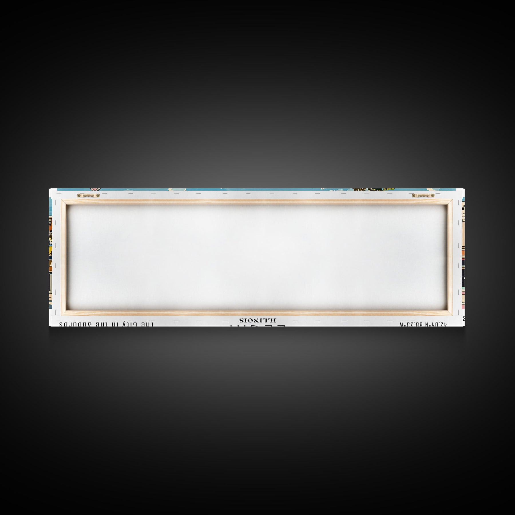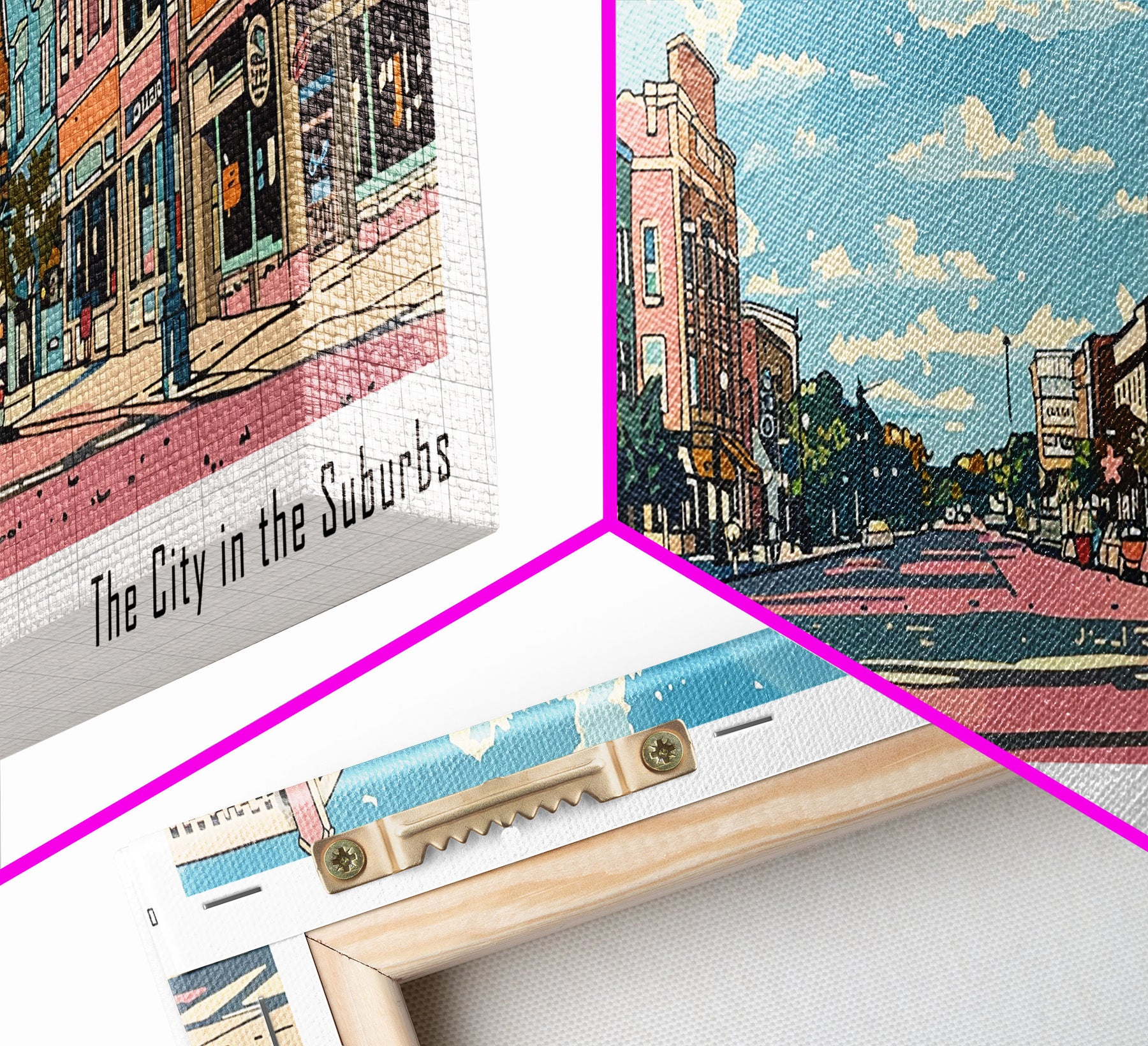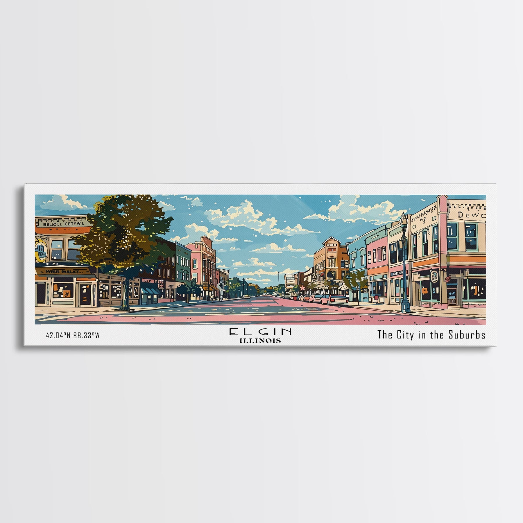 Elgin Illinois Panoramic Painting, Mid Century Modern Framed Canvas Print, Retro Pop Art Travel Poster, City Wall Art, Living Room Decor