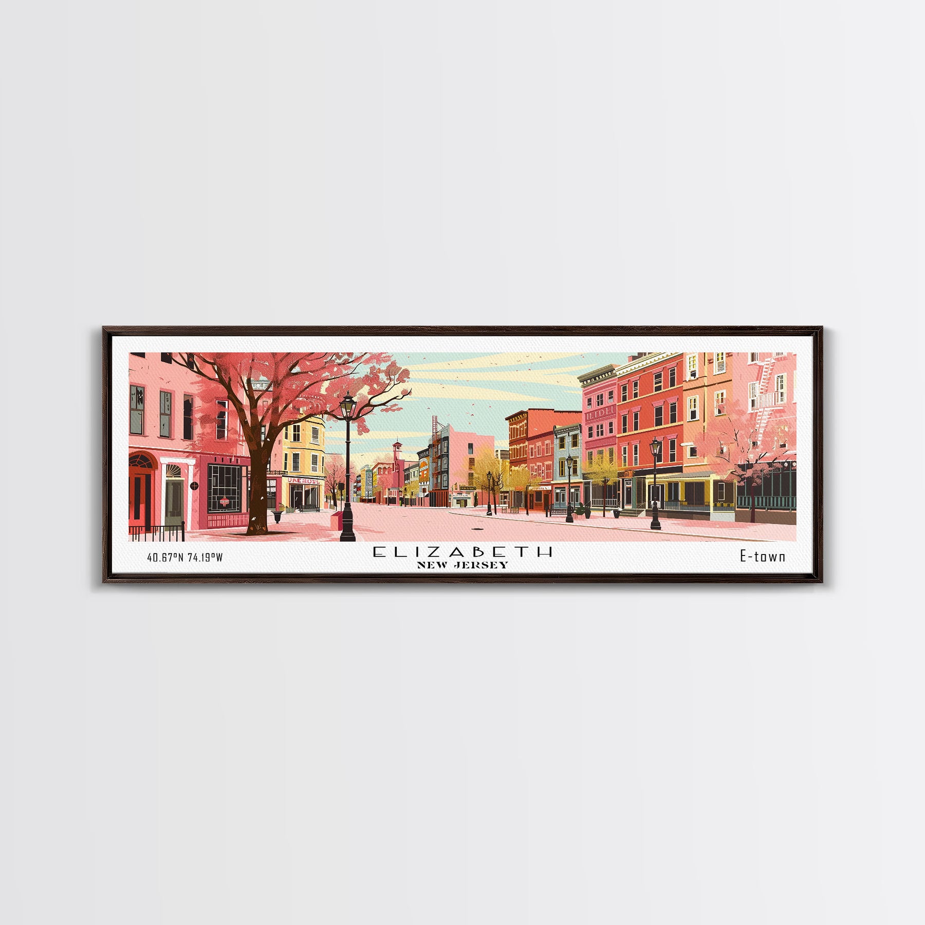 Elizabeth New Jersey Panoramic Wall Art, Mid Century Modern Framed Canvas Print, Retro Pop Art Travel Poster, City Home Decor, Office Art
