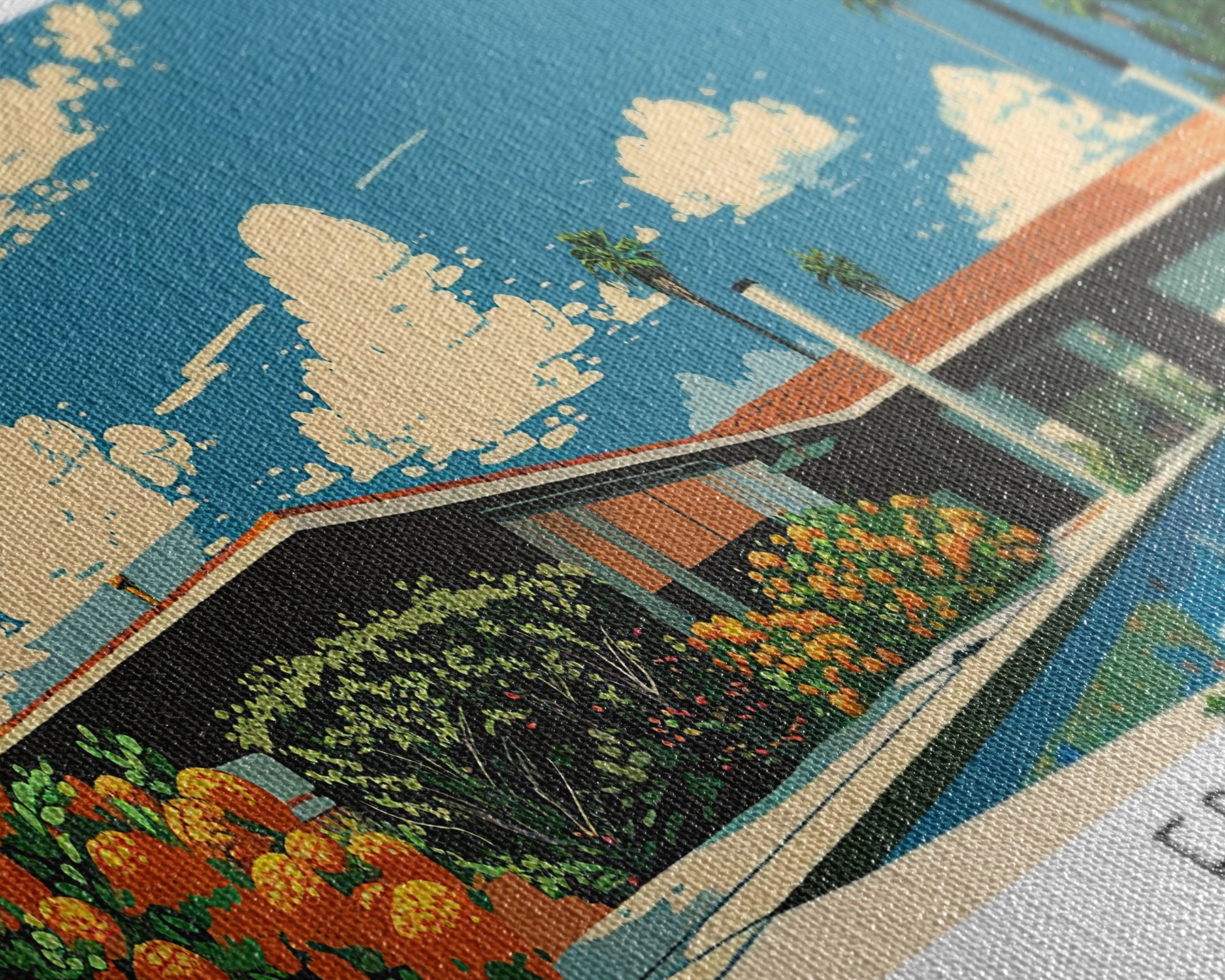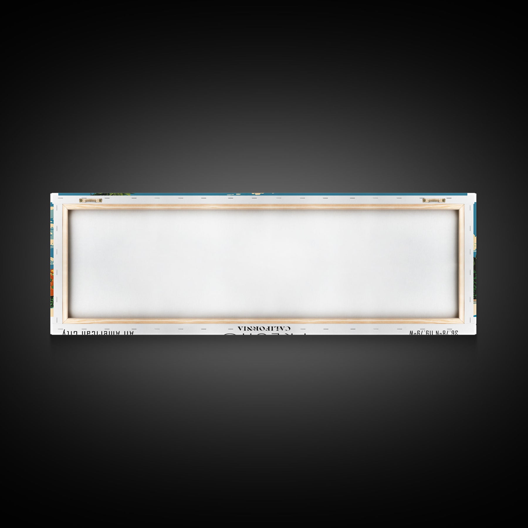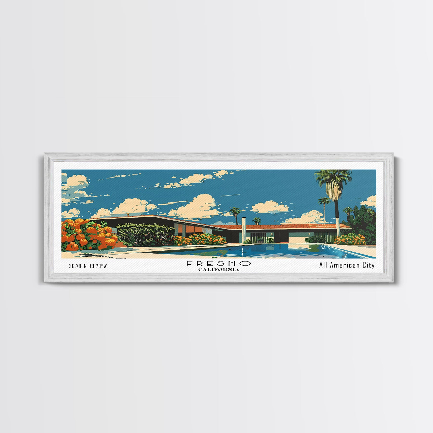 Fresno California Panoramic Painting, Mid Century Modern Framed Canvas Print, Retro Pop Art Travel Poster, Living Room Wall Art