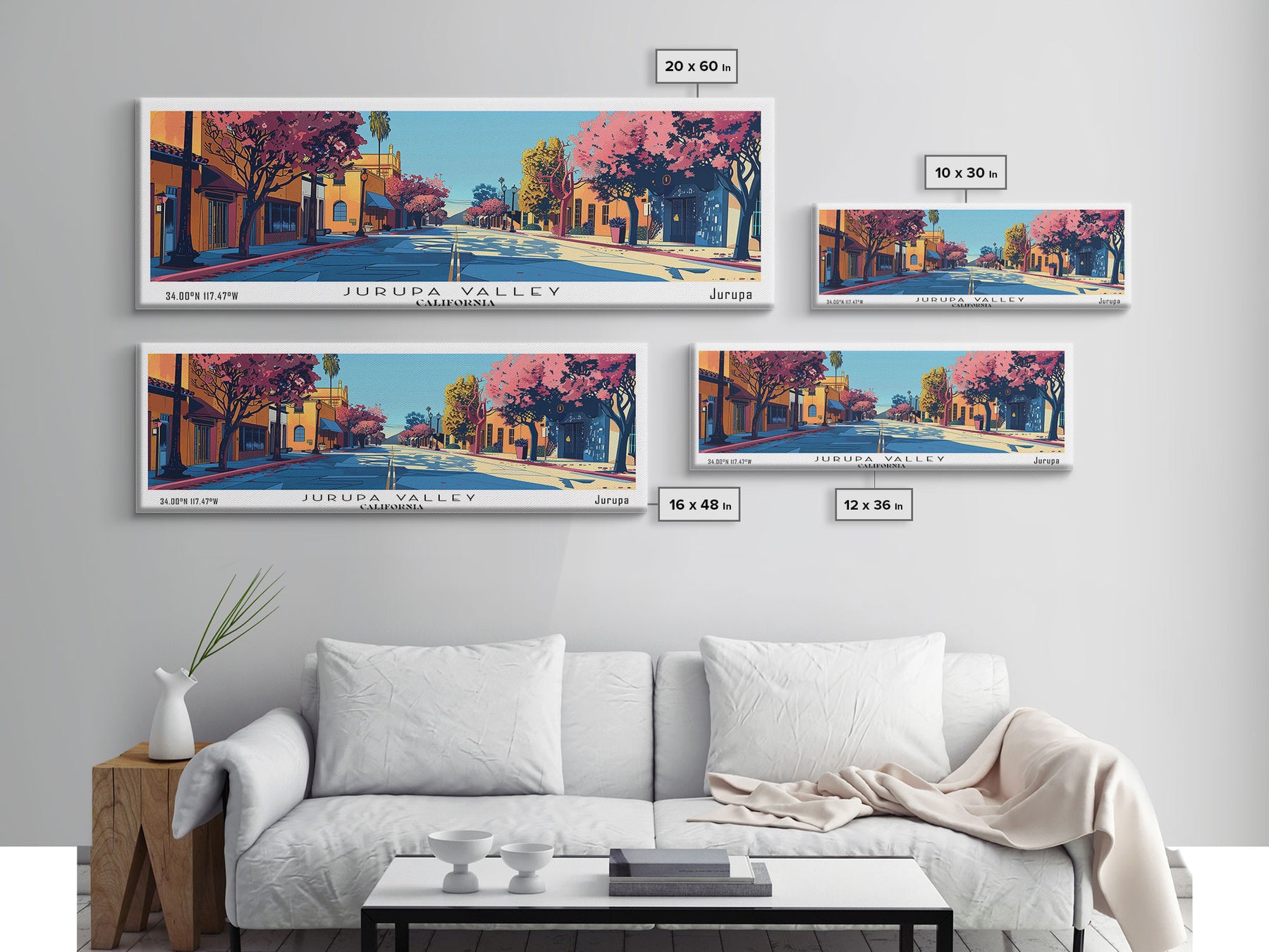 Jurupa Valley California Panoramic Painting, Mid Century Modern Framed Canvas Print, Retro Pop Art Travel Poster, Home Decor