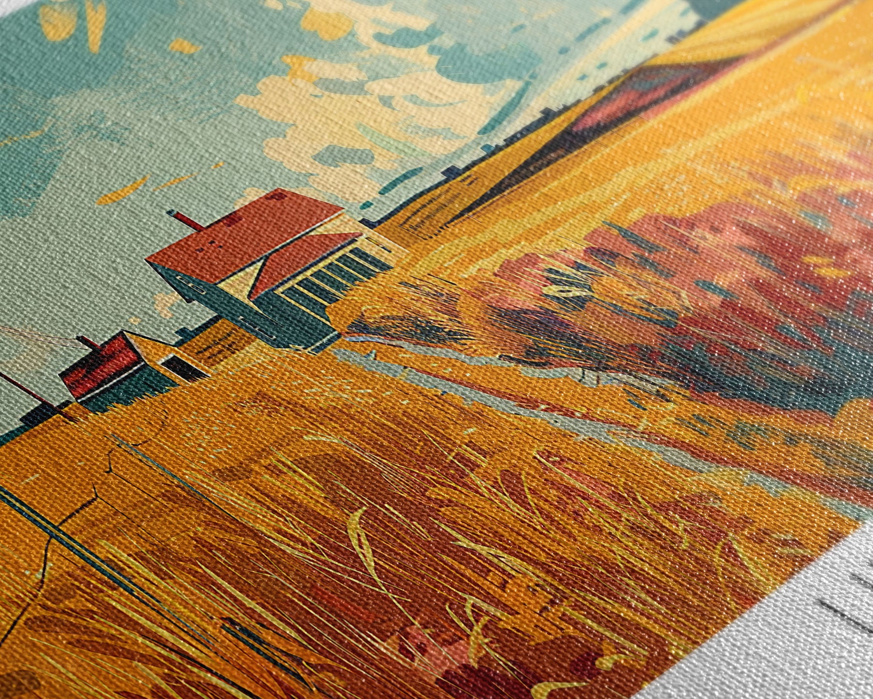 Most of our canvases are made in the USA, with the exception of canvases ordered with the light oak unstained frames, and any large canvases (24x48, 30x60, 16x48 and 20x60) ordered WITH a frame. These are temporarily made in and shipped from Europe, while we try to find a more consistent supplier in the USA.