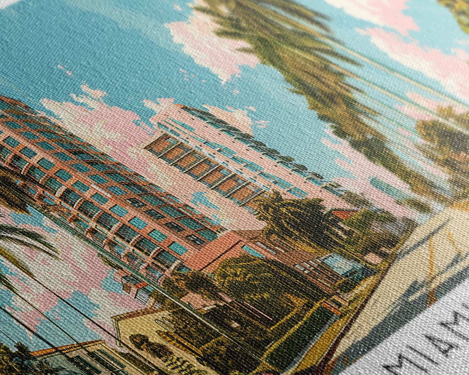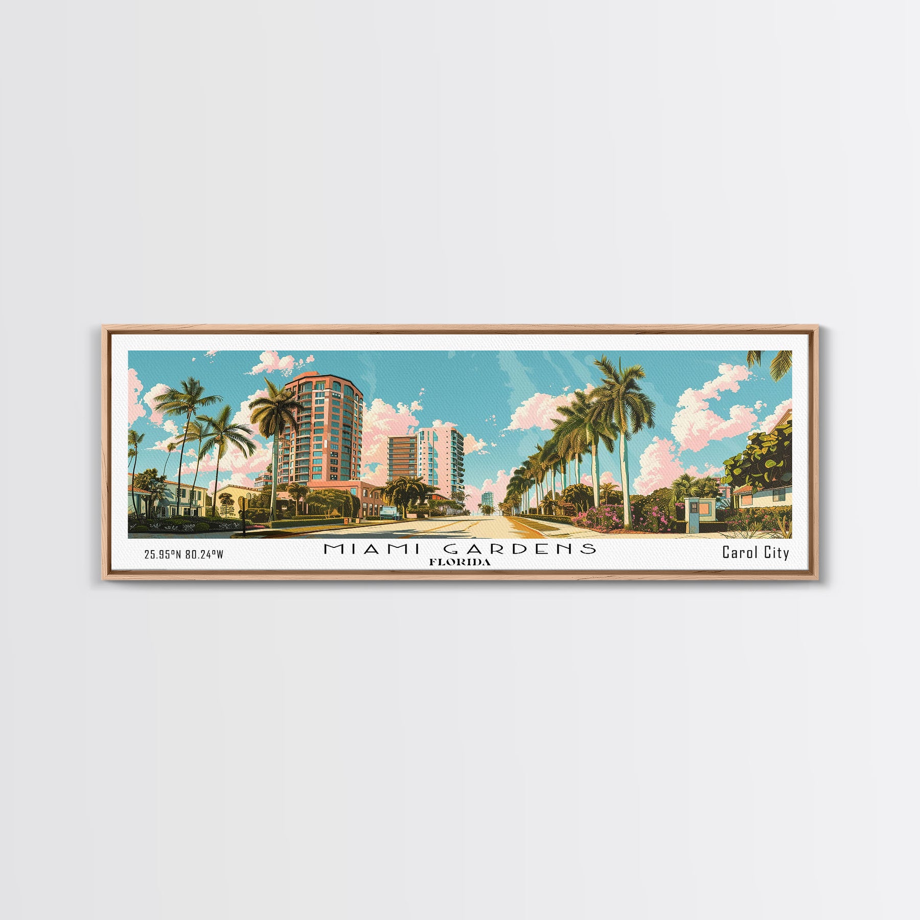 Miami Gardens Florida Panoramic Painting, Mid Century Modern Framed Canvas Print, Retro Pop Art Travel Poster, Home Wall Decor