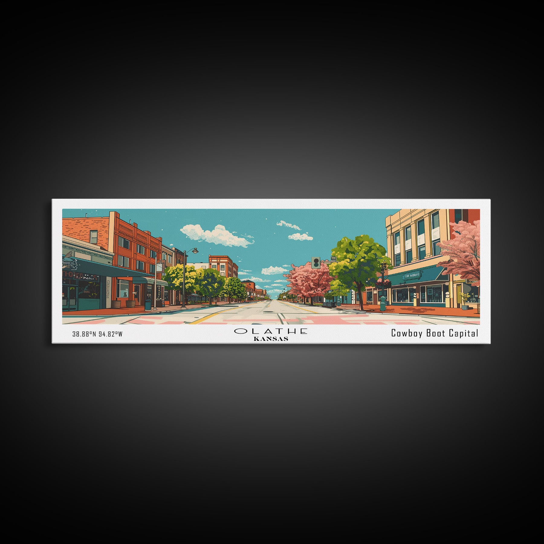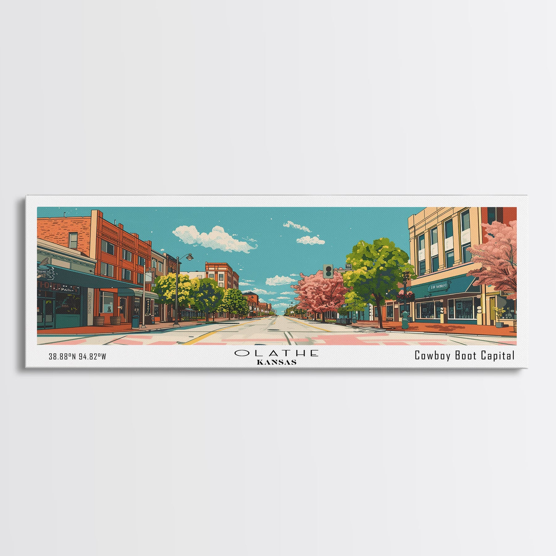 Olathe Kansas Panoramic Wall Art, Mid Century Modern Framed Canvas Print, Retro Pop Art Travel Poster, City Art, Office Wall Decor, Living Room Art