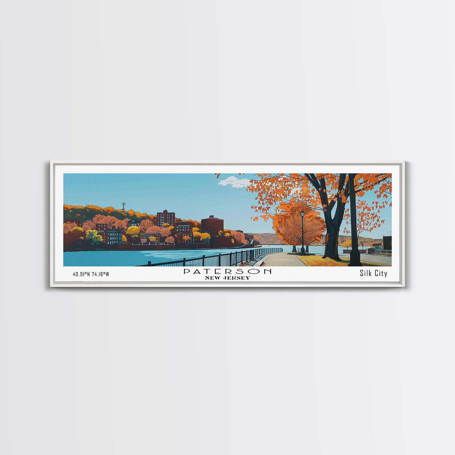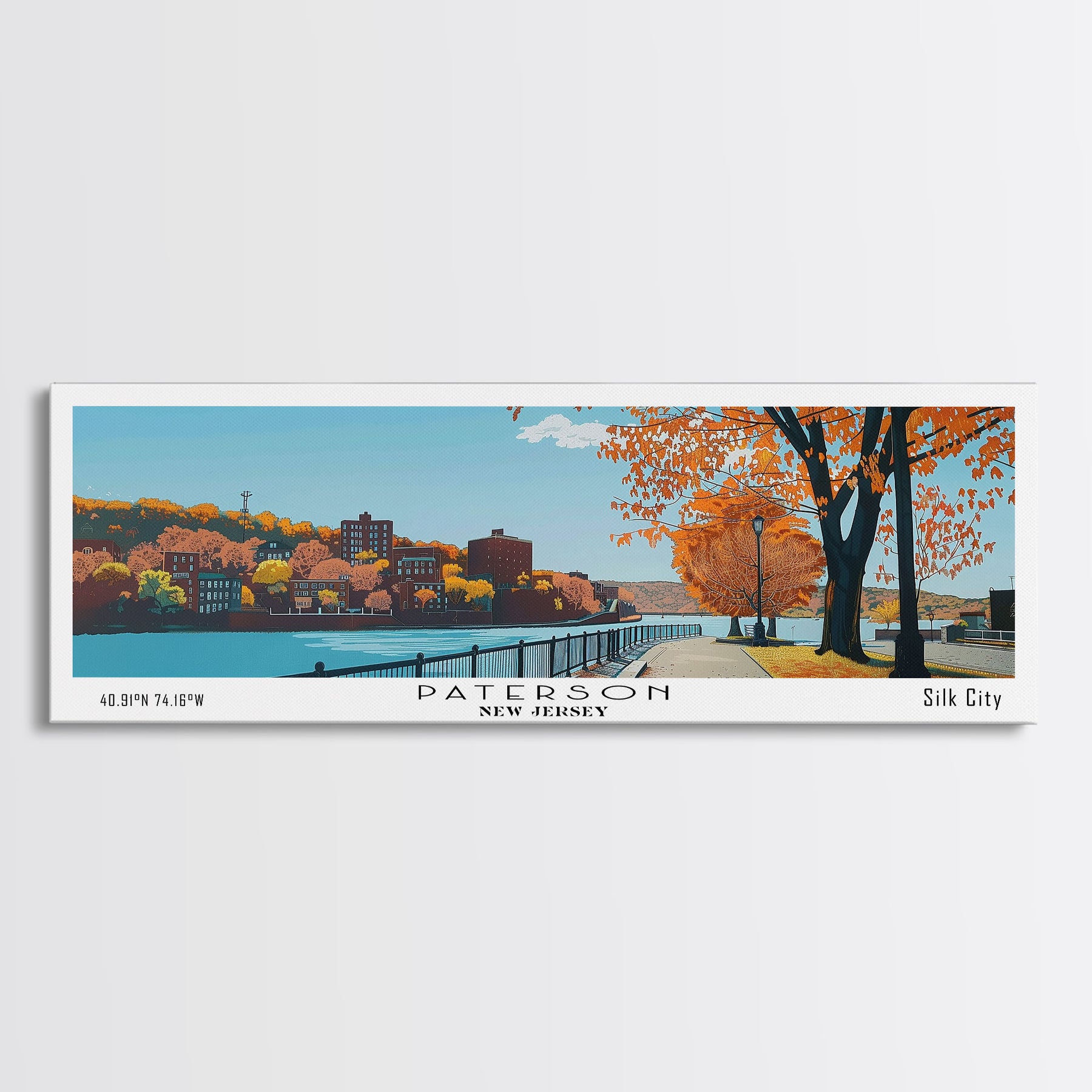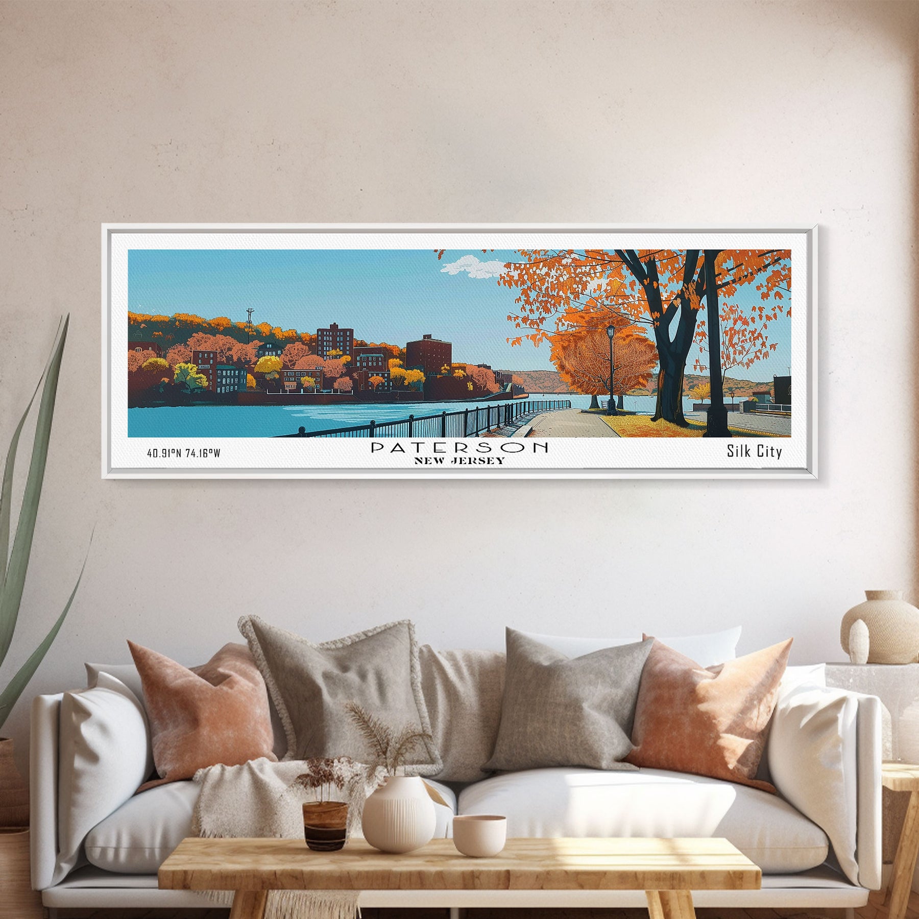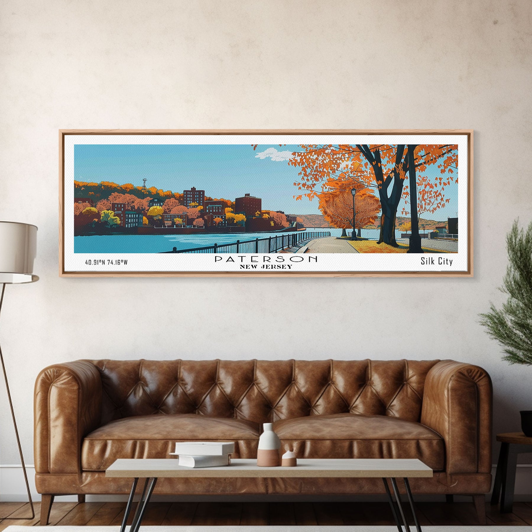 Paterson New Jersey Panoramic Wall Art, Mid Century Modern Framed Canvas Print, Retro Pop Art Travel Poster, City Art, Office Wall Decor, Living Room Art