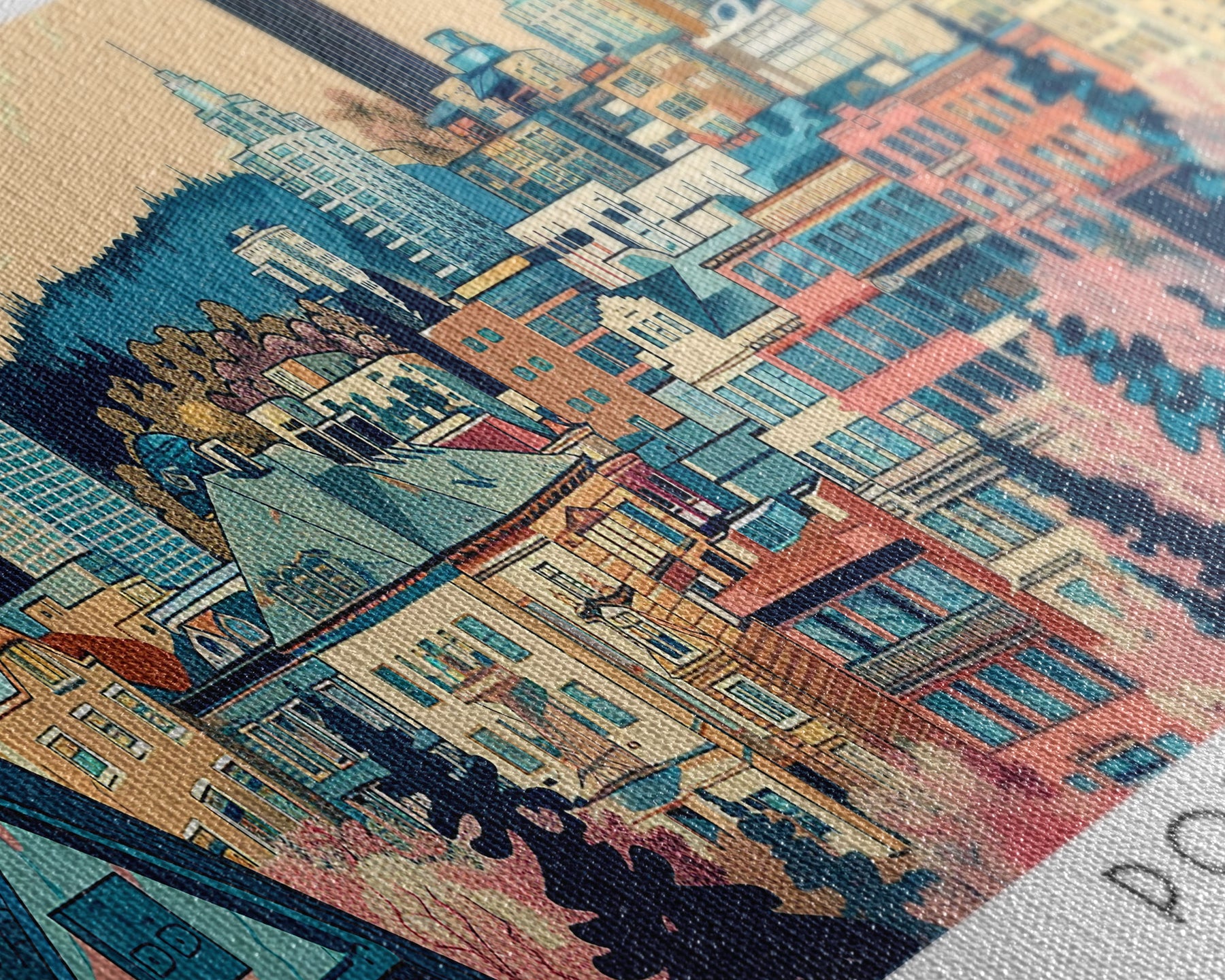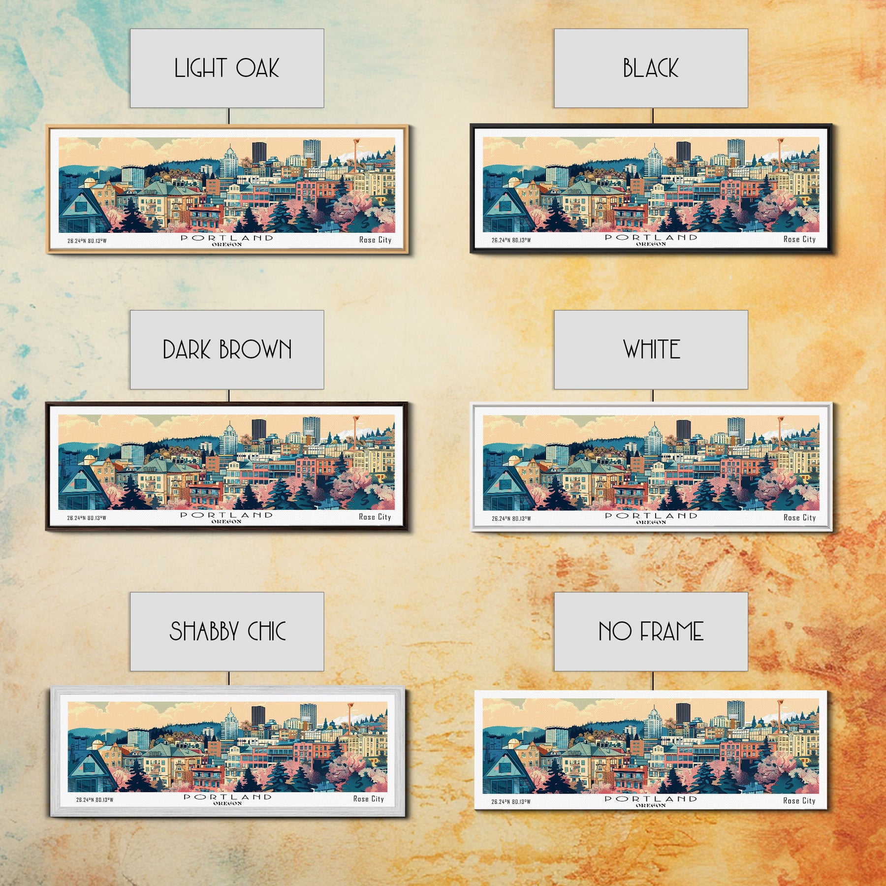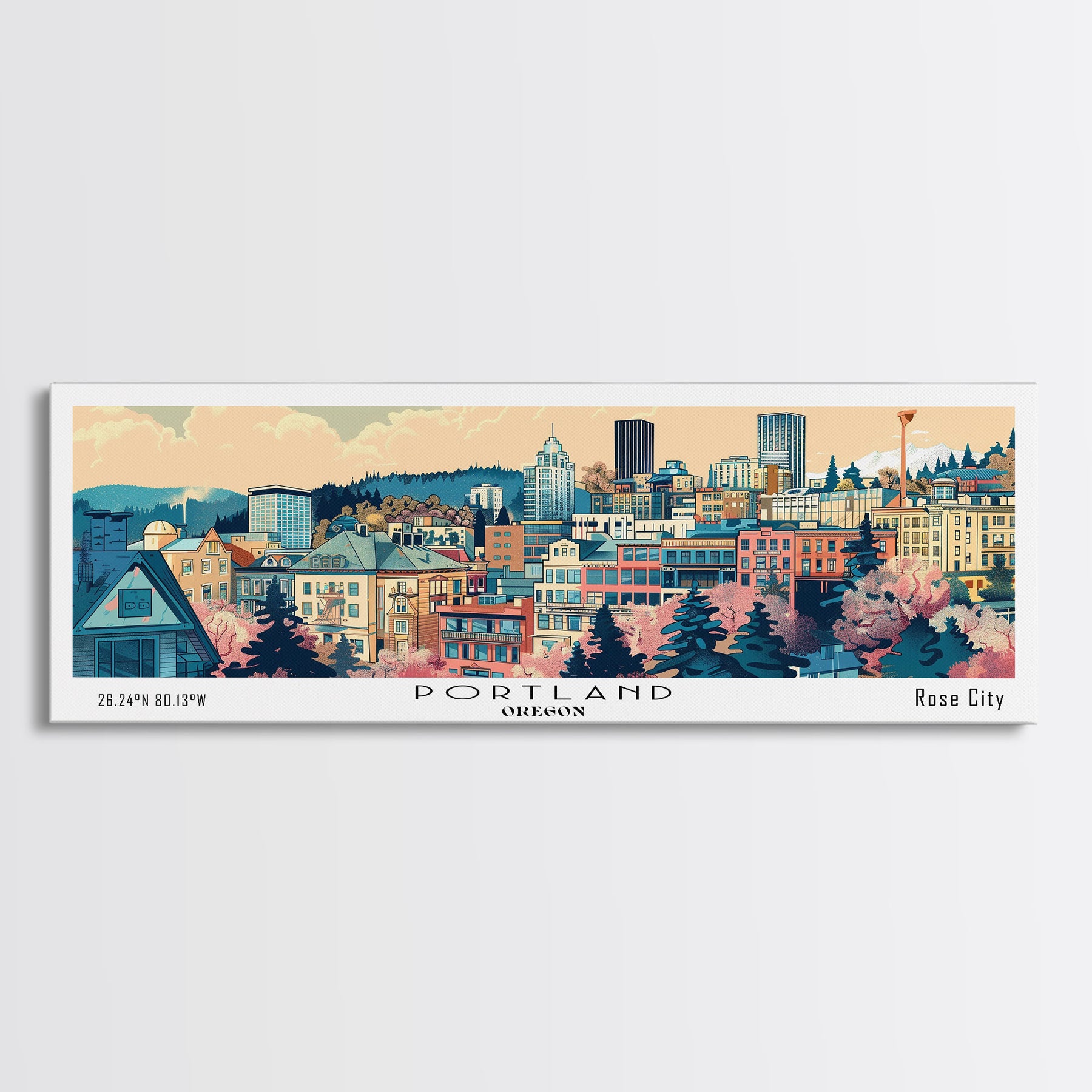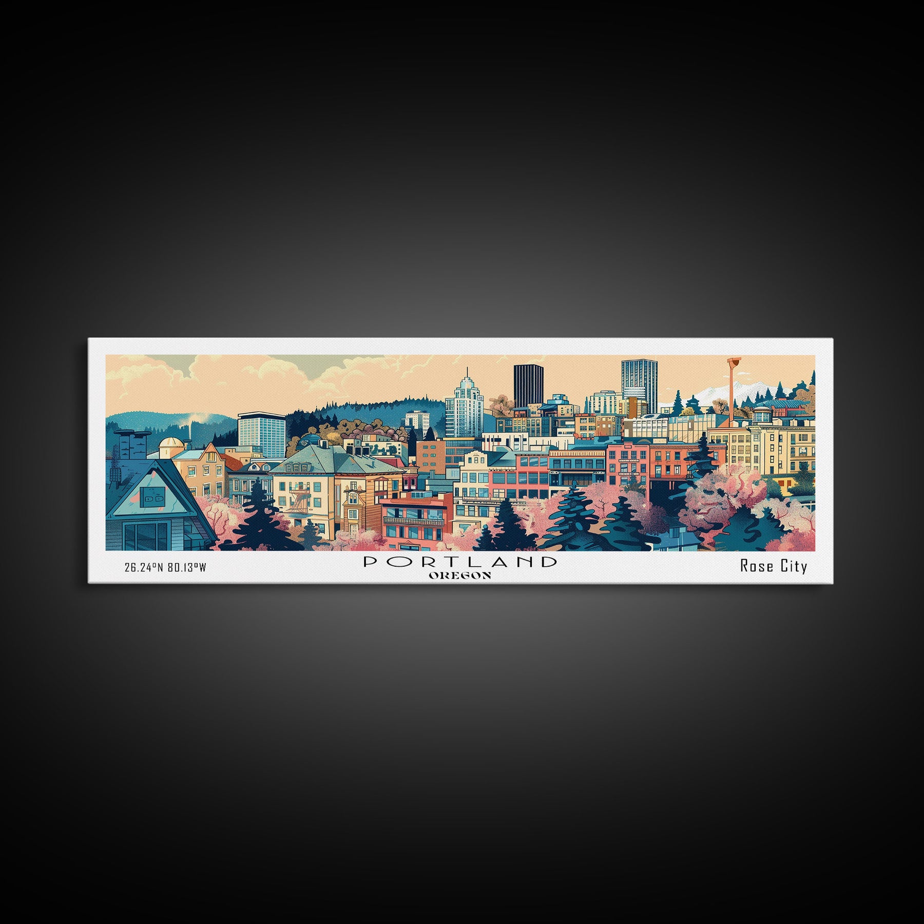 Portland Oregon Panoramic Wall Art, Mid Century Modern Framed Canvas Print, Retro Pop Art Travel Poster, City Art, Office Wall Decor, Living Room Art