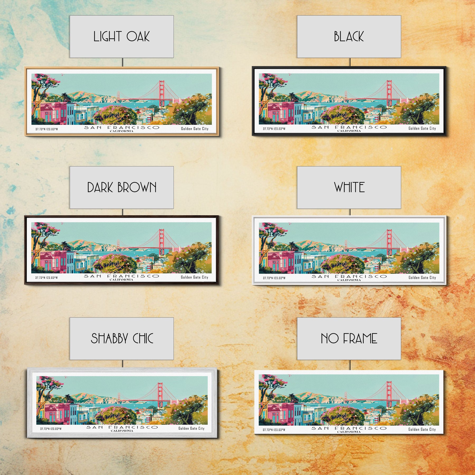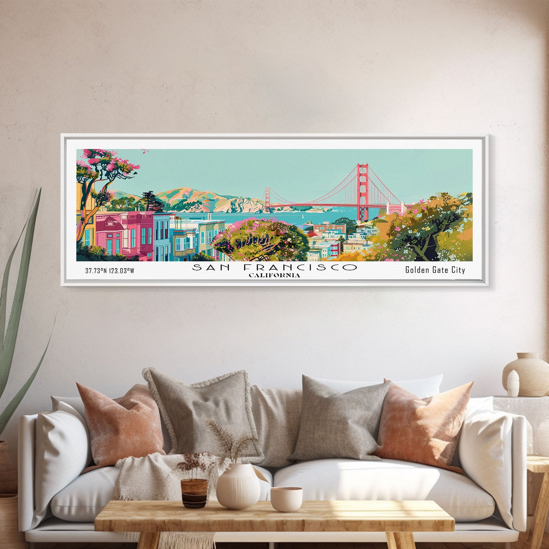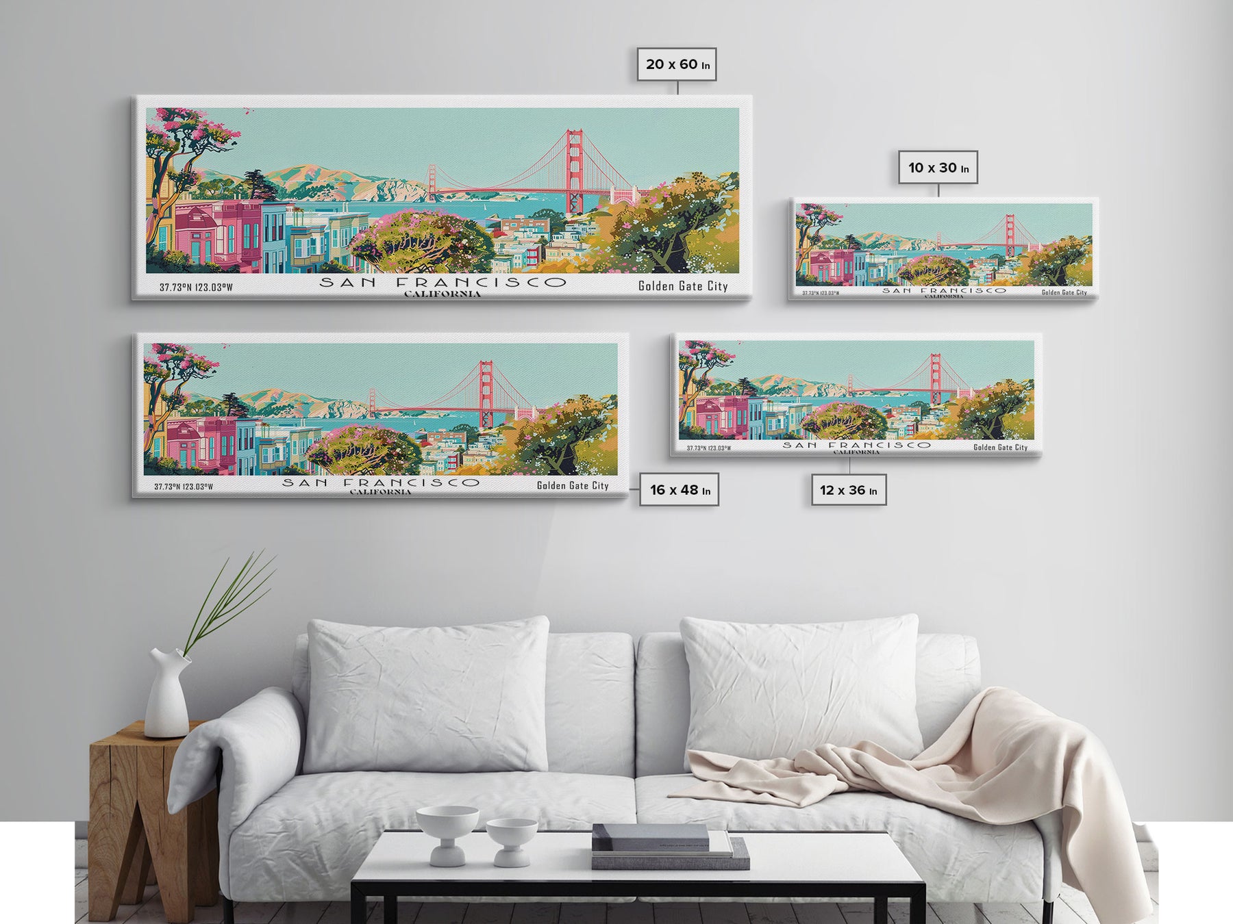 San Francisco California Panoramic Wall Art, Mid Century Modern Framed Canvas Print, Retro Pop Art Travel Poster, City Art, Office Wall Decor, Living Room Art