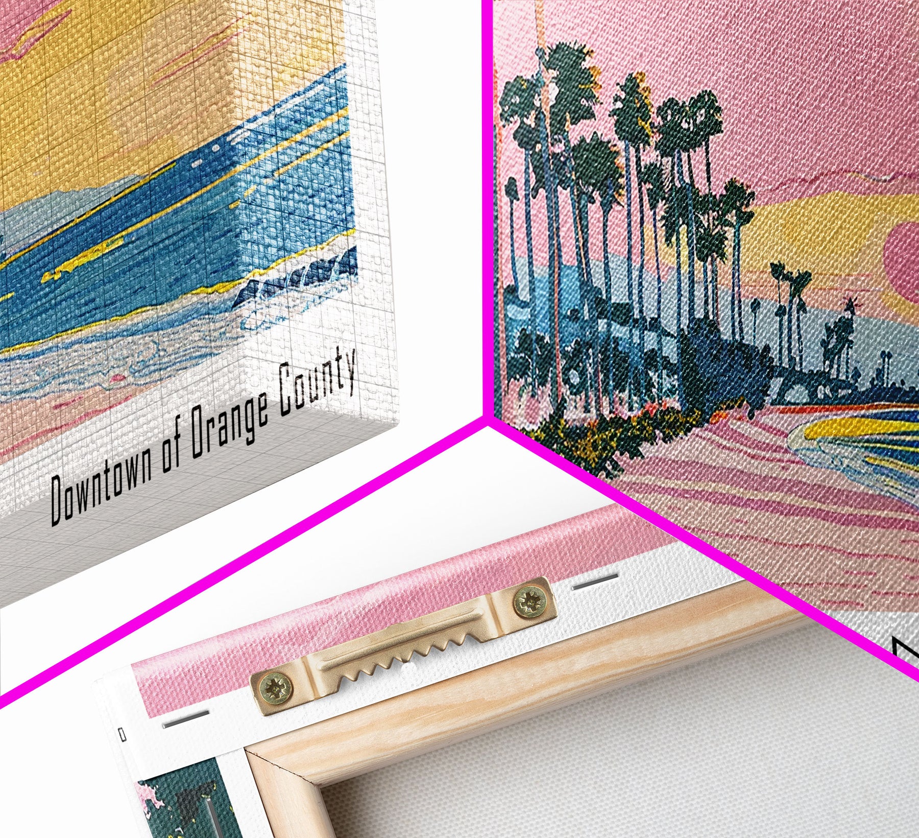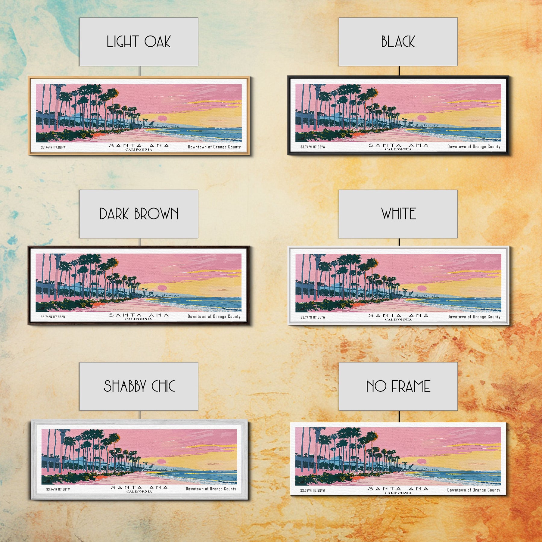 Santa Ana California Panoramic Painting, Mid Century Modern Framed Canvas Print, Retro Pop Art Travel Poster, City Art, Office Wall Decor, Living Room Art