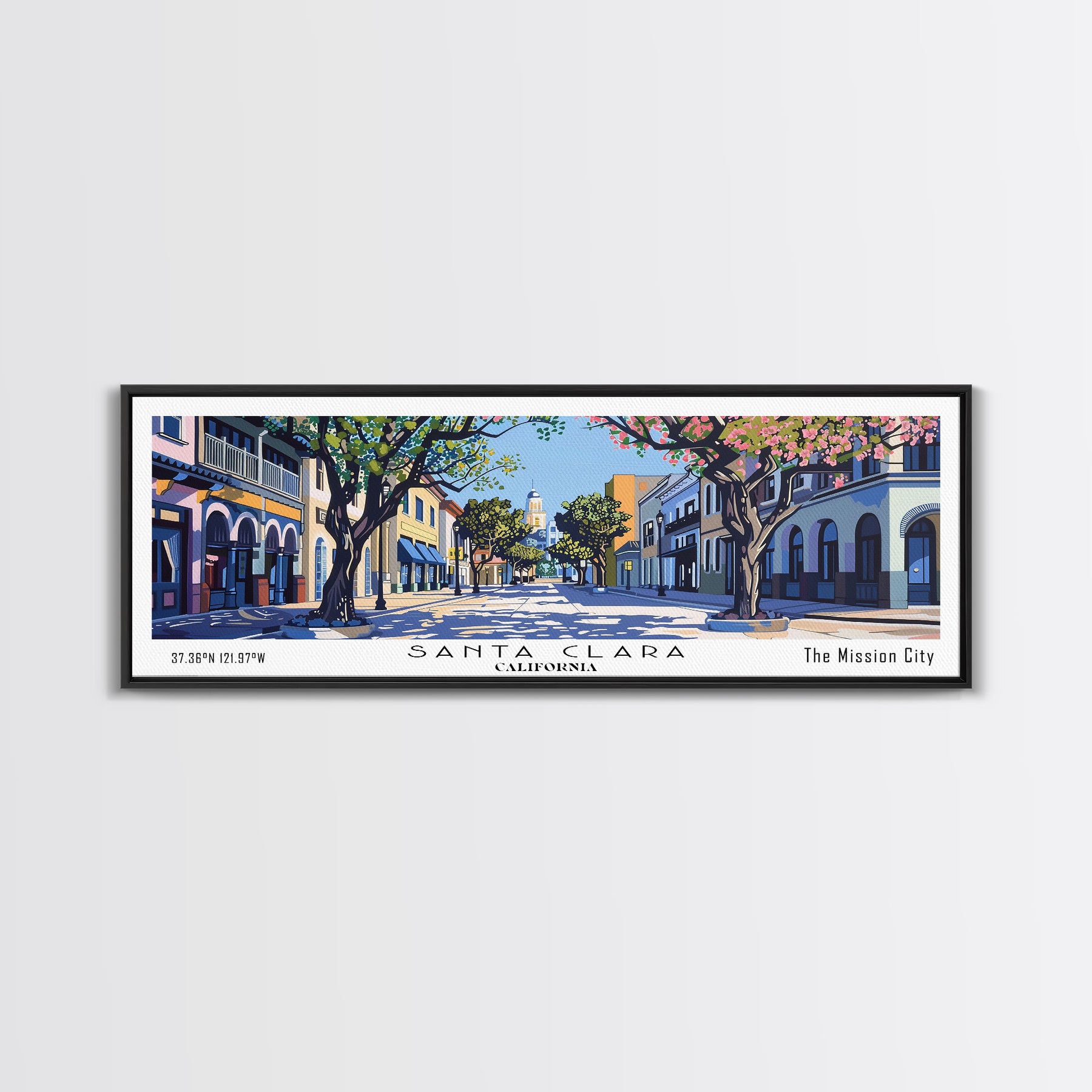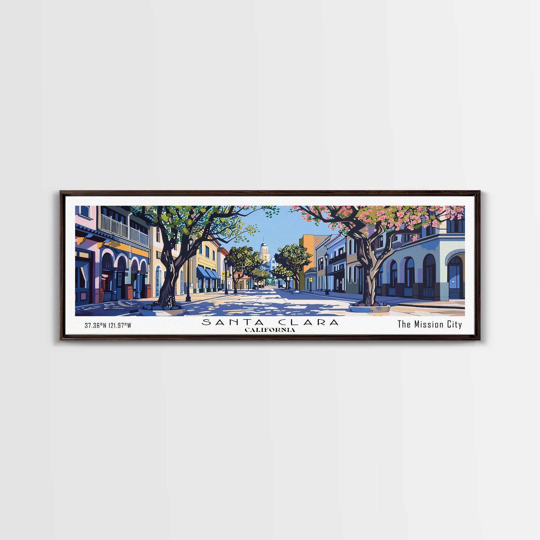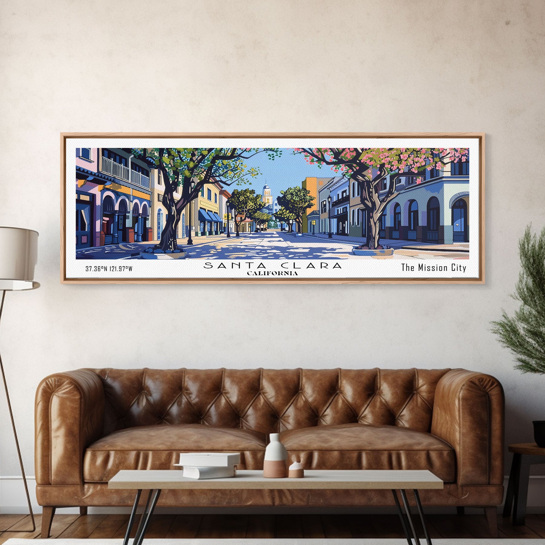 Santa Clara California Panoramic Wall Art, Mid Century Modern Framed Canvas Print, Retro Pop Art Travel Poster, City Art, Office Wall Decor, Living Room Art