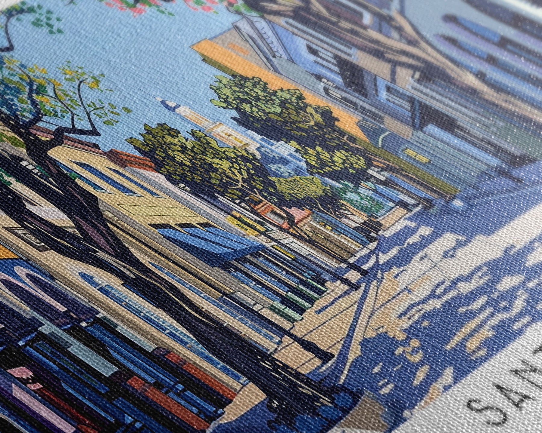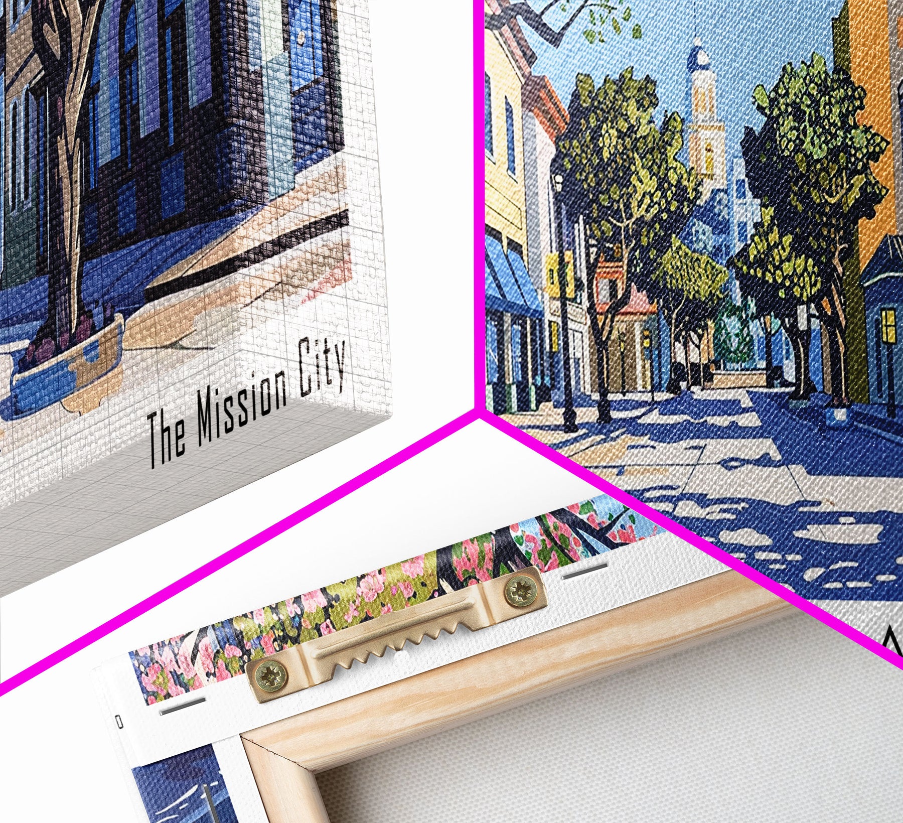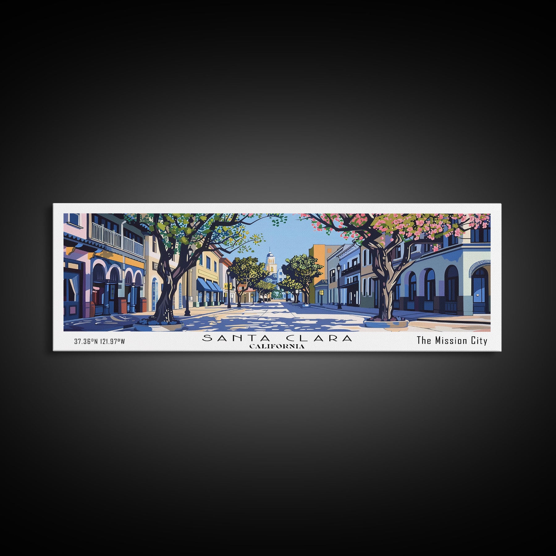 Santa Clara California Panoramic Wall Art, Mid Century Modern Framed Canvas Print, Retro Pop Art Travel Poster, City Art, Office Wall Decor, Living Room Art