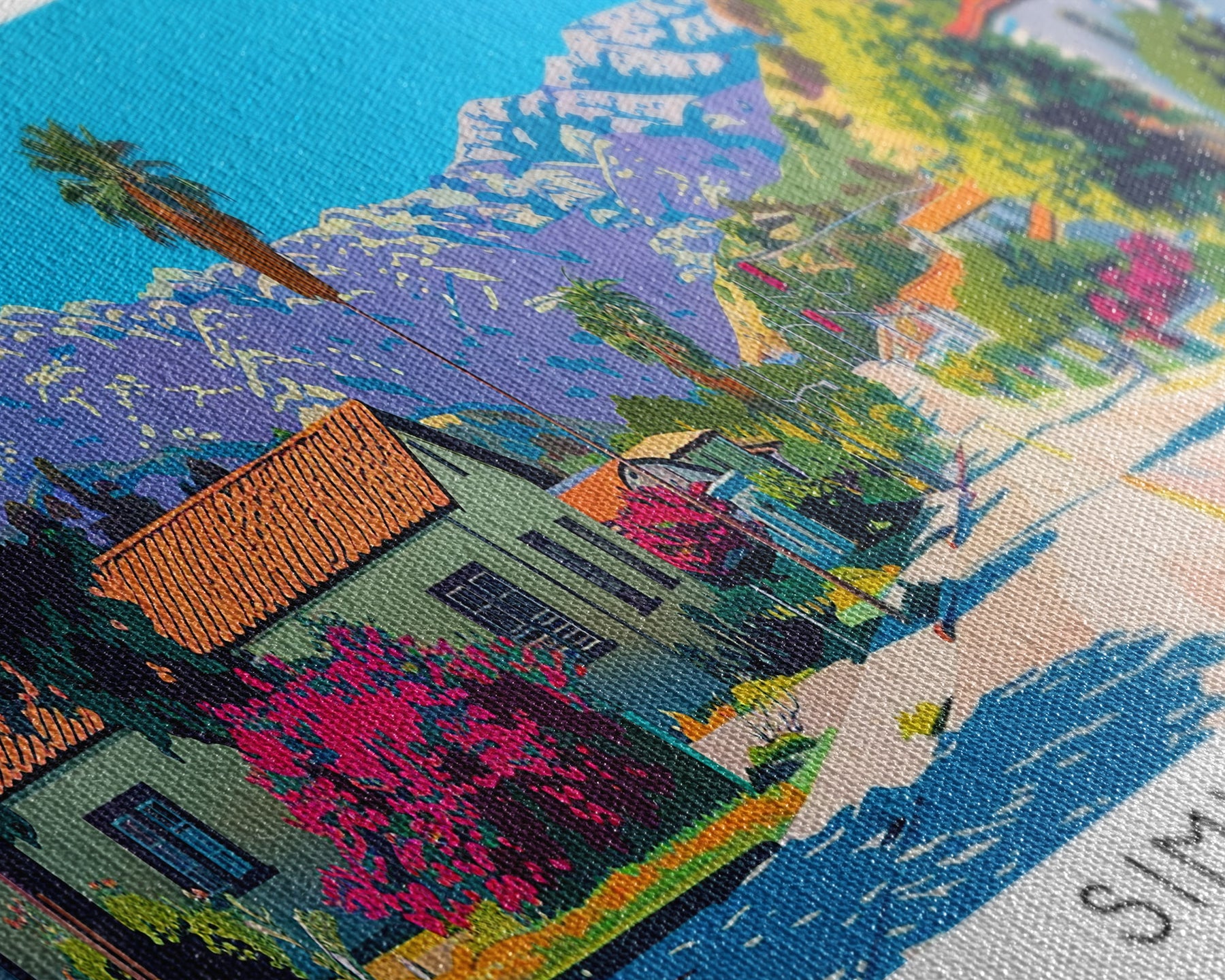 Simi Valley California Panoramic Painting, Mid Century Modern Framed Canvas Print, Retro Pop Art Travel Poster, Living Room Wall Art Decor
