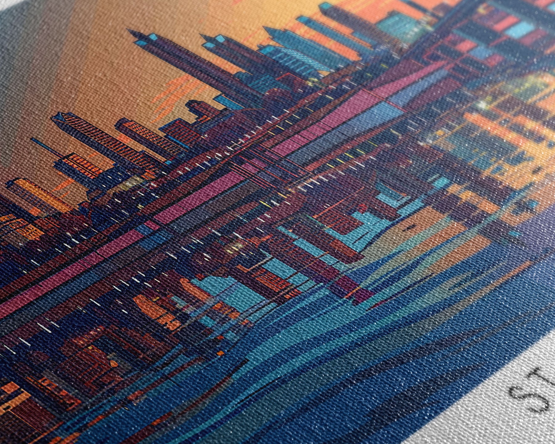 Hello and thank you for taking the time to view our modern high quality giclée artwork! We offer both posters and stretched canvas prints. Our posters are printed on Ultra Matte 60 lb / 230 GSM high quality photo paper, with a thickness of 10 mil. Our canvases are printed on museum grade 350 GSM canvas material with ECO friendly archival grade ink, then hand stretched and stapled over premium, FSC certified and shrink resistant frames. Designed and built to last a lifetime.