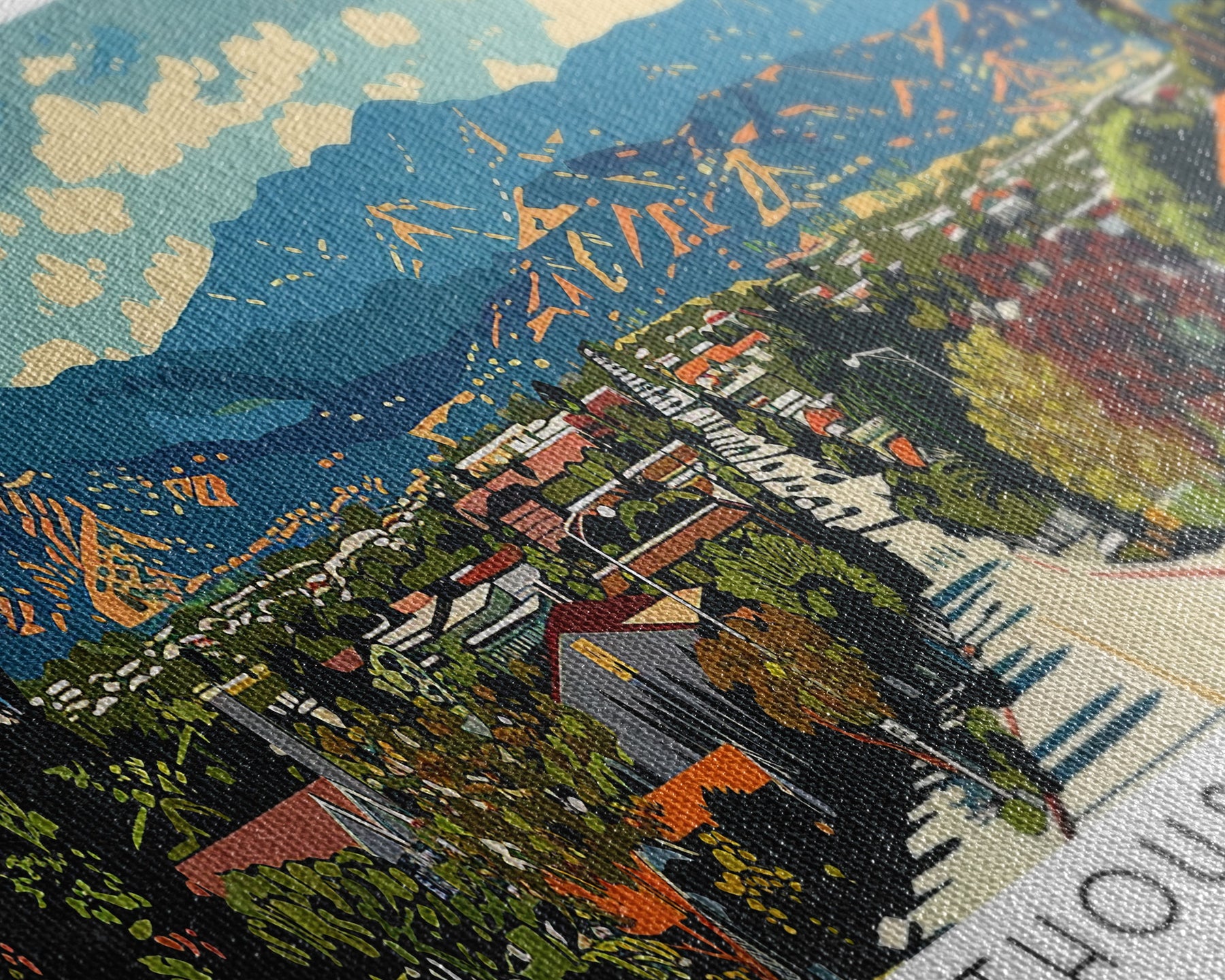Most of our canvases are made in the USA, with the exception of canvases ordered with the light oak unstained frames, and any large canvases (24x48, 30x60, 16x48 and 20x60) ordered WITH a frame. These are temporarily made in and shipped from Europe, while we try to find a more consistent supplier in the USA.