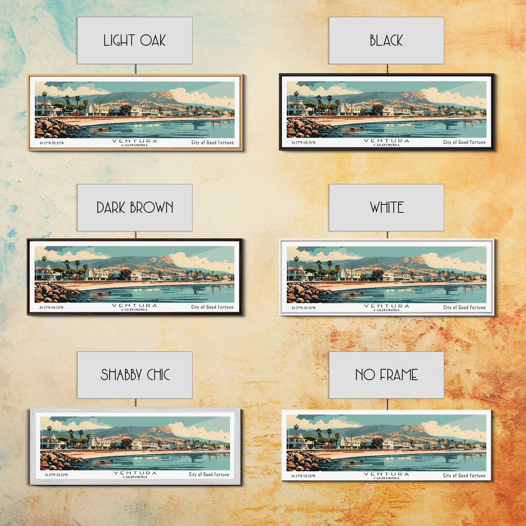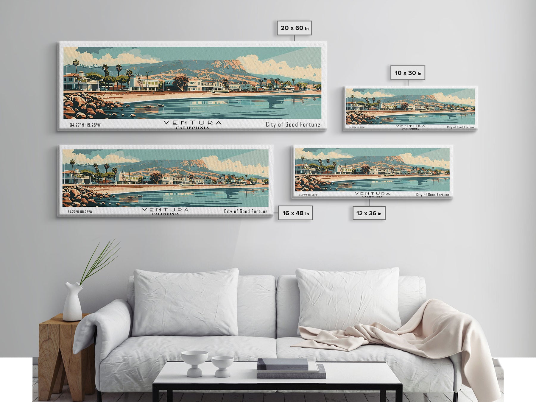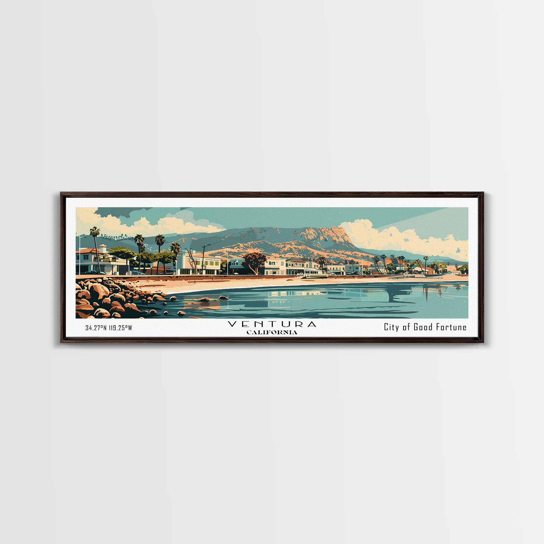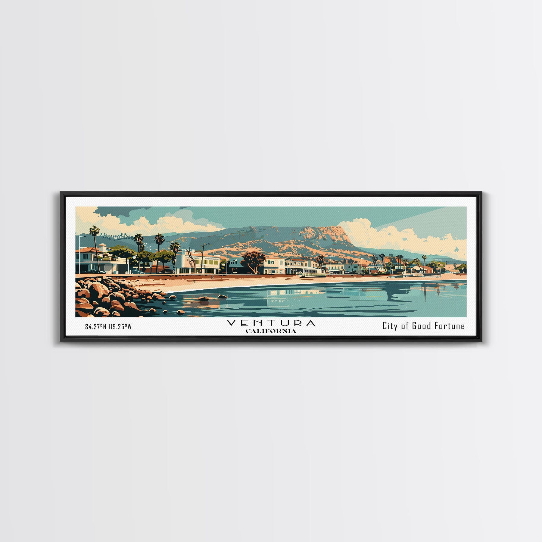 Ventura California Panoramic Wall Art, Mid Century Modern Framed Canvas Print, Retro Pop Art Travel Poster, City Art, Home Decoration