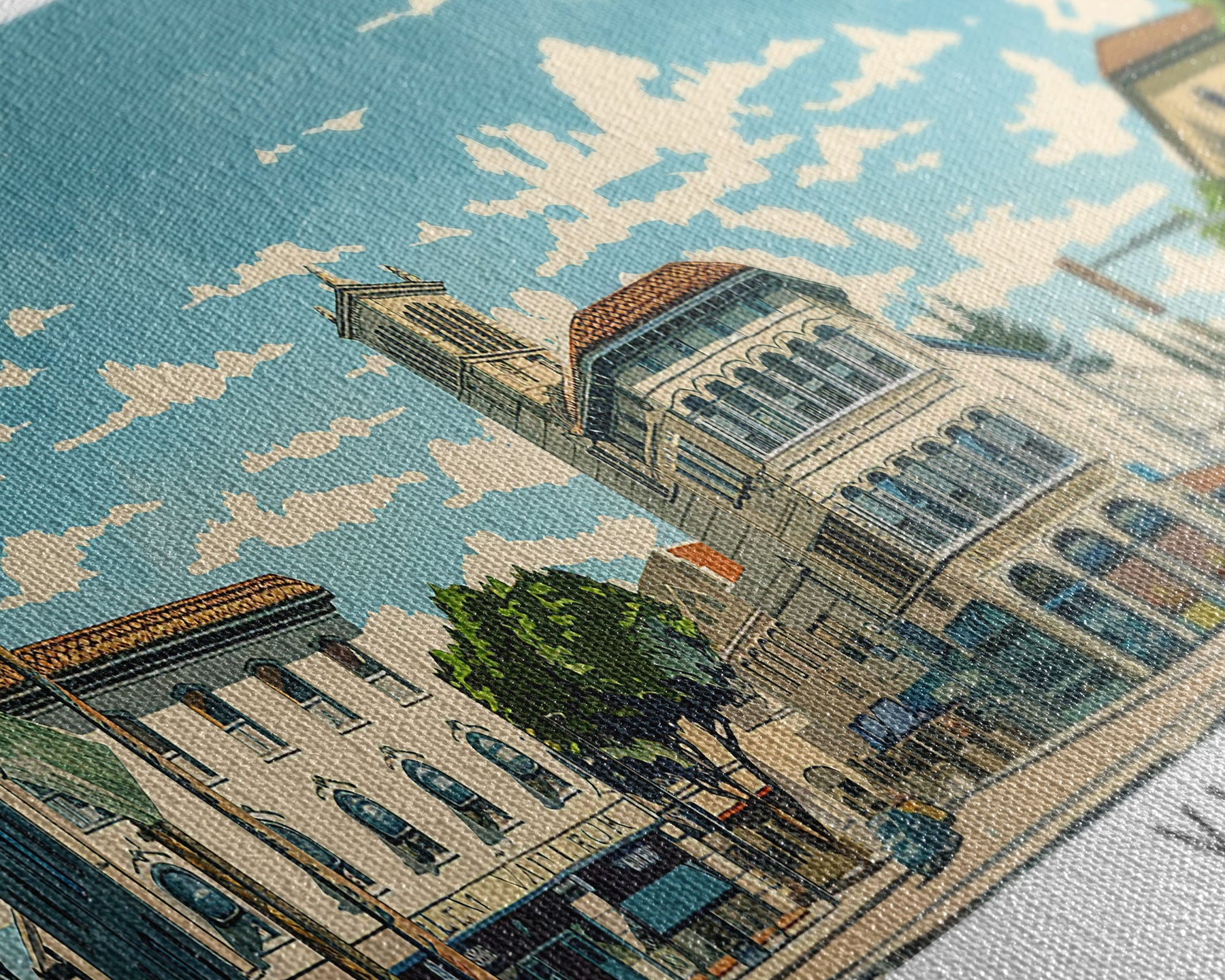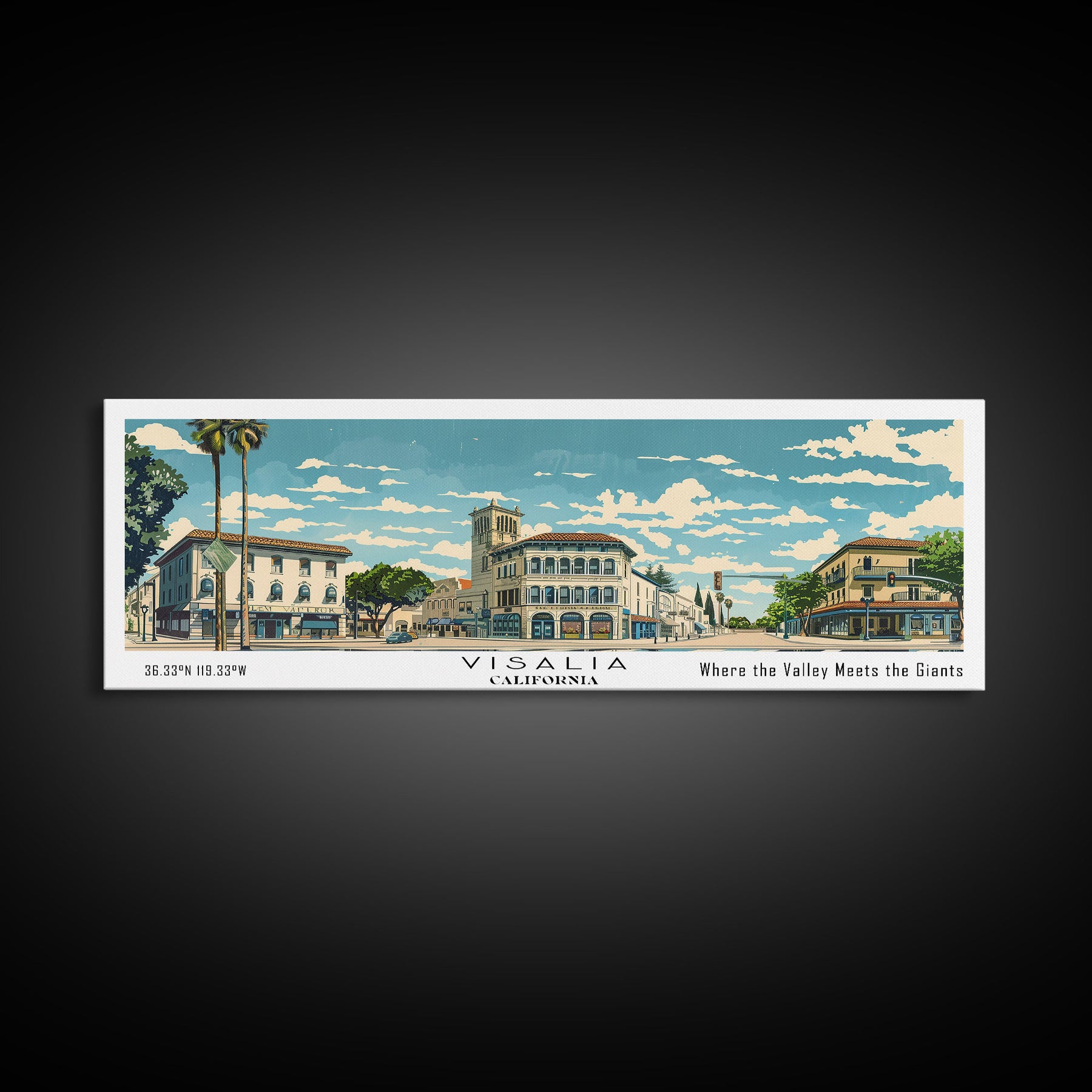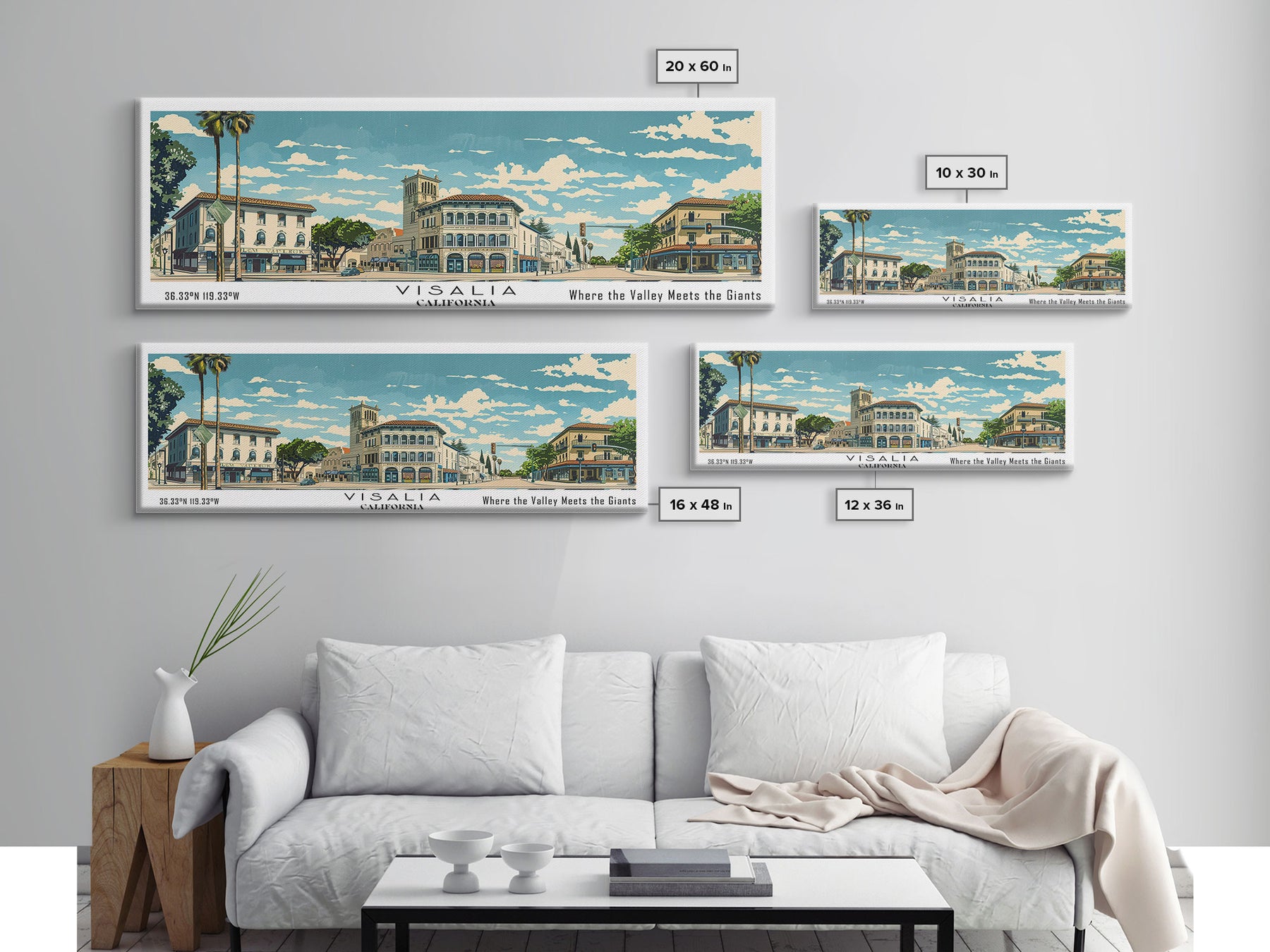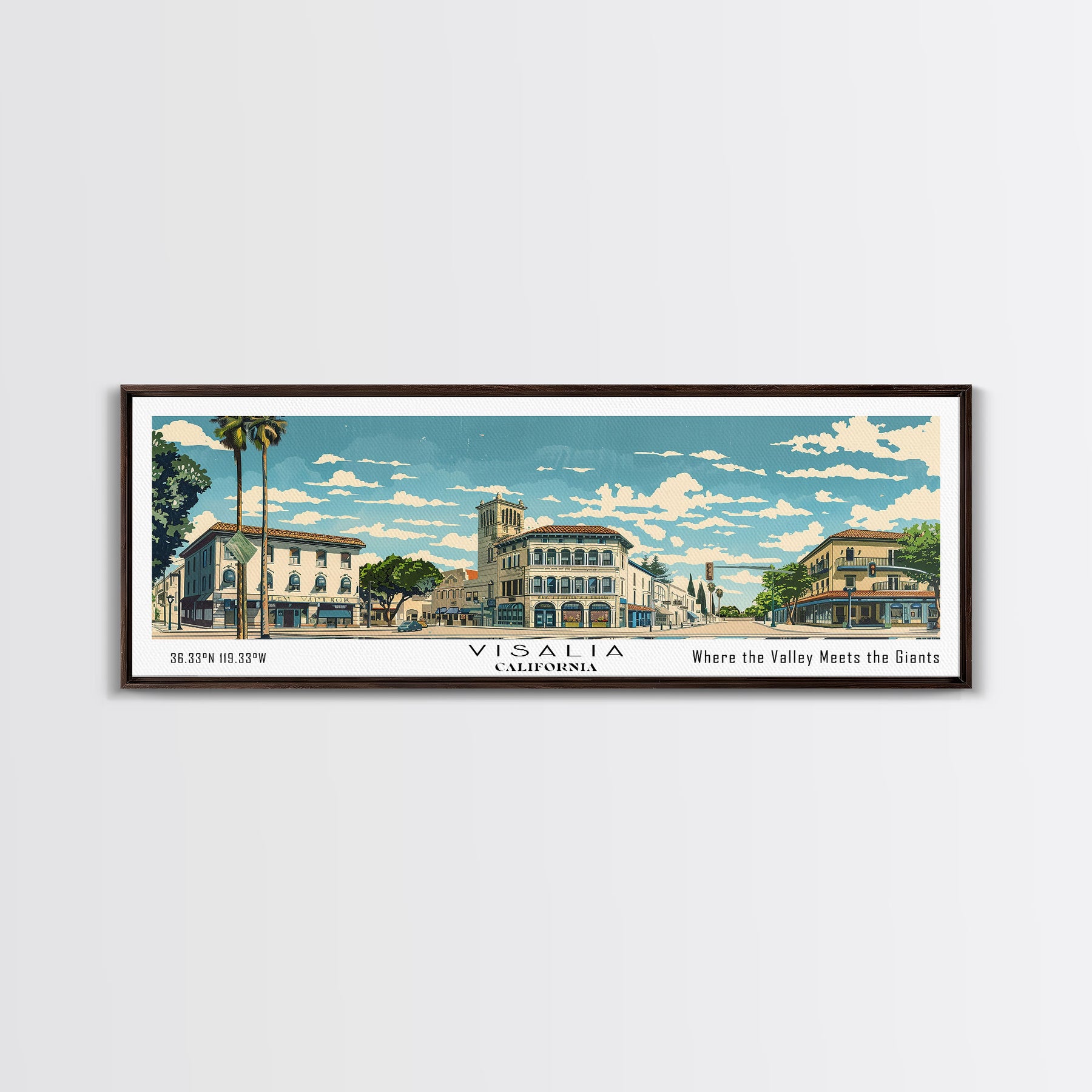 Visalia California Panoramic Art, Mid Century Modern Framed Canvas Print, Retro Pop Art Travel Poster, City Print, Living Room Wall Decor