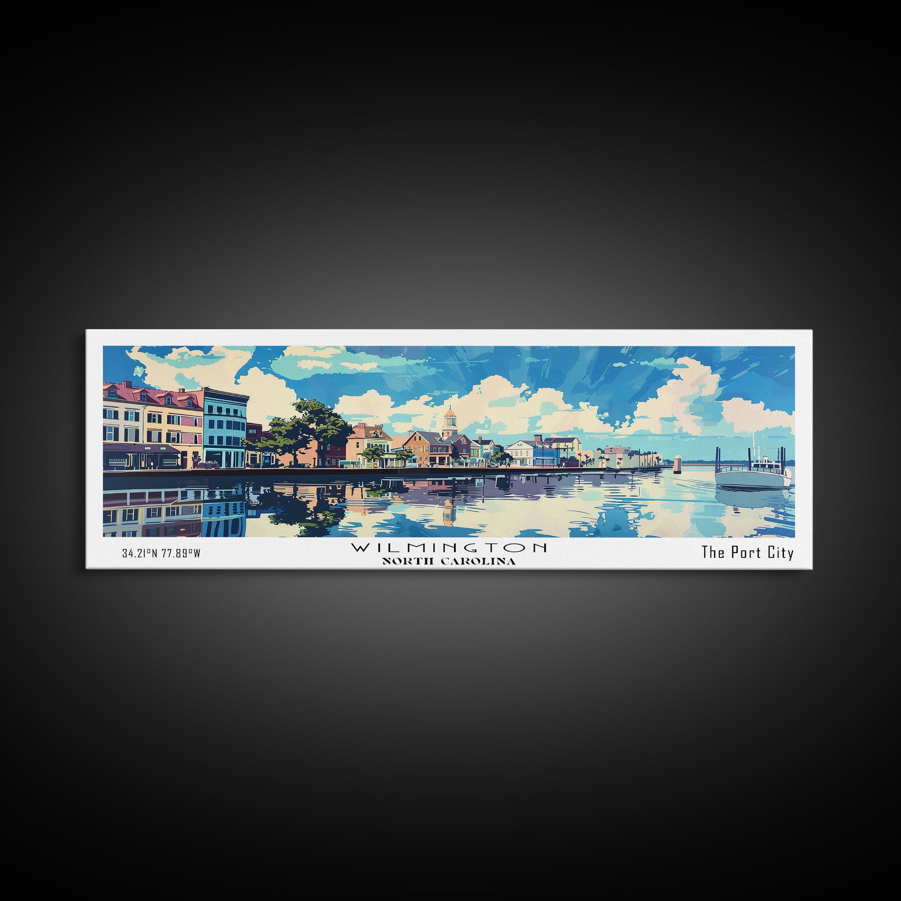Wilmington North Carolina Panoramic Wall Art, Mid Century Modern Framed Canvas Print, Retro Pop Art Travel Poster, City Art, Home Decoration
