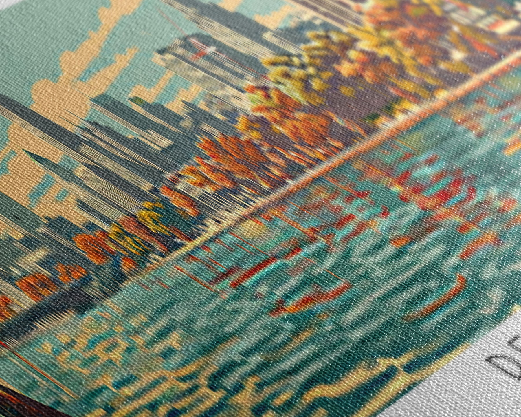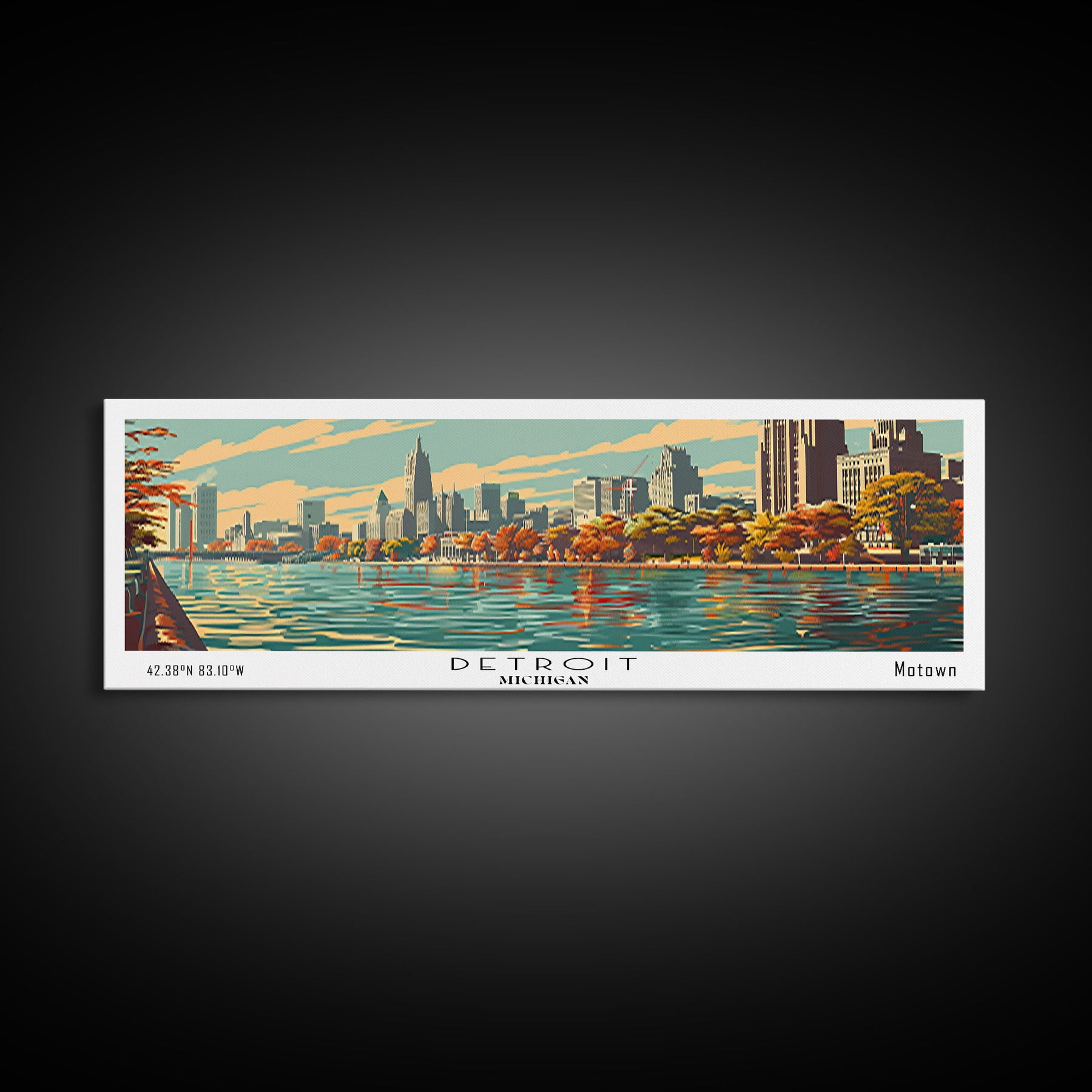 Detroit Michigan Panoramic Painting, Framed Canvas Print, Mid Century Modern Wall Art, Retro Pop Art Travel Poster, Office Decor, City Art