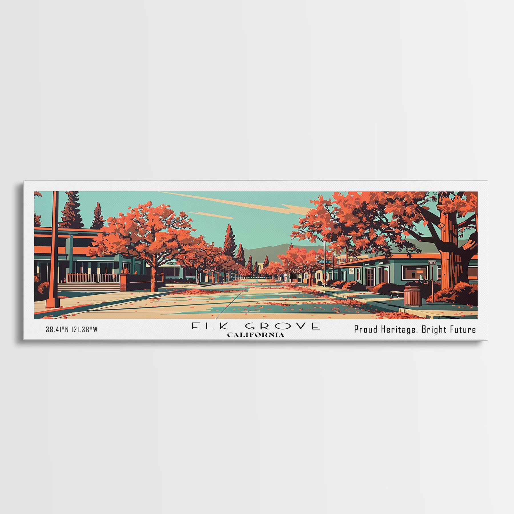 Elk Grove California Panoramic Painting, Framed Canvas Print, Mid Century Modern Wall Art, Retro Pop Art Travel Poster, Office Decor, City Art