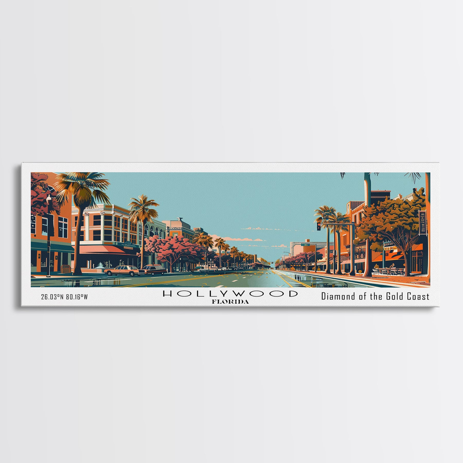 Hollywood Florida Panoramic Painting, Framed Canvas Print, Mid Century Modern Wall Art, Retro Pop Art Travel Poster, Office Decor, Cityscape Art, Living Room Decor