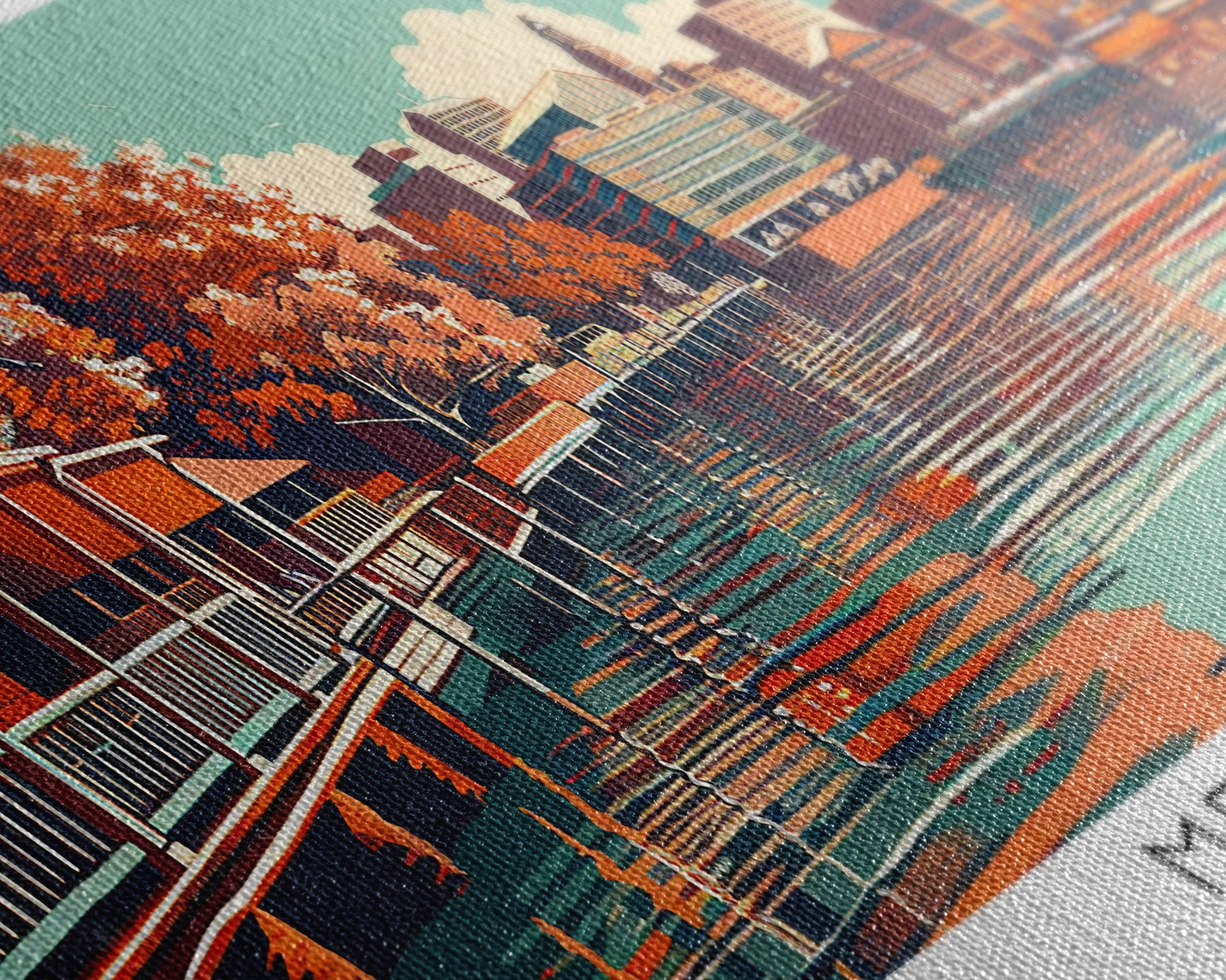 Memphis Tennessee Panoramic Wall Art, Mid Century Modern Framed Canvas Print, Retro Pop Art Travel Poster, Office Decor, Cityscape Art
