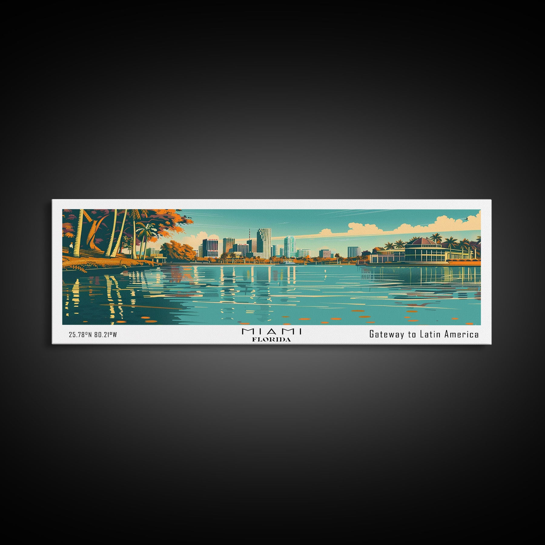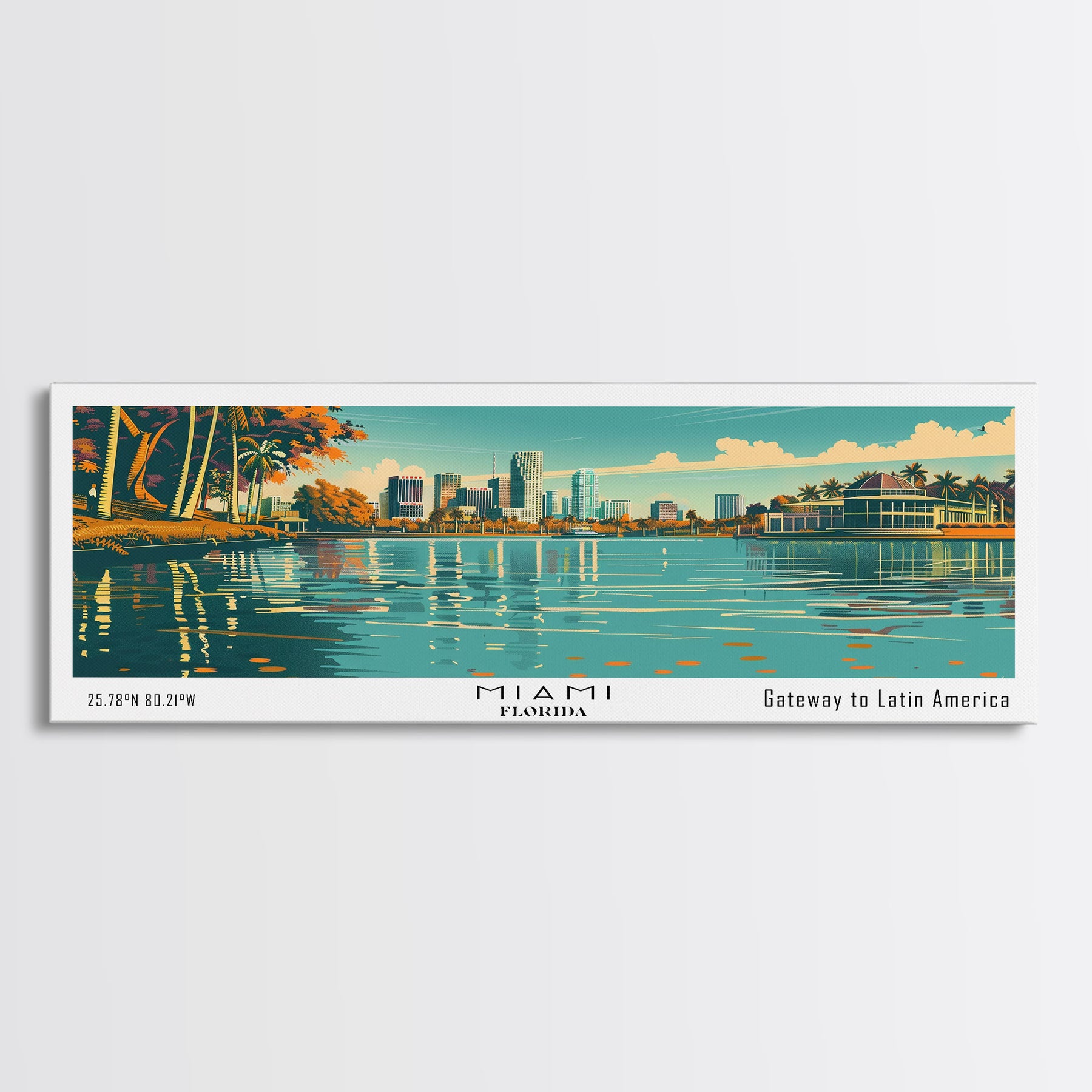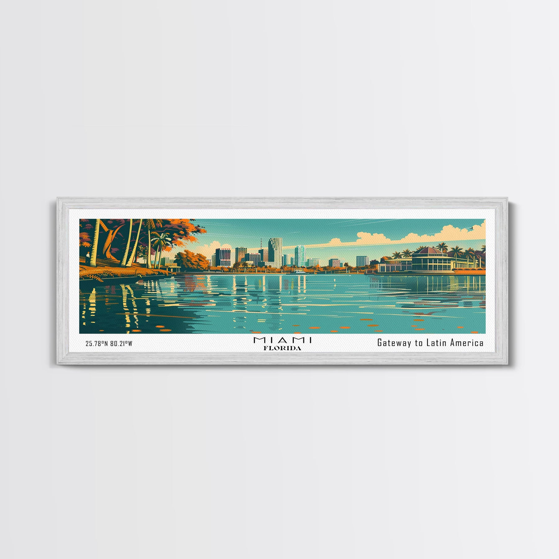 Miami Florida Panoramic View, Mid Century Modern Framed Canvas Print, Retro Pop Art Travel Poster, Home Decor, City Art