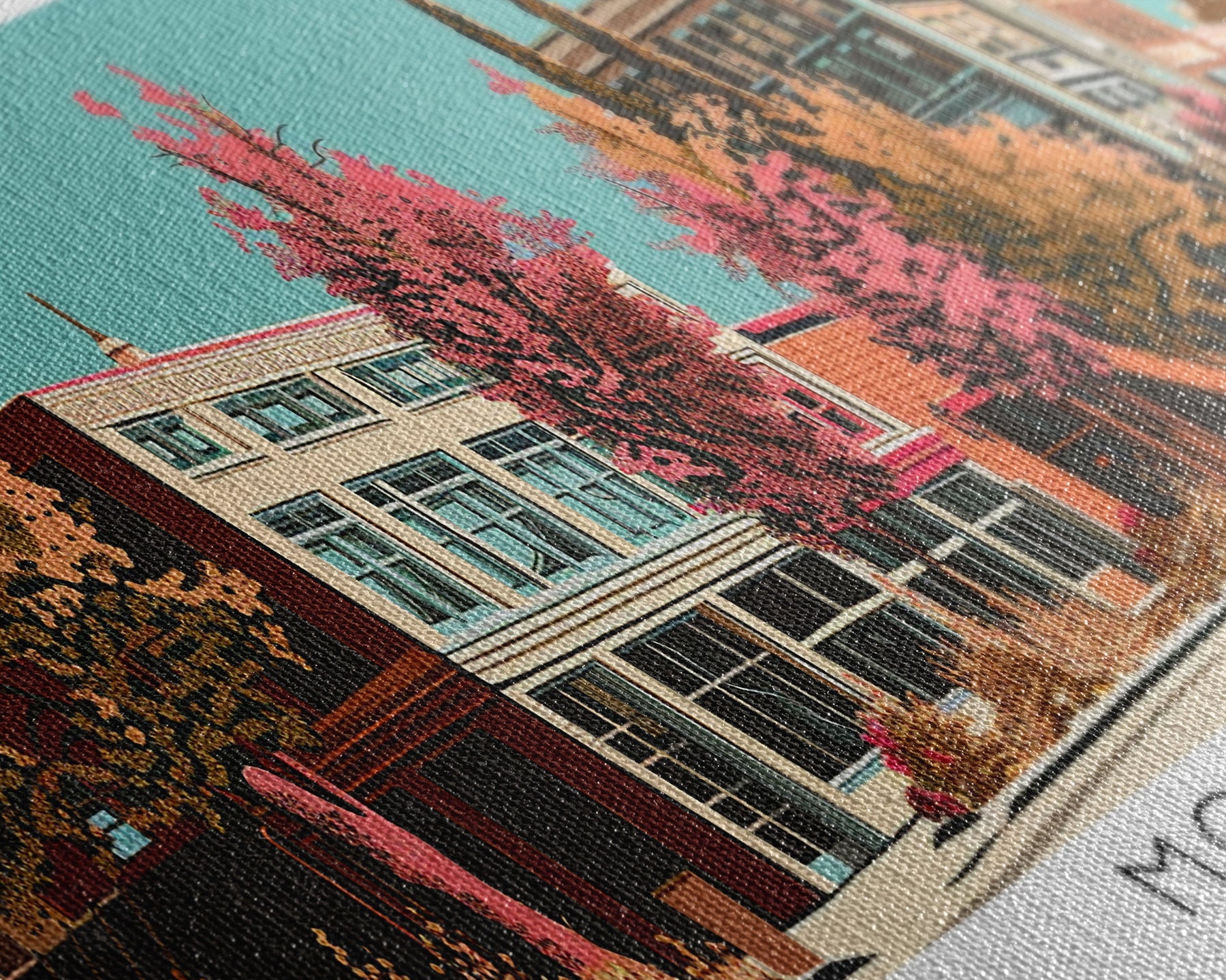 Modesto California Panoramic Wall Art, Mid Century Modern Framed Canvas Print, Retro Pop Art Travel Poster, Office Decor, Living Room Art