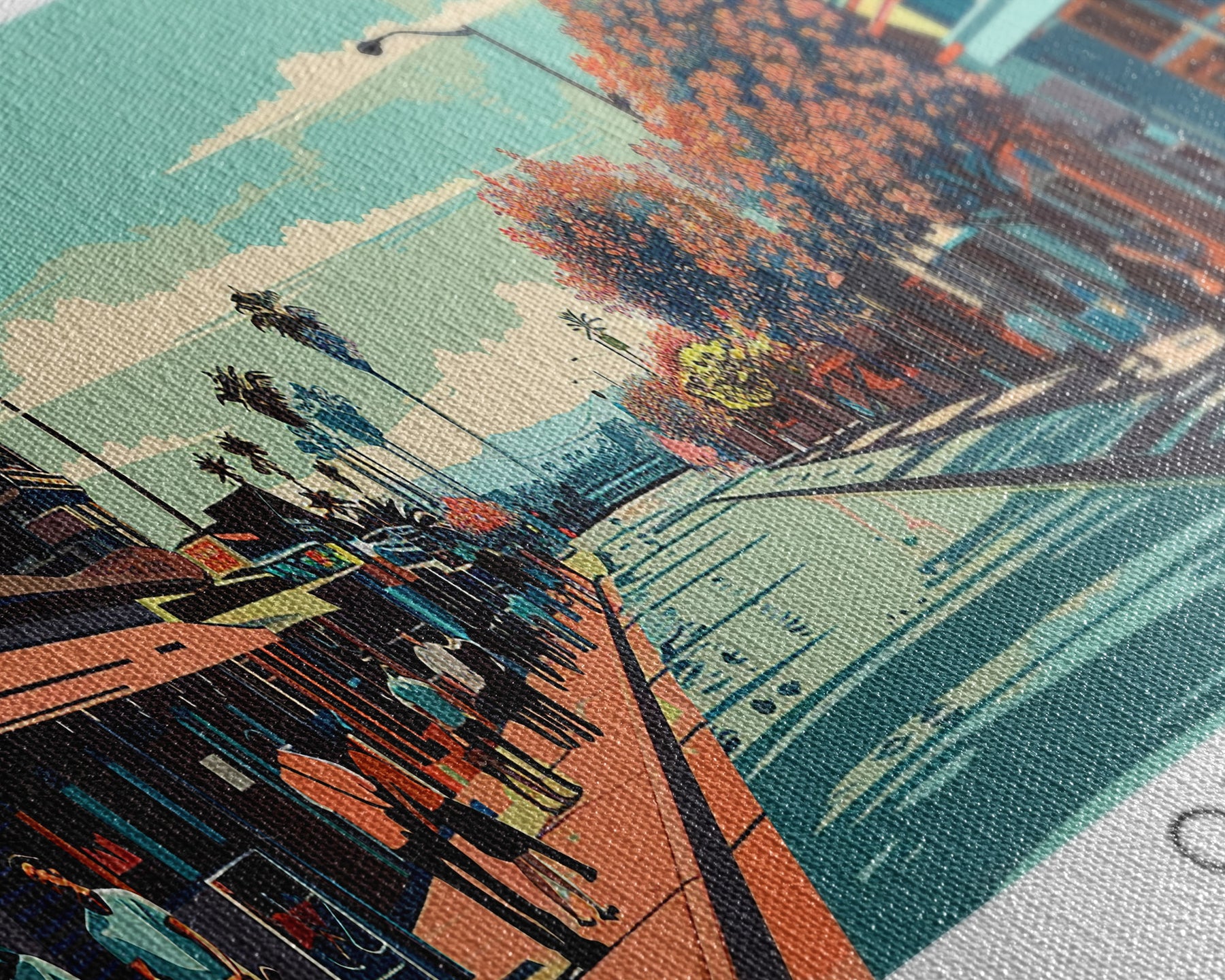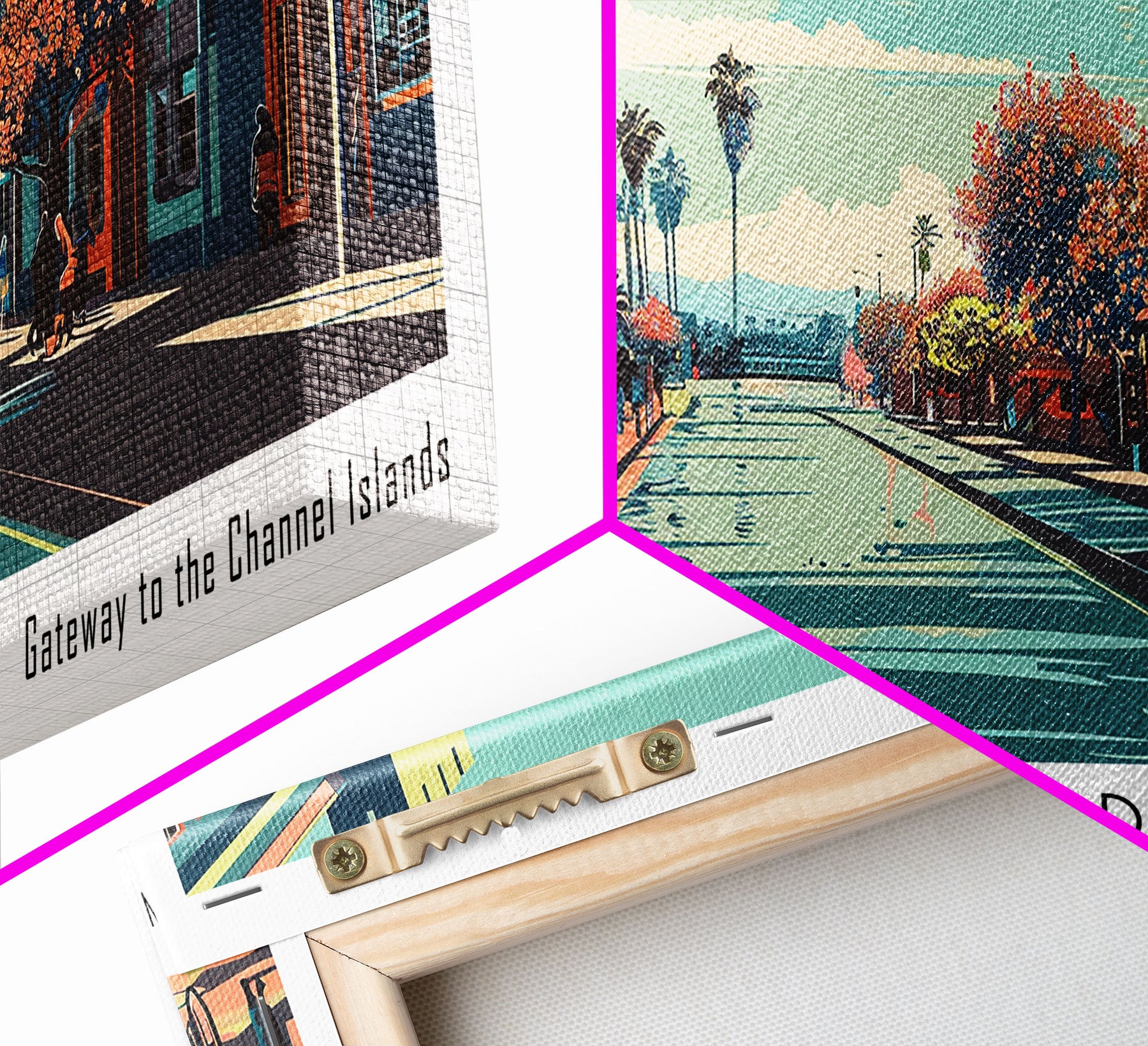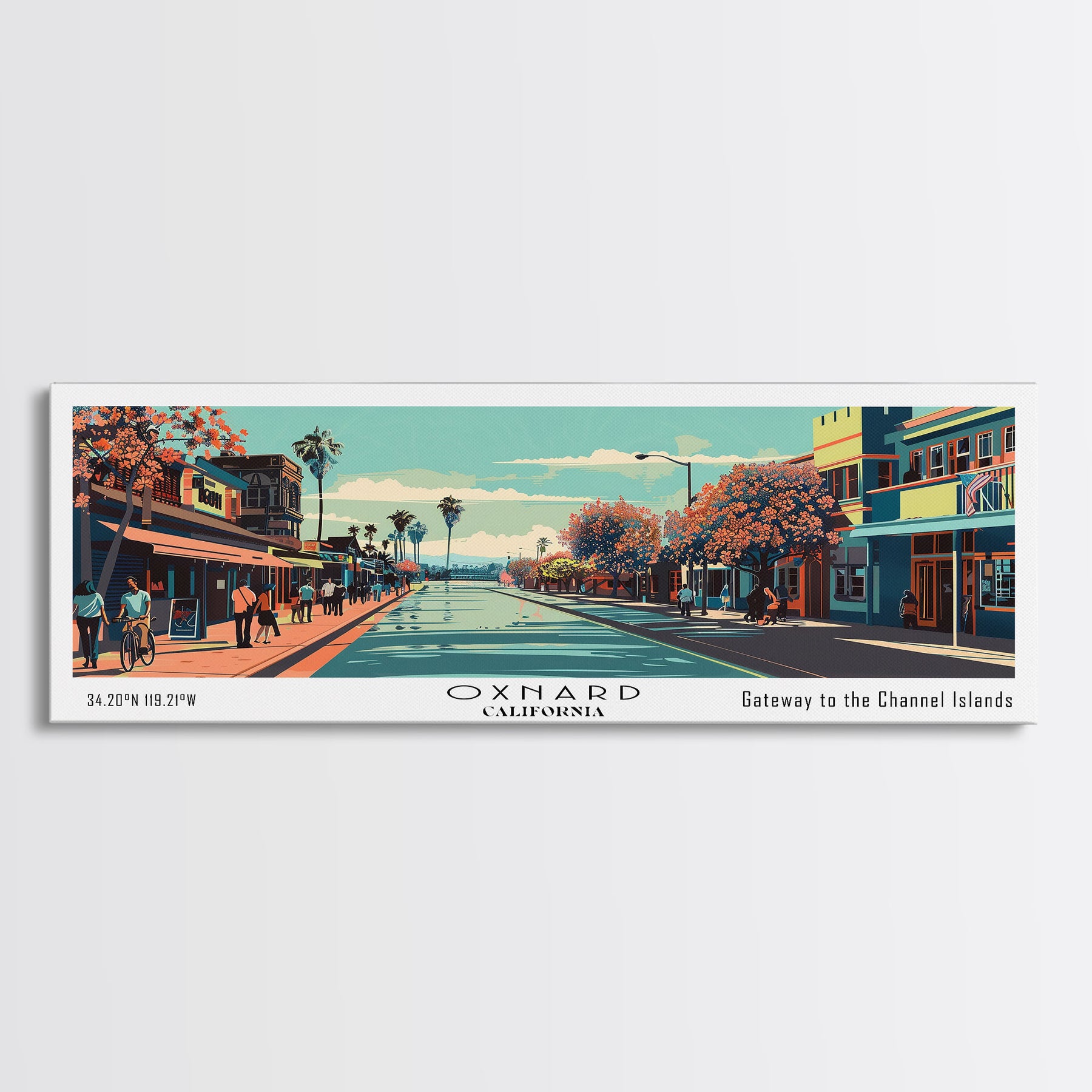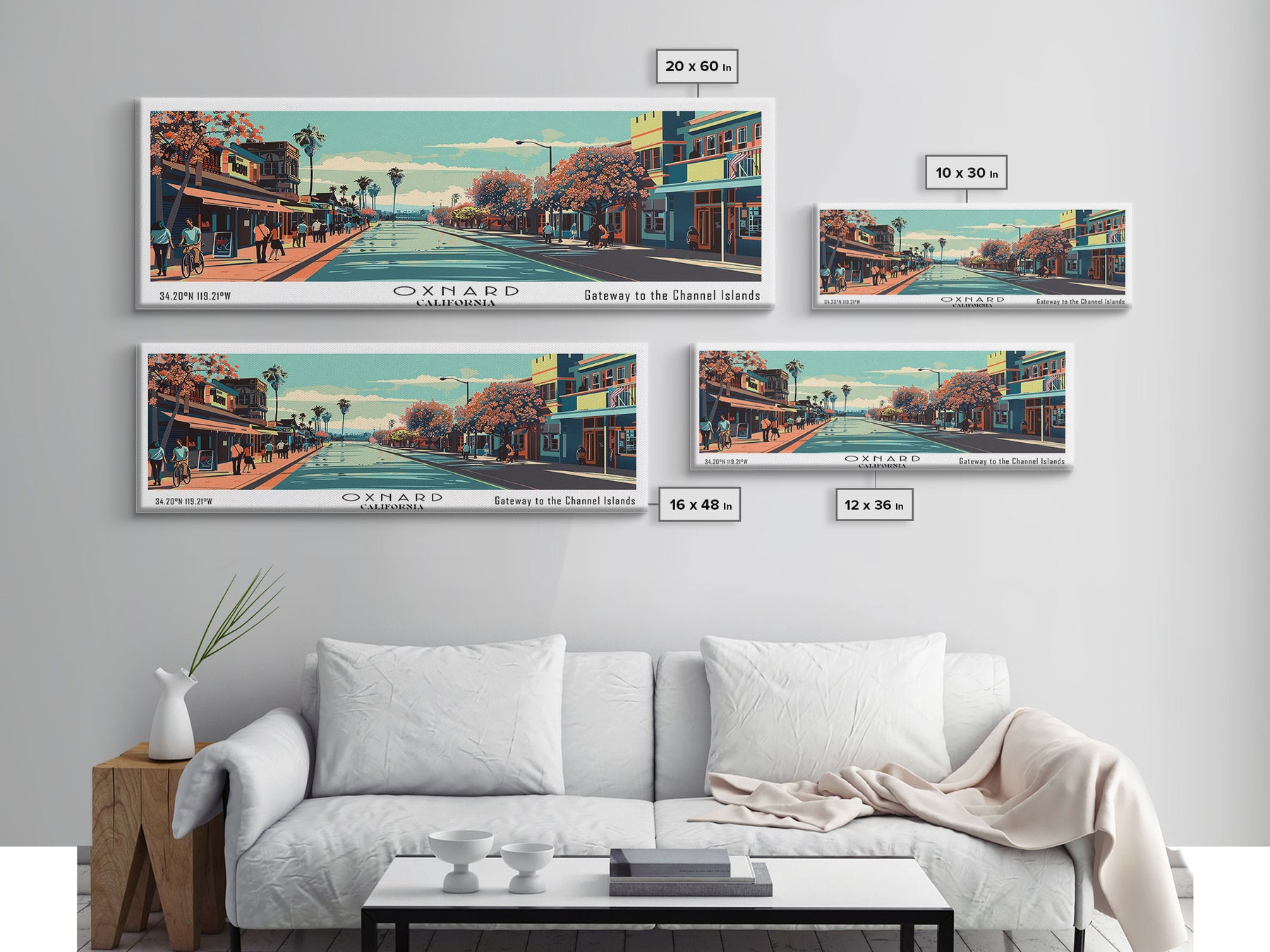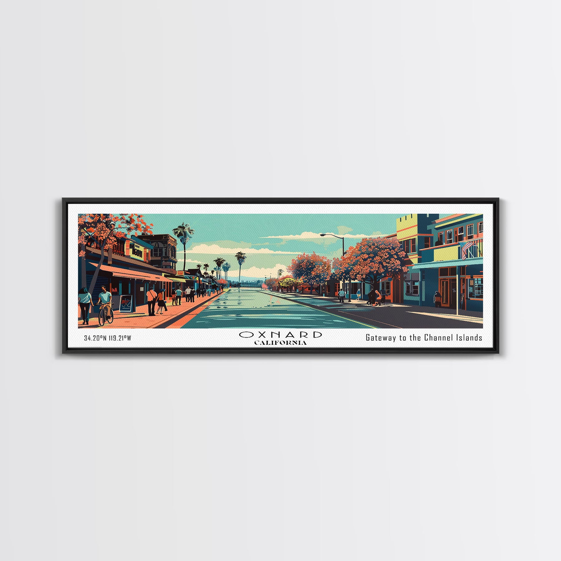 Oxnard California Panoramic Painting, Mid Century Modern Framed Canvas Print, Retro Pop Art Travel Poster, Living Room Decor, City Art