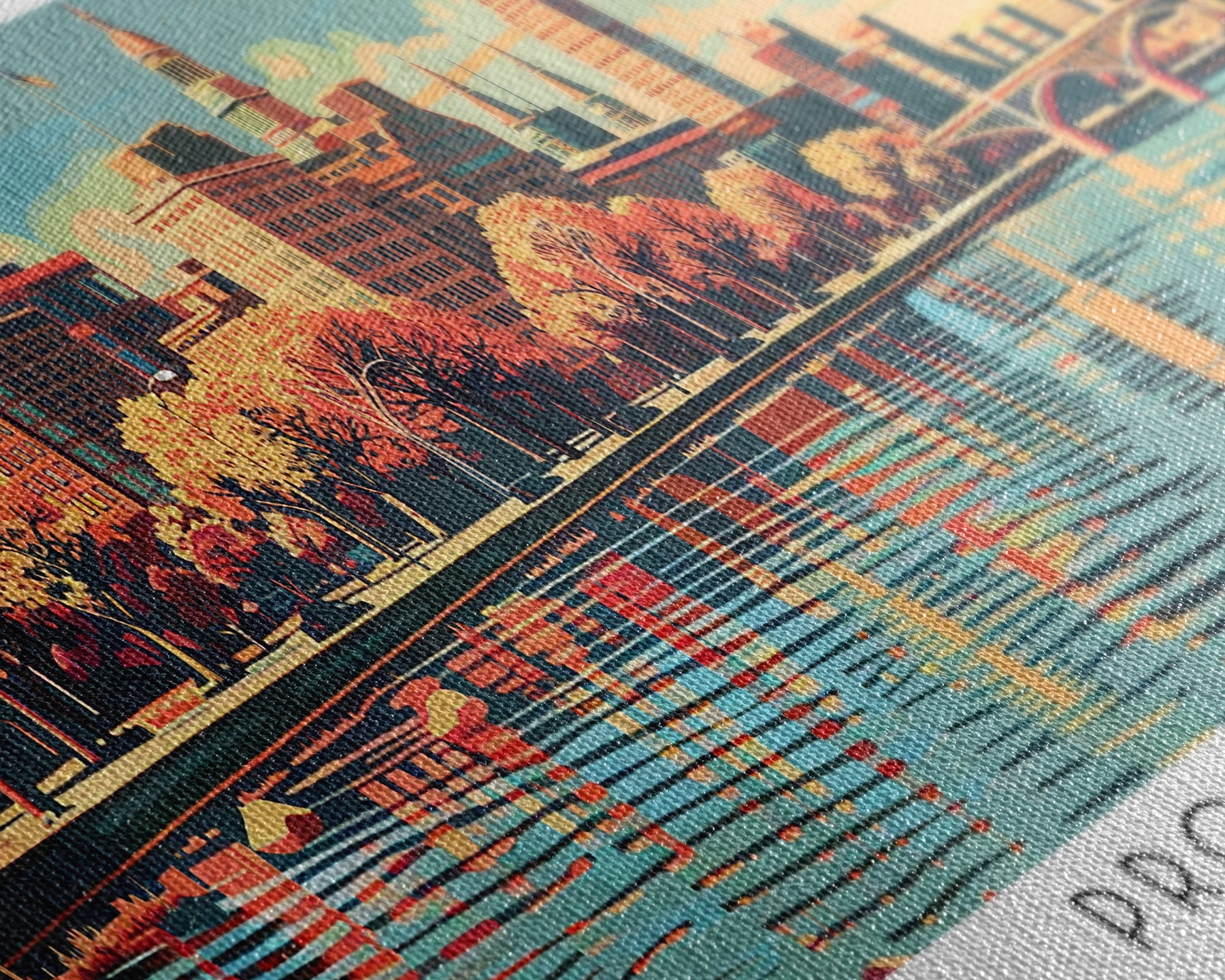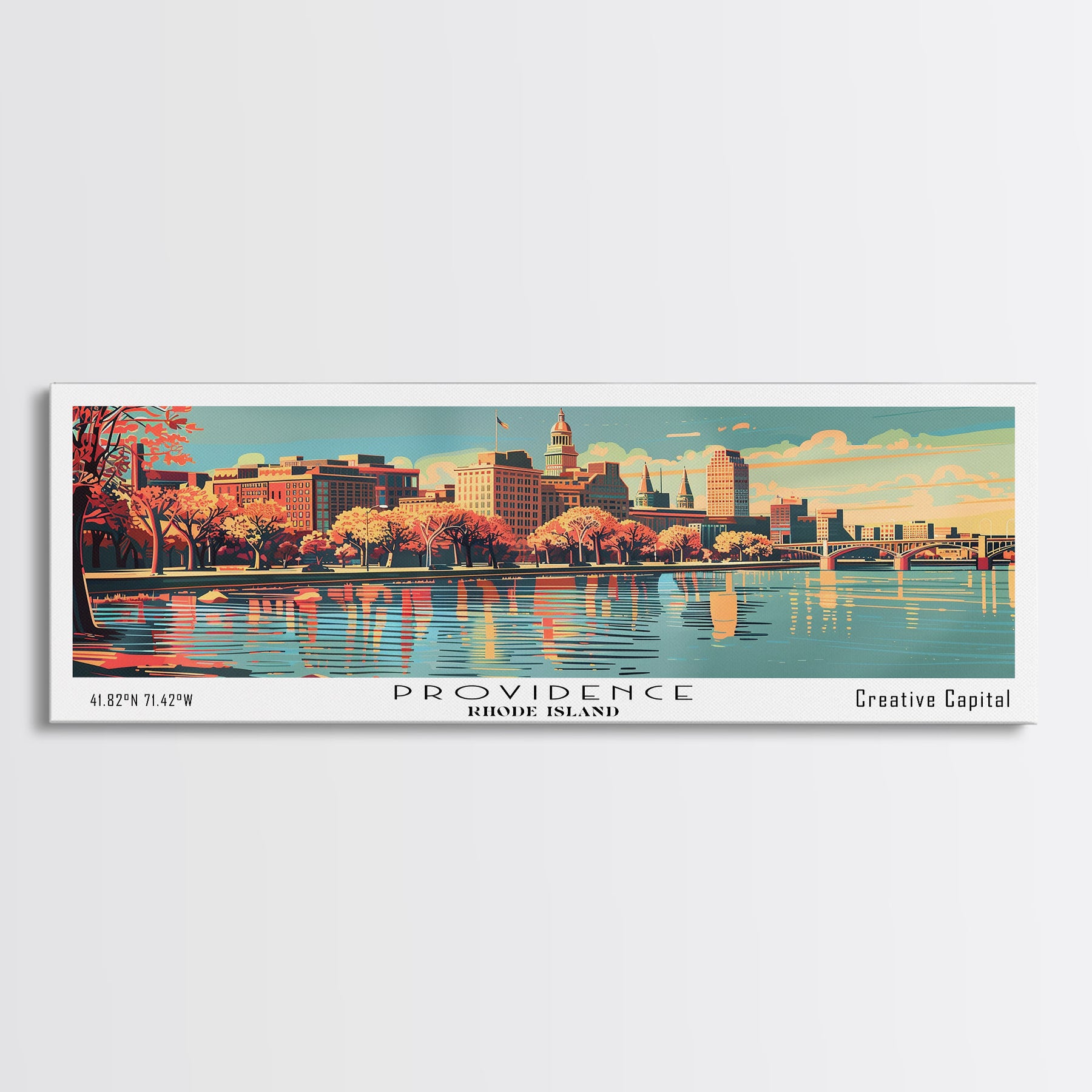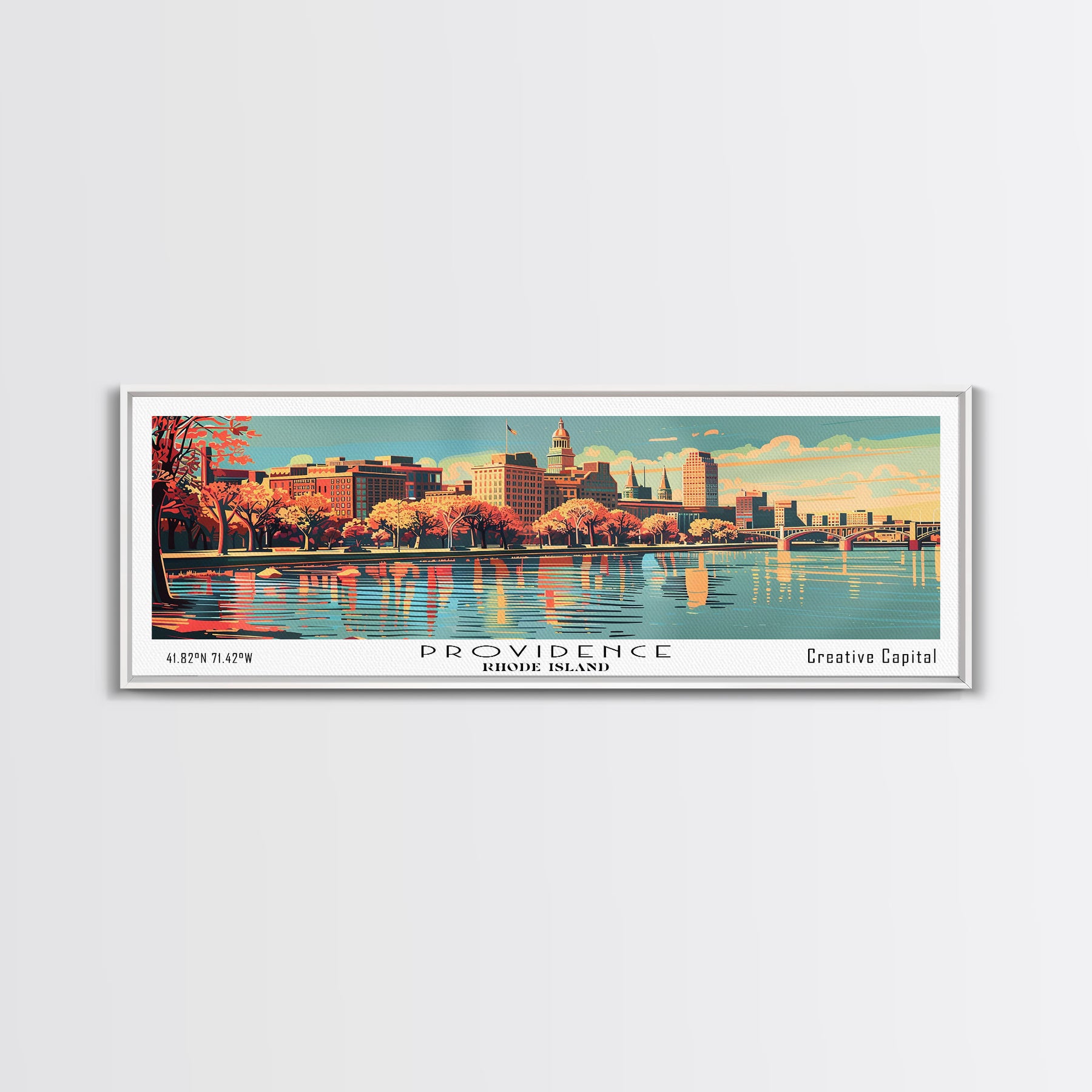 Providence Rhode Island Panoramic View, Mid Century Modern Framed Canvas Print, Retro Pop Art Travel Poster, Living Room Wall Decor